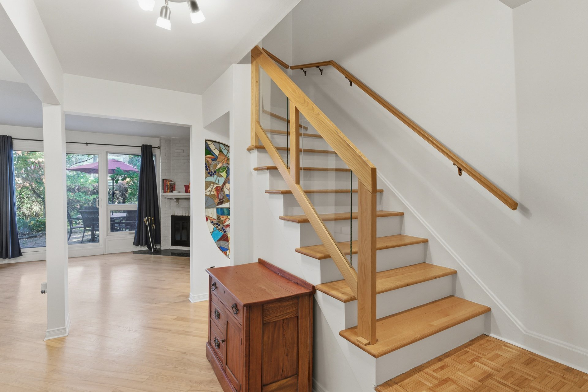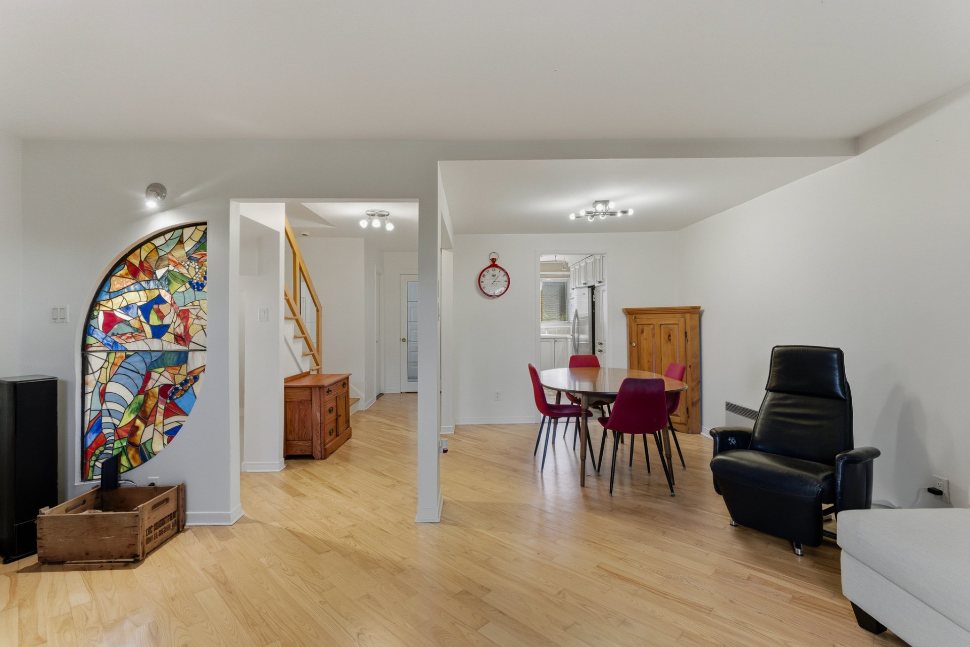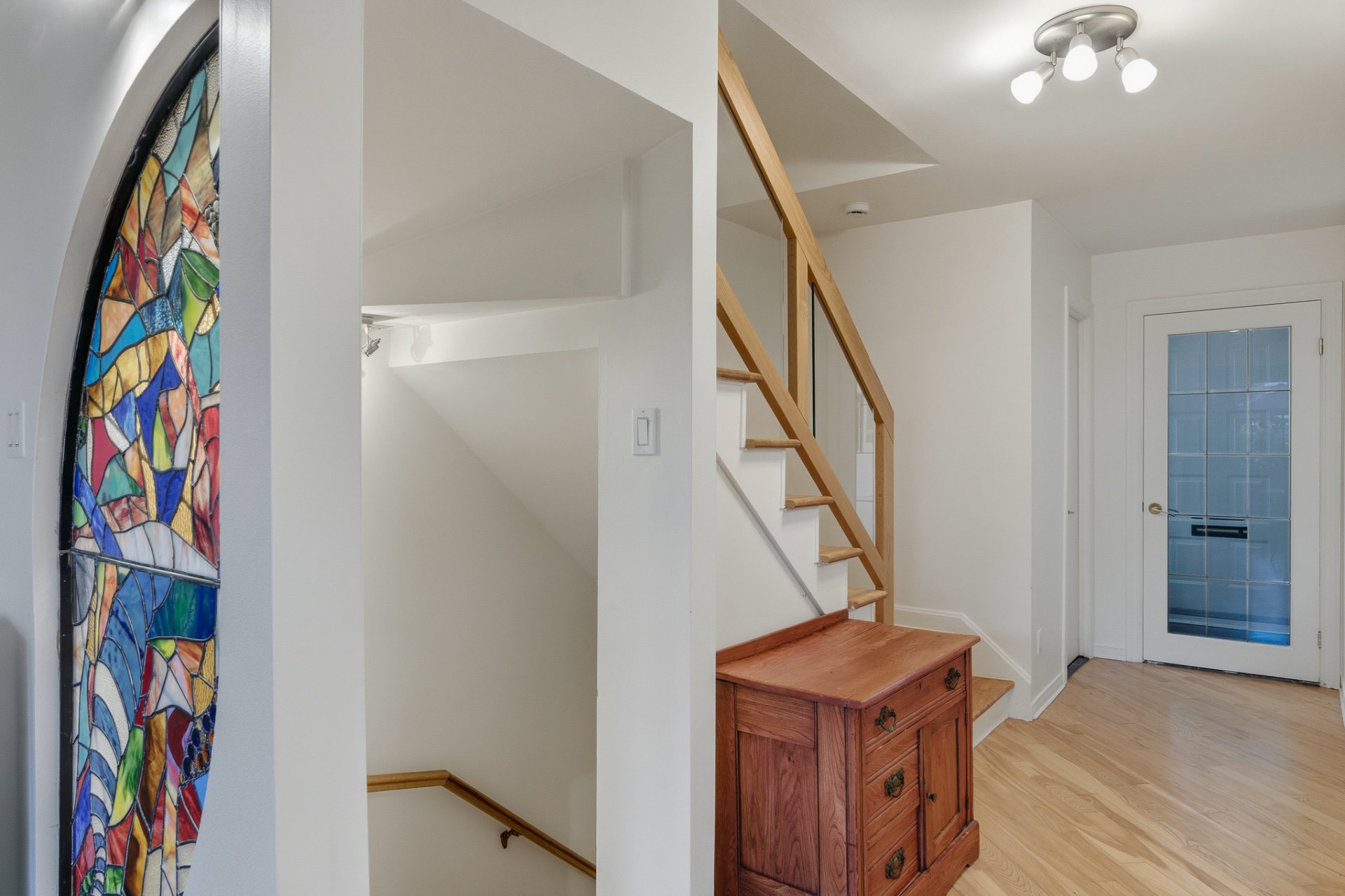 * Un magnifique vitrail illumine la pièce en déployant ses couleurs à travers l'espace