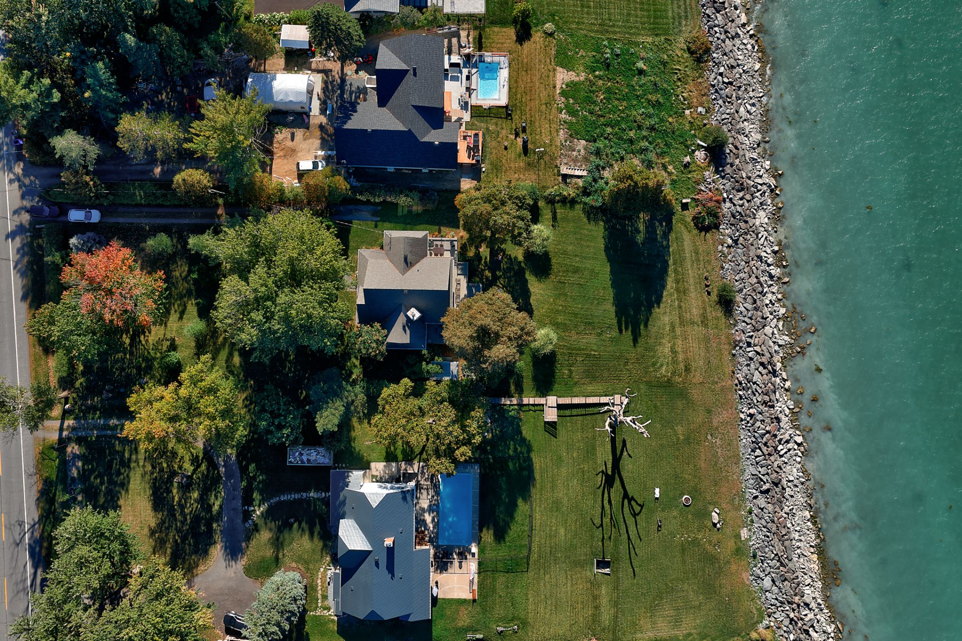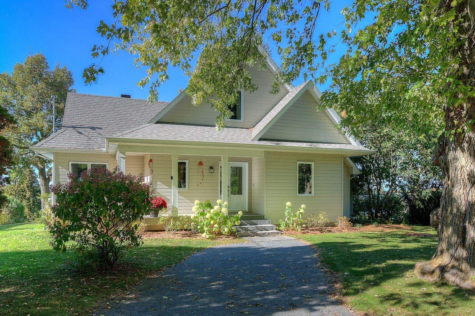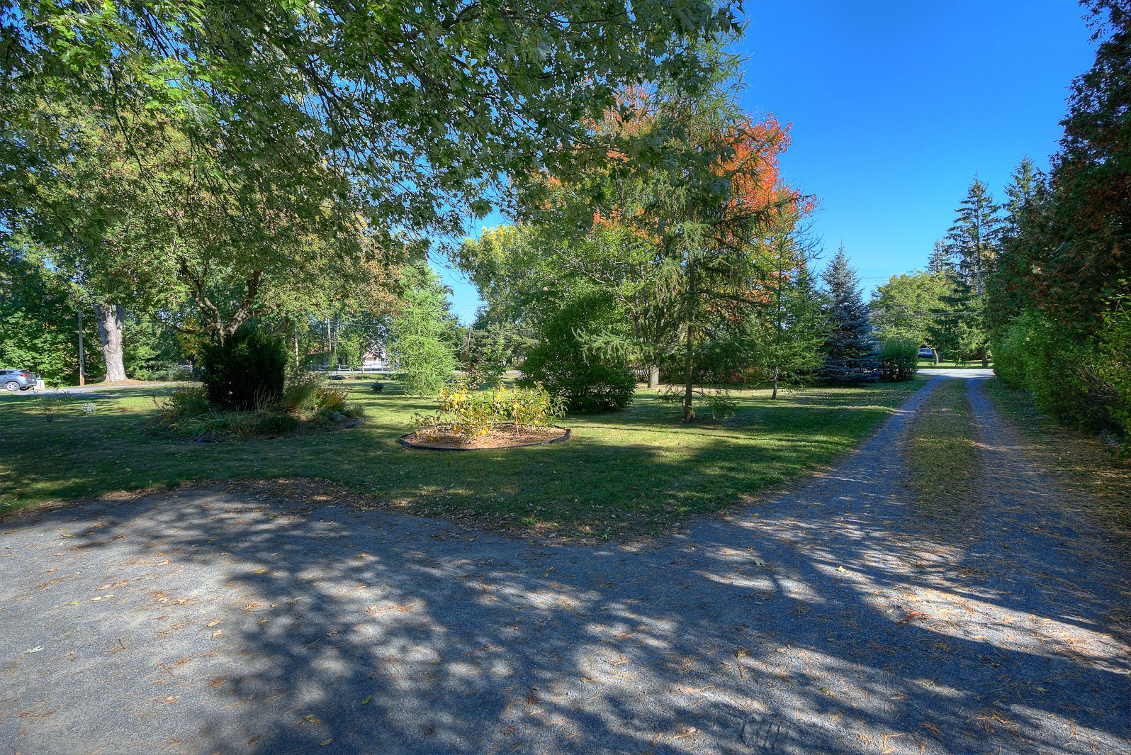 - Arbres matures et vivaces, le terrain avant permet de créer de l'intimité et d'atténuer le bruit de la route