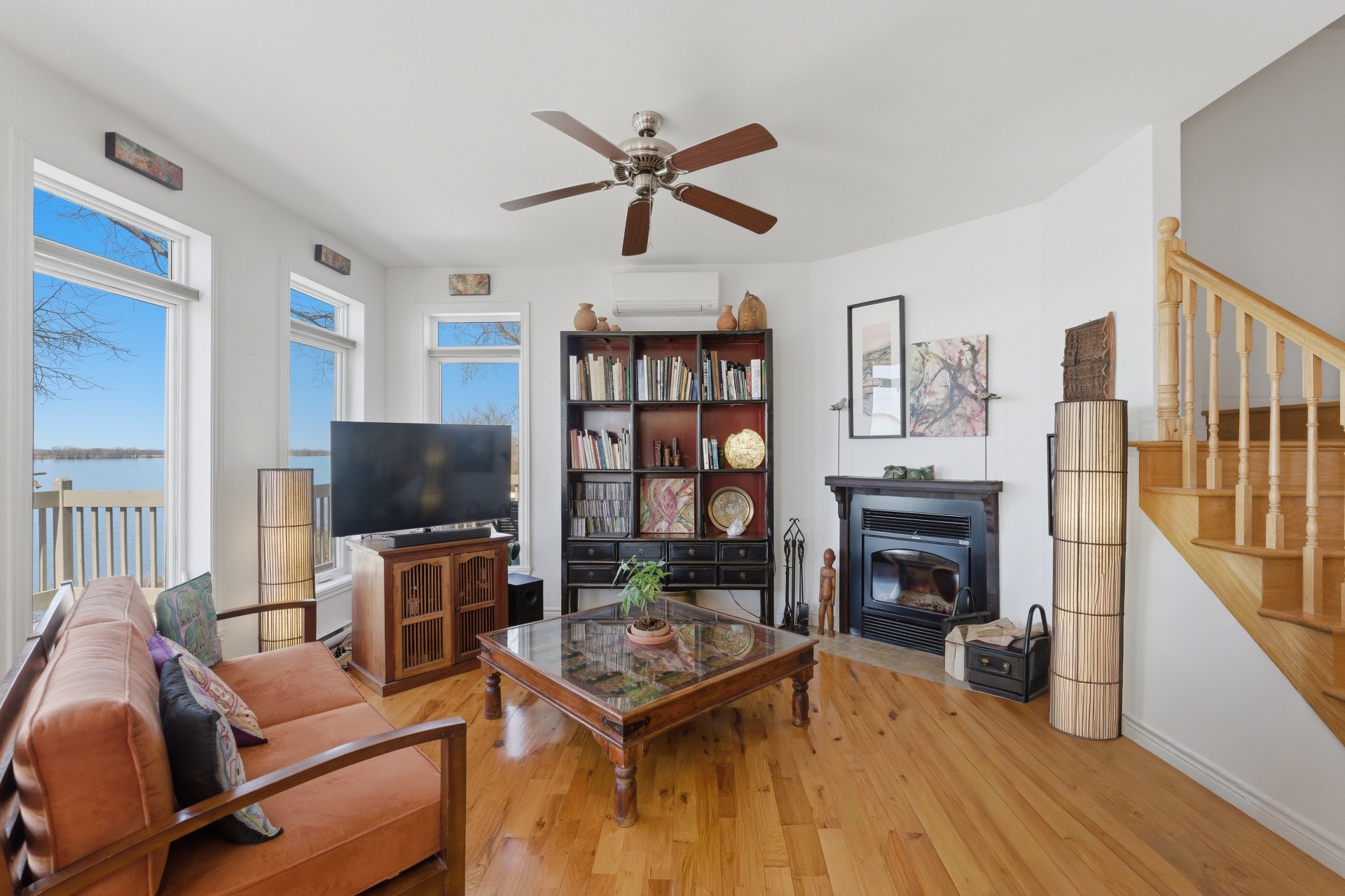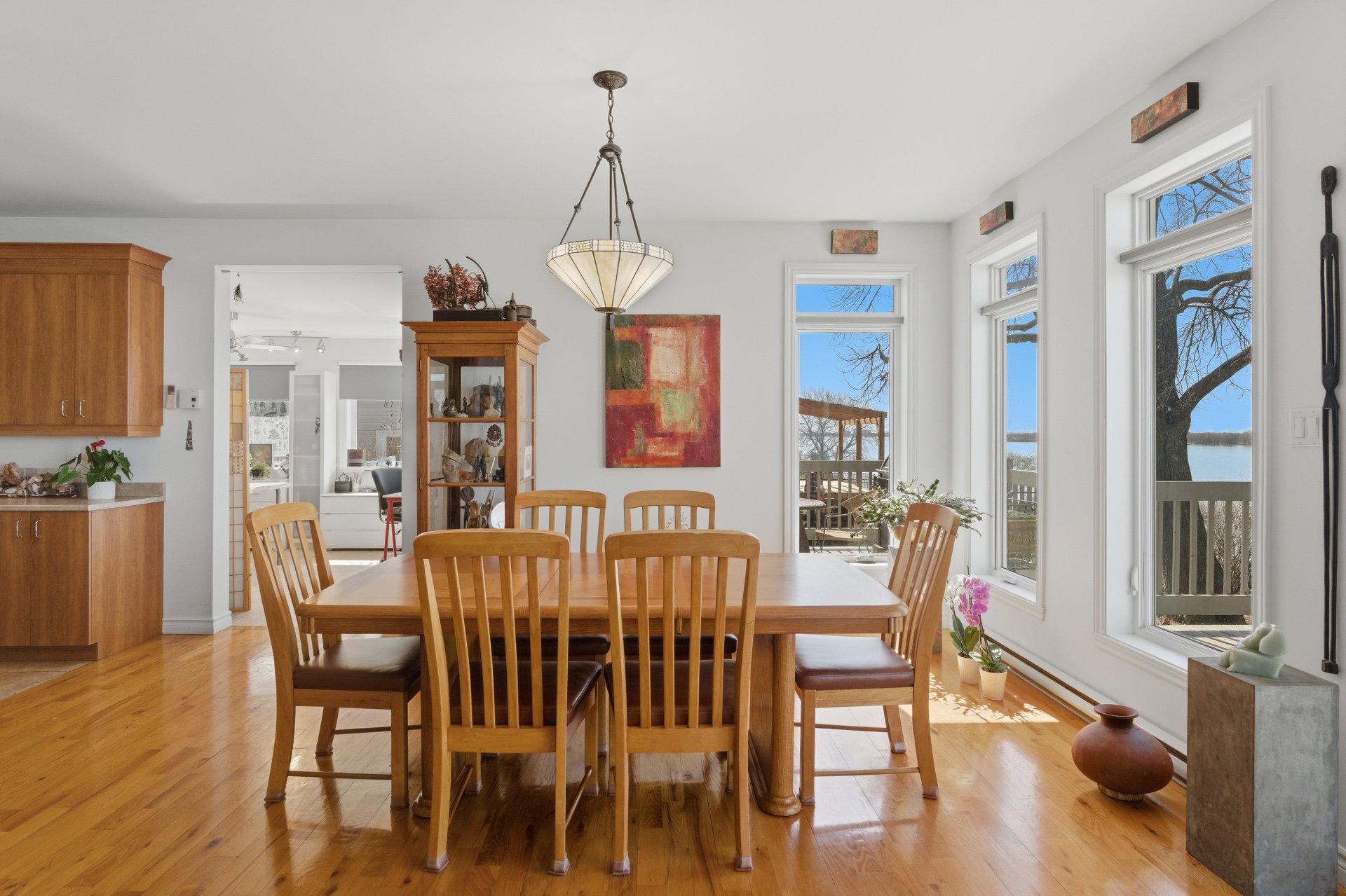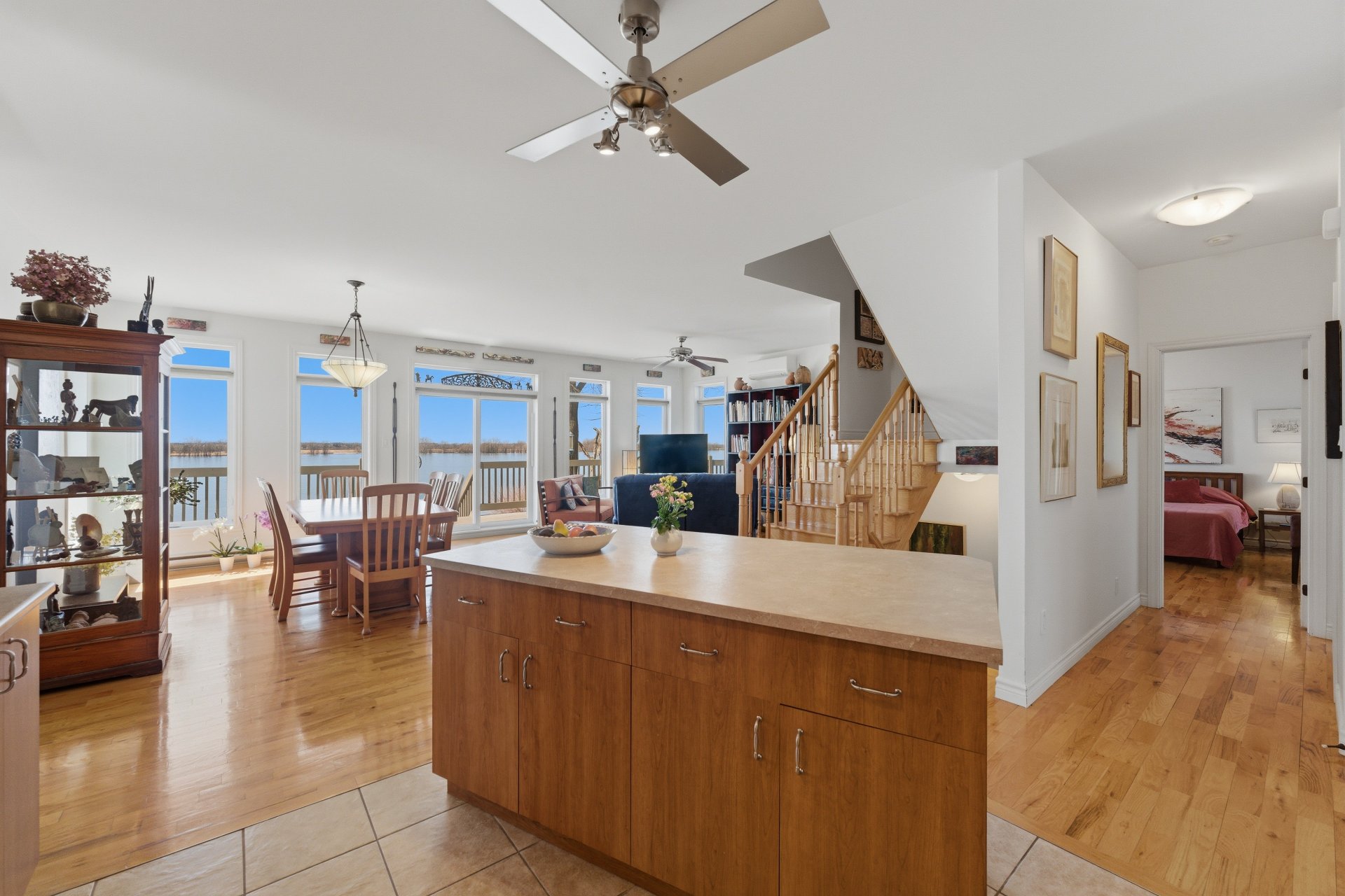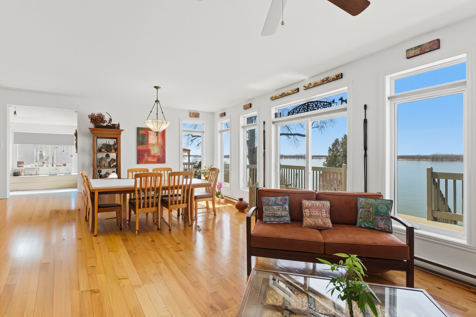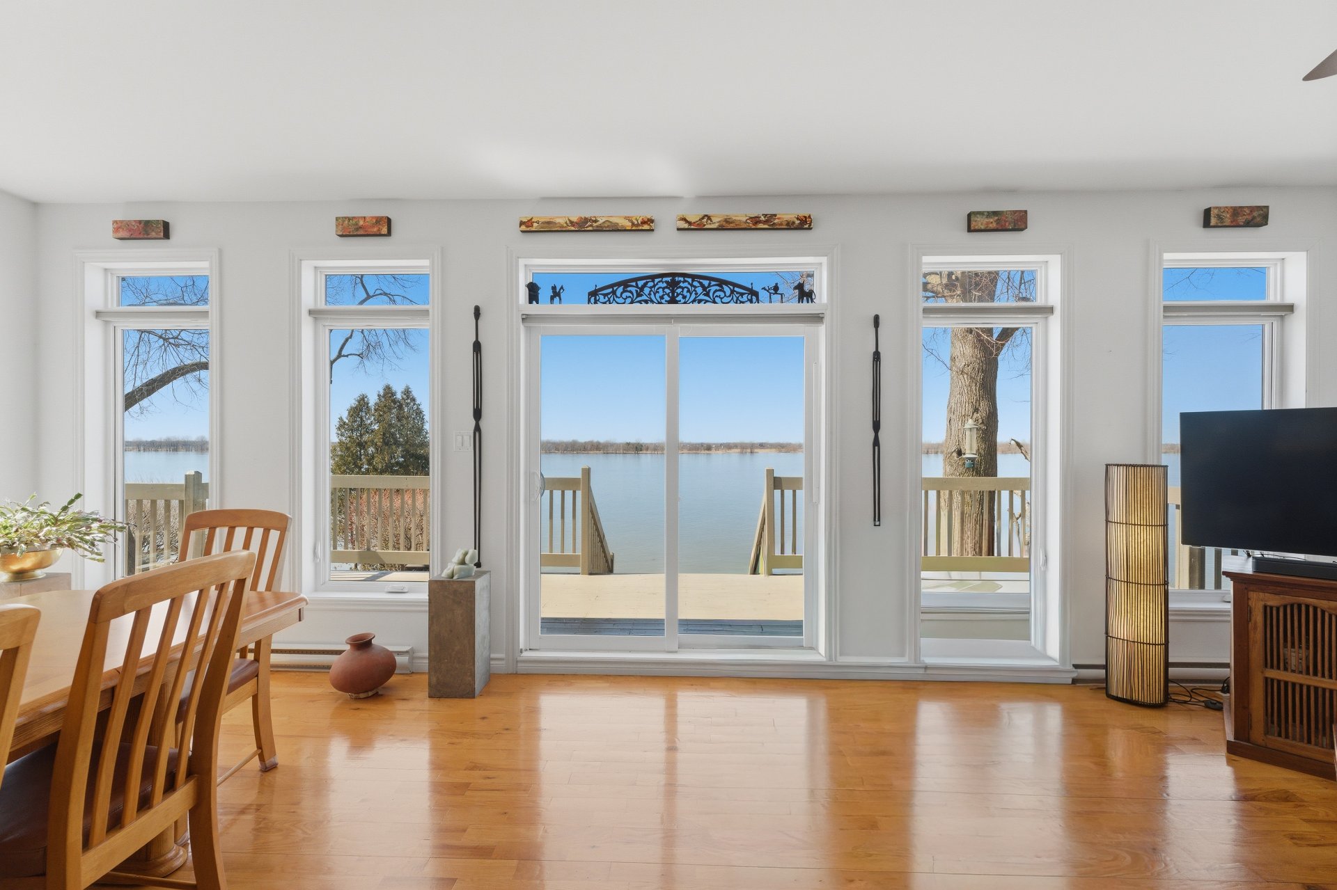 - Salle à manger et salon à aire ouverte, avec fenêtres sur 3 côtés, offrant un maximum de lumière naturelle ainsi qu'une vue panoramique sur le fleuve