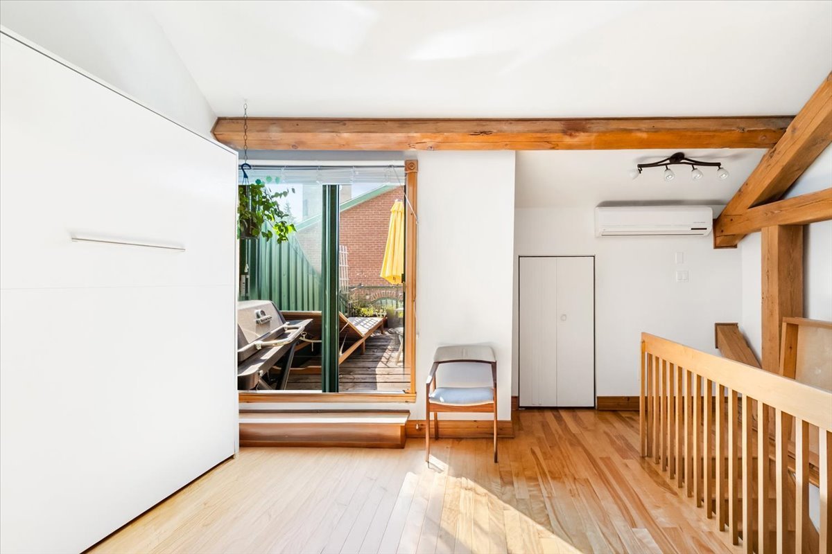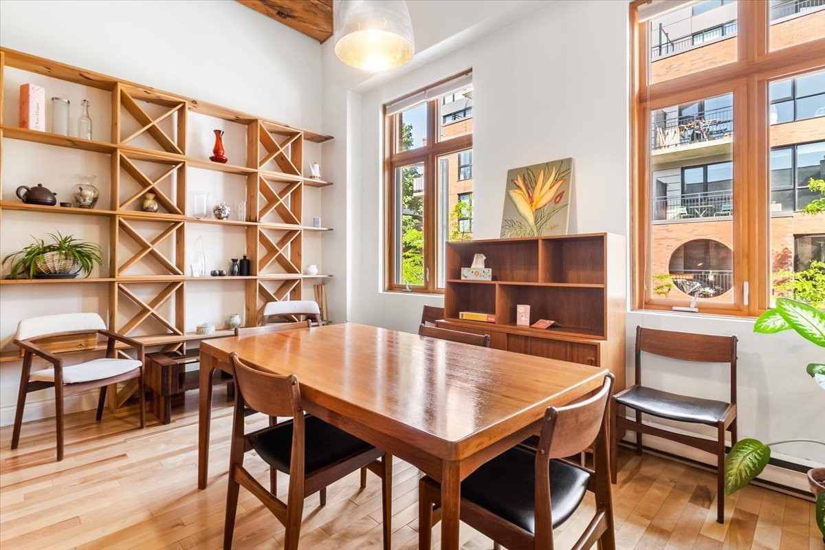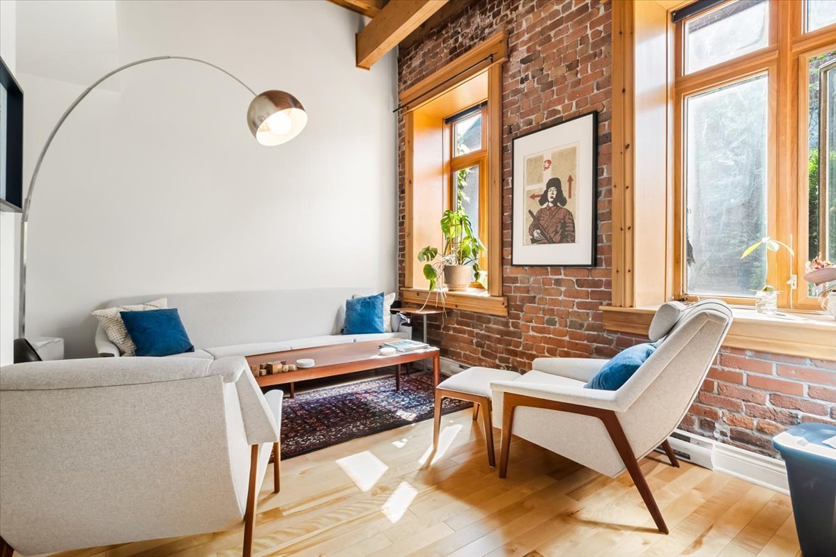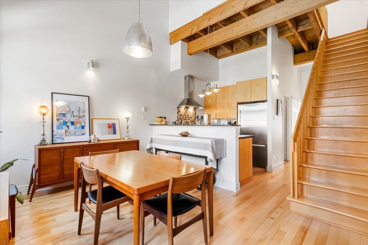 COURS DOMINION | Superbe maison de ville sur 3 niveaux, nichée dans le secteur recherché du Marché Atwater, à deux pas du canal Lachine, des pistes cyclables, cafés et restos branchés. Ancienne usine Stelco convertie : structure de bois, murs de briques et poutres apparentes, planchers de bois et d'ardoise, plafonds cathédrale. Mezzanine ou séjour pouvant faire office de chambre additionnelle. 1½ salle de bains. Terrasse privée avec vue sur le jardin intérieur. Climatiseur mural. Deux vignettes de stationnement. Possibilité de louer un garage au Wilcox. Le condo est actuellement loué.