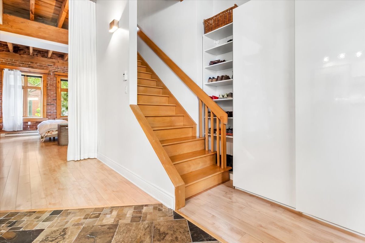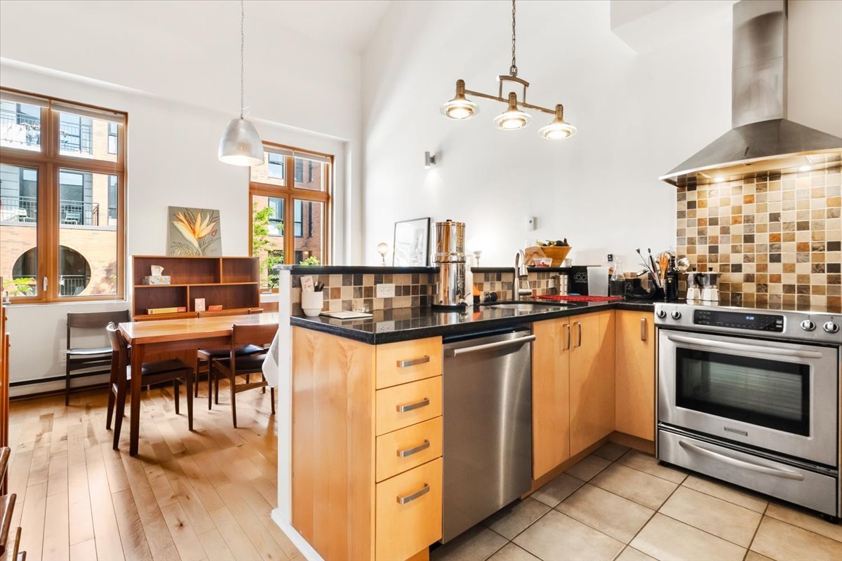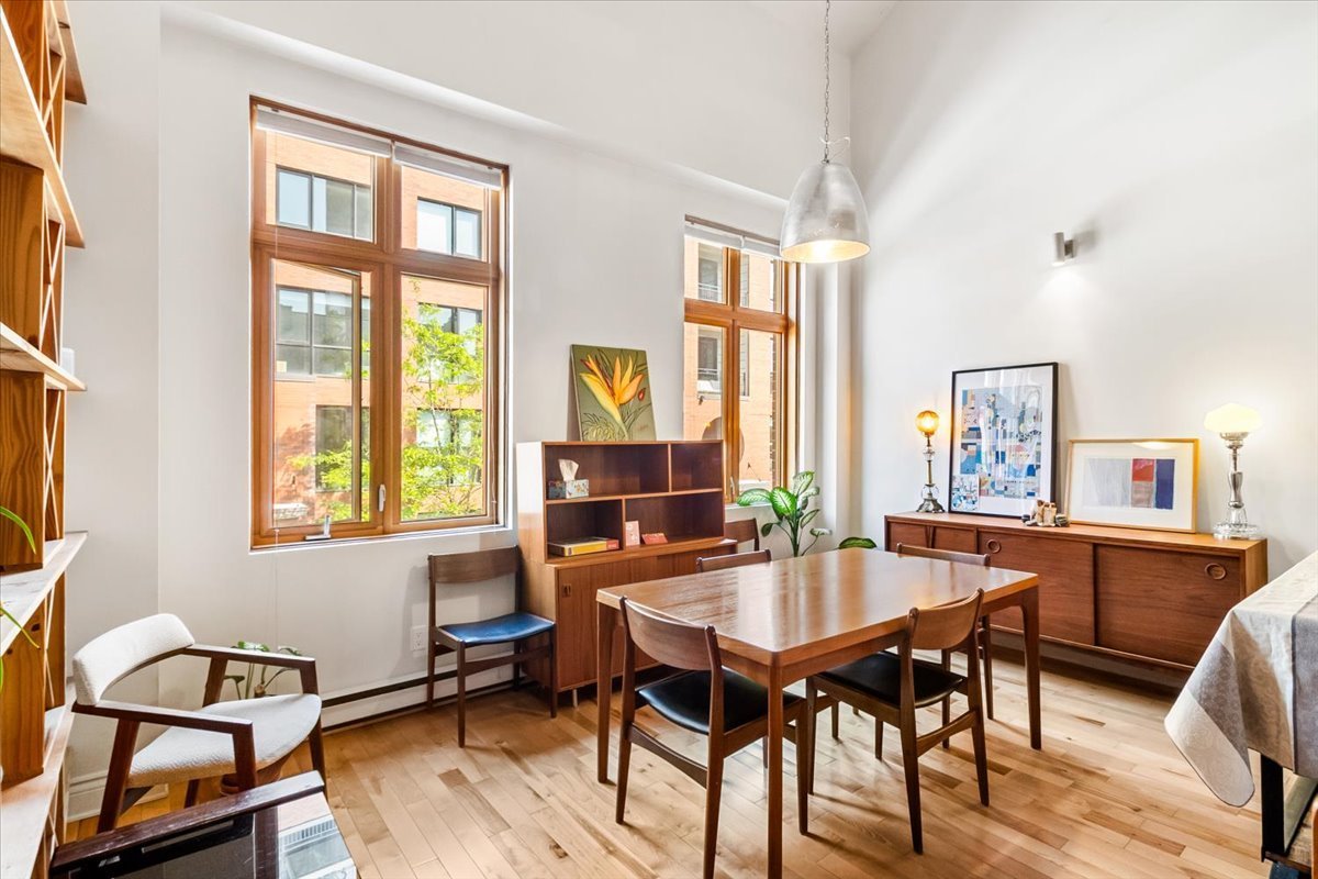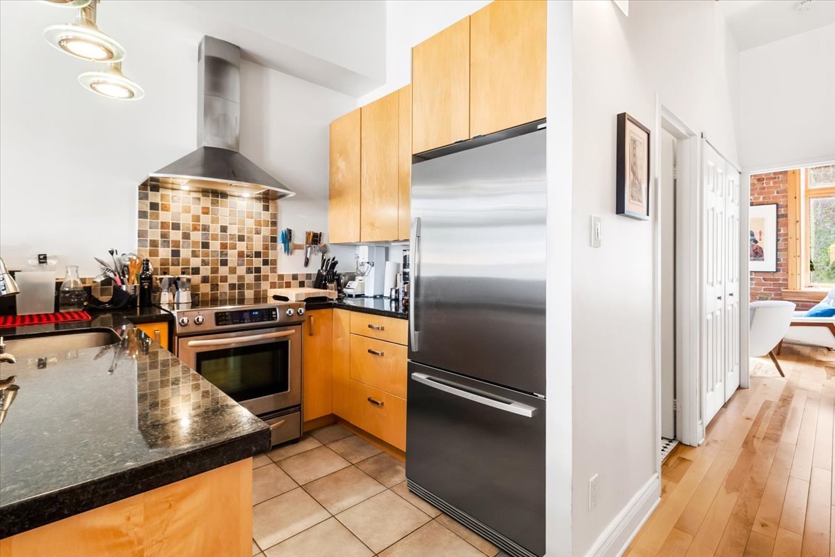 COURS DOMINION | Superbe maison de ville sur 3 niveaux, nichée dans le secteur recherché du Marché Atwater, à deux pas du canal Lachine, des pistes cyclables, cafés et restos branchés. Ancienne usine Stelco convertie : structure de bois, murs de briques et poutres apparentes, planchers de bois et d'ardoise, plafonds cathédrale. Mezzanine ou séjour pouvant faire office de chambre additionnelle. 1½ salle de bains. Terrasse privée avec vue sur le jardin intérieur. Climatiseur mural. Deux vignettes de stationnement. Possibilité de louer un garage au Wilcox. Le condo est actuellement loué.