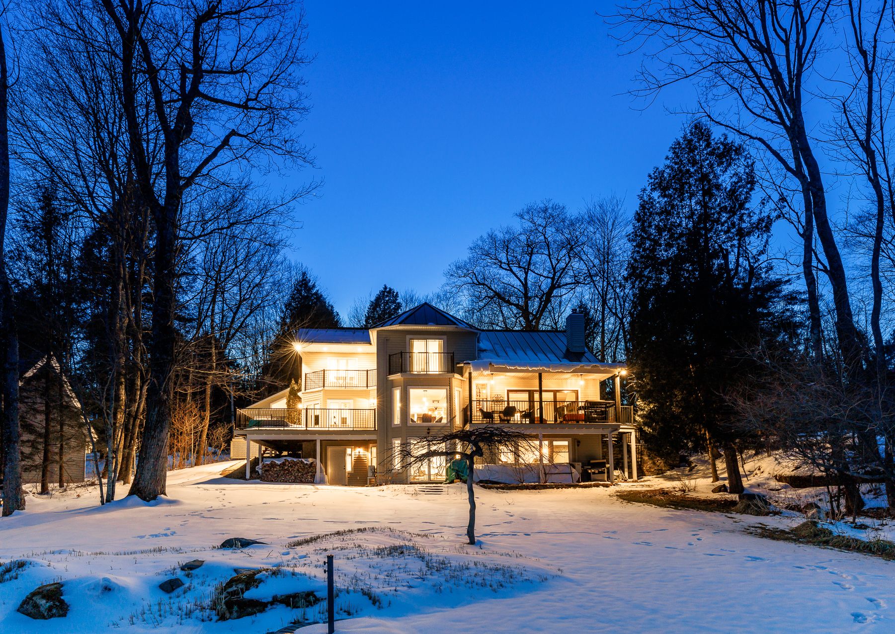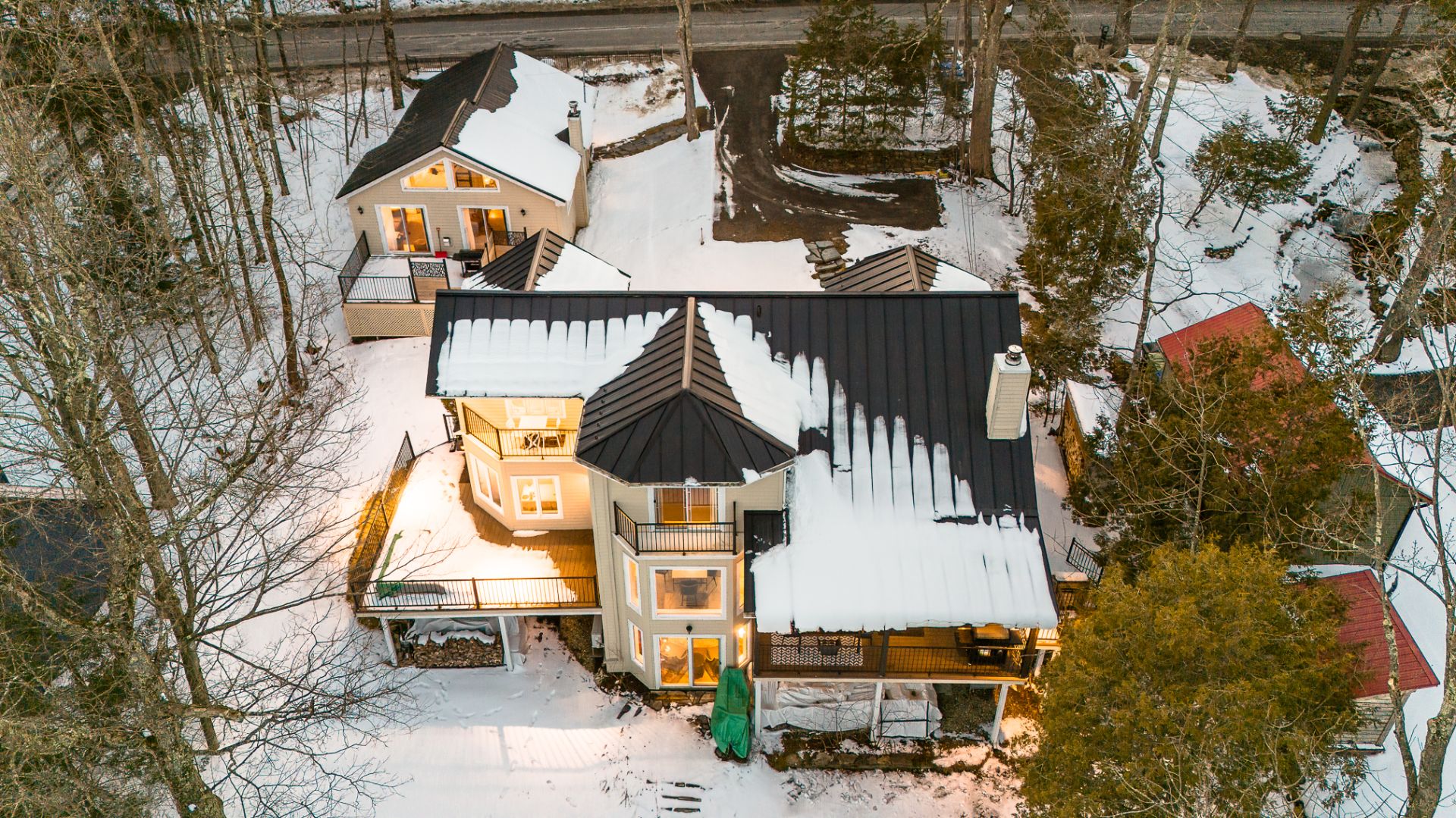 La maison principale (84) est meublée au goût du jour et se veut très chaleureuse avec ses boiseries. Un foyer au bois agrémente les journées froides et de belles grandes terrasses permettent de profiter de la saison estivale. Spacieuse avec ses 6 chambres et 31/2 salles de bain, lumineuse et confortable, c'est l'endroit parfait pour se réunir.