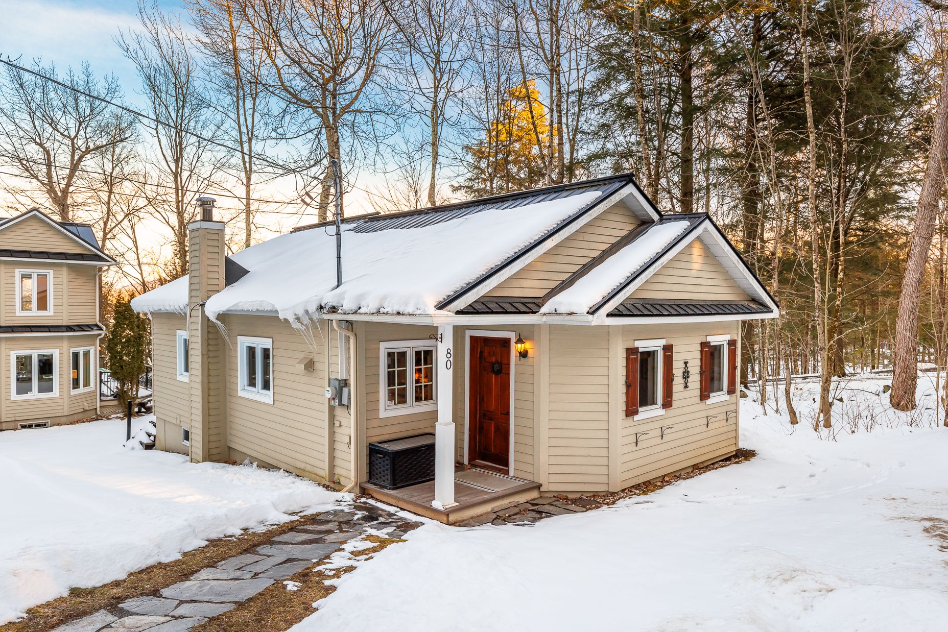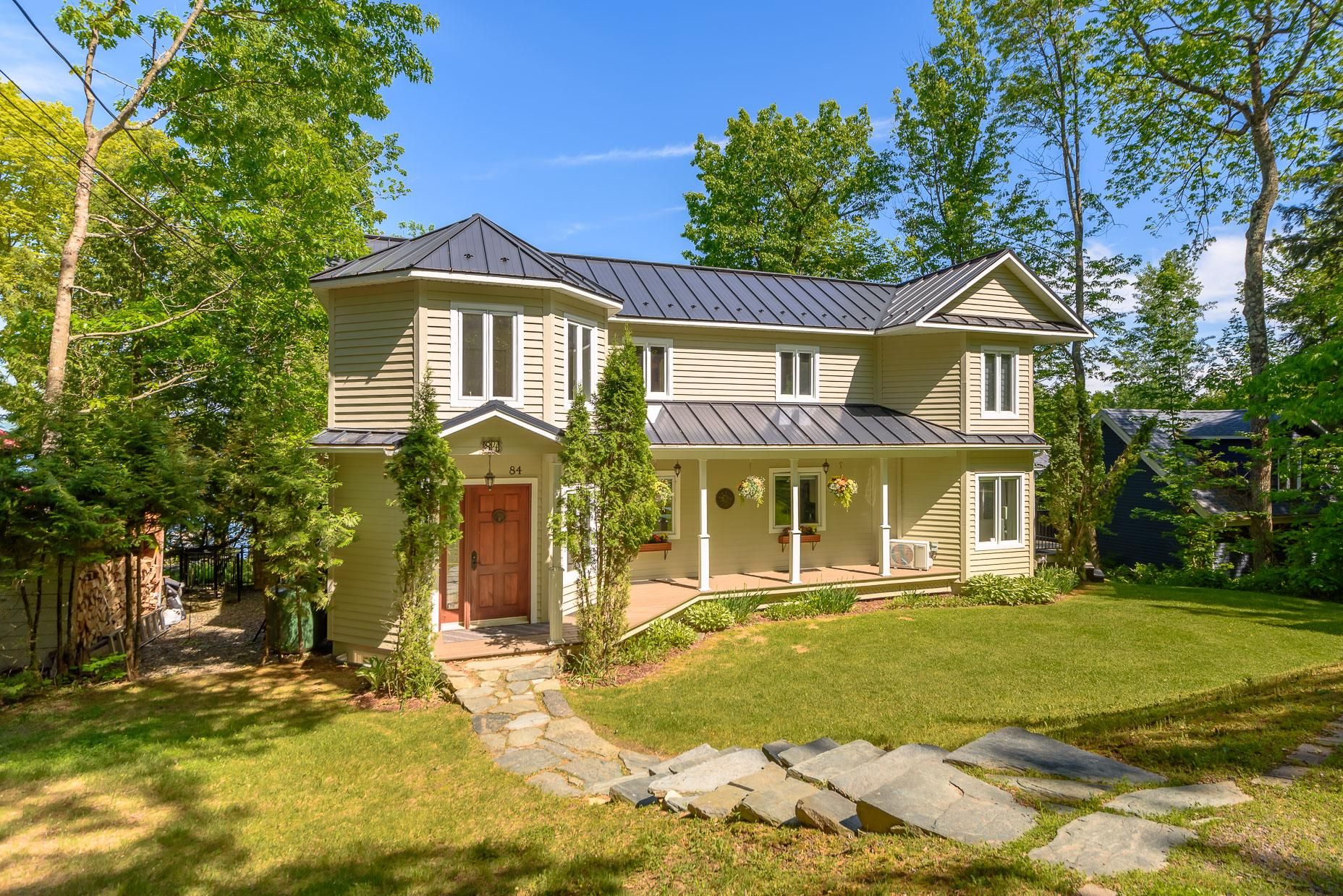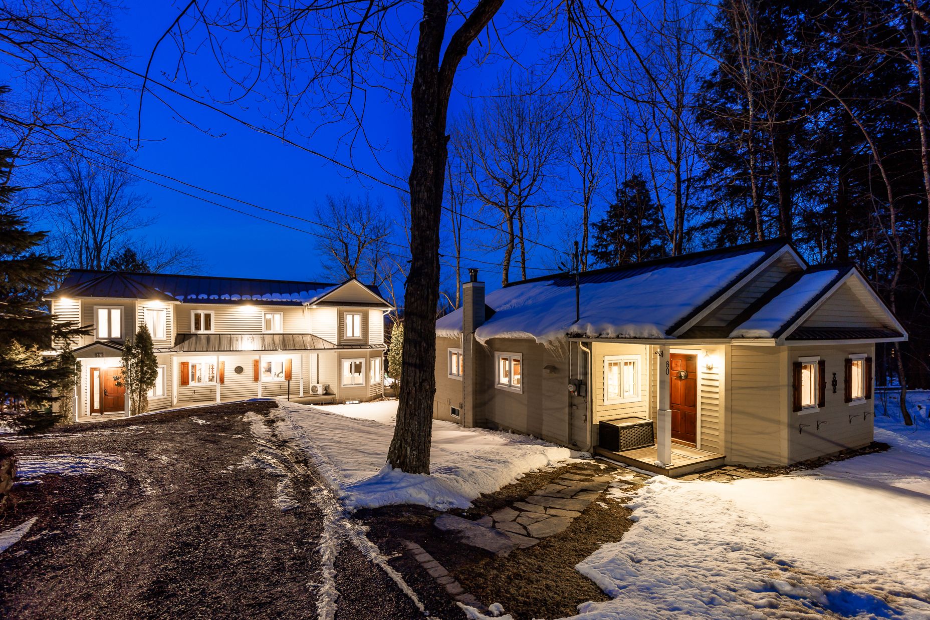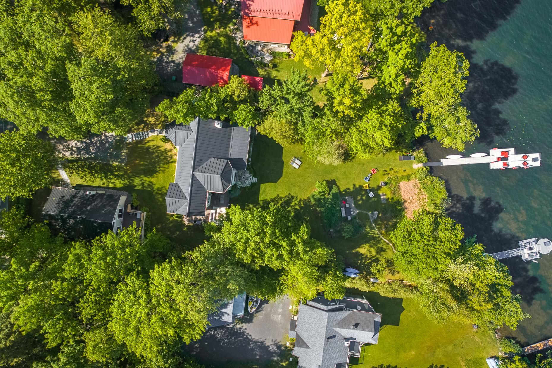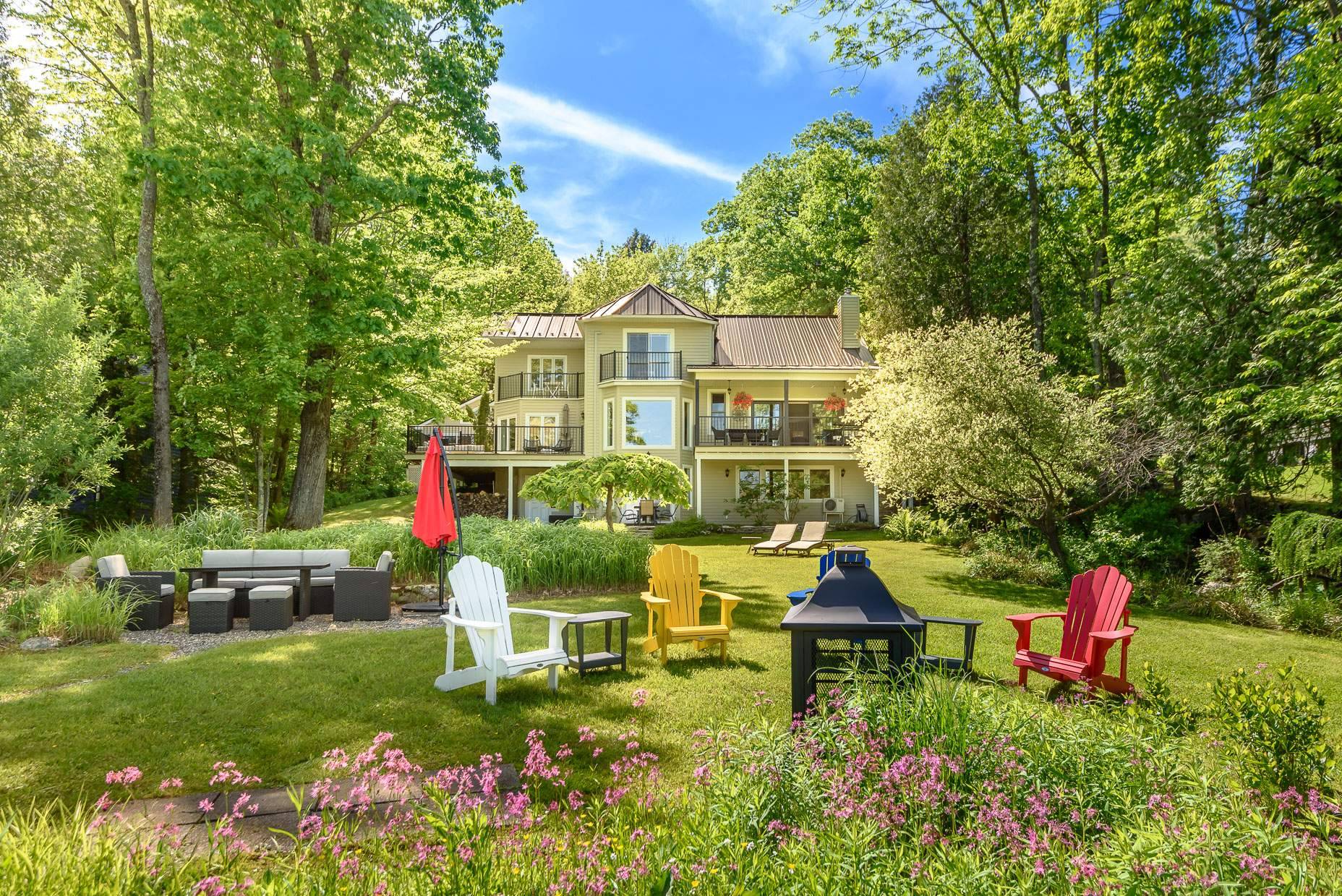 Le 80-84 Bondville est une adresse de charme. Non seulement elle comprend deux maisons, une rareté sur le lac, elle comprend aussi un grand terrain dont le frontage sur le lac fait près de 120 pieds, rendant le site très privé. Le terrain est plat, aménagé de beaux jardins, propice à la détente en bordure du lac et à y admirer le paysage environnant.
