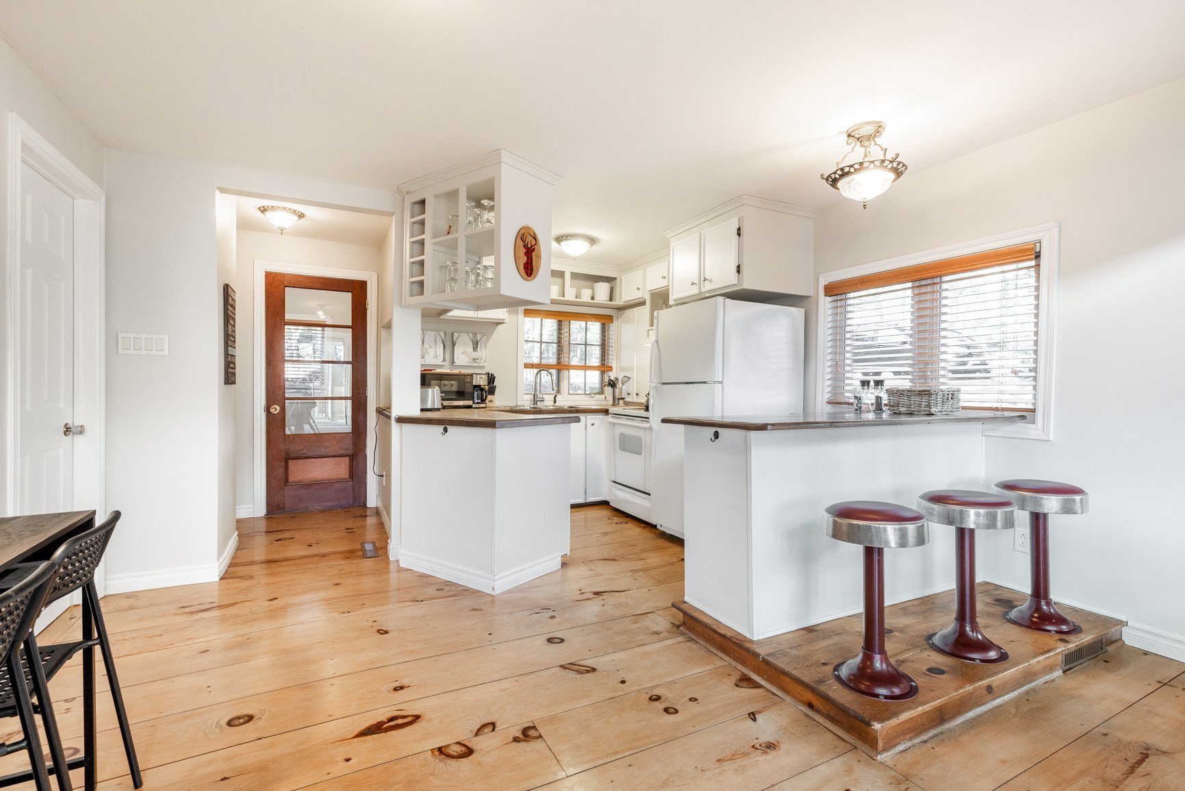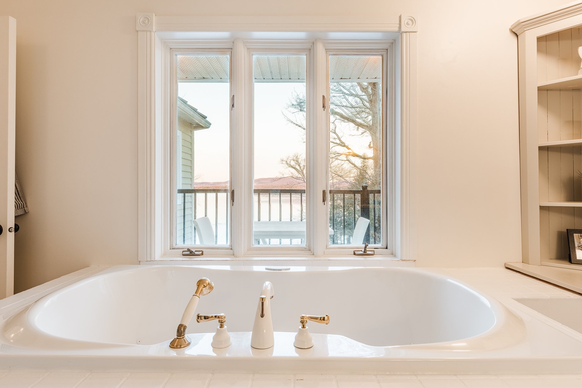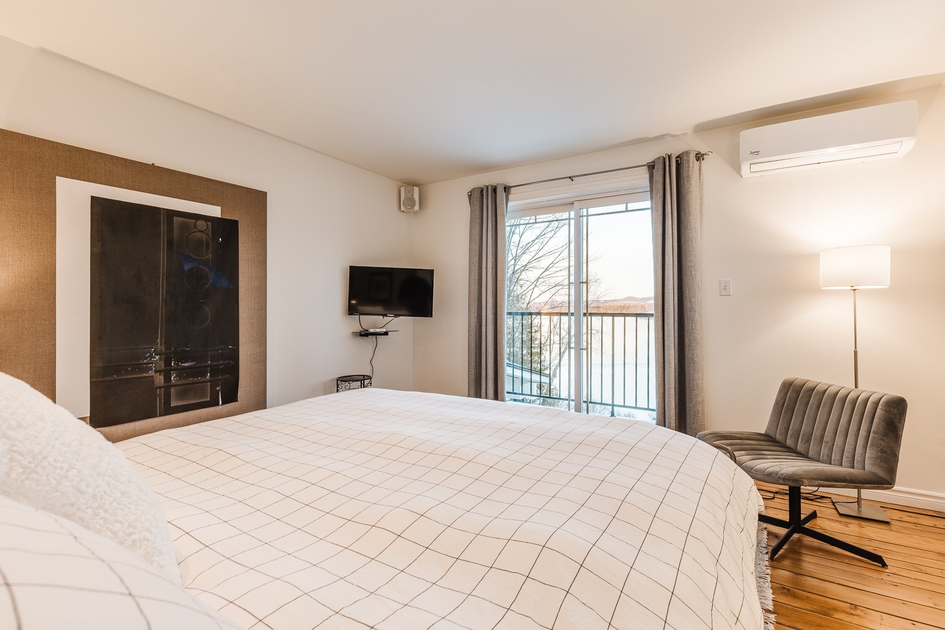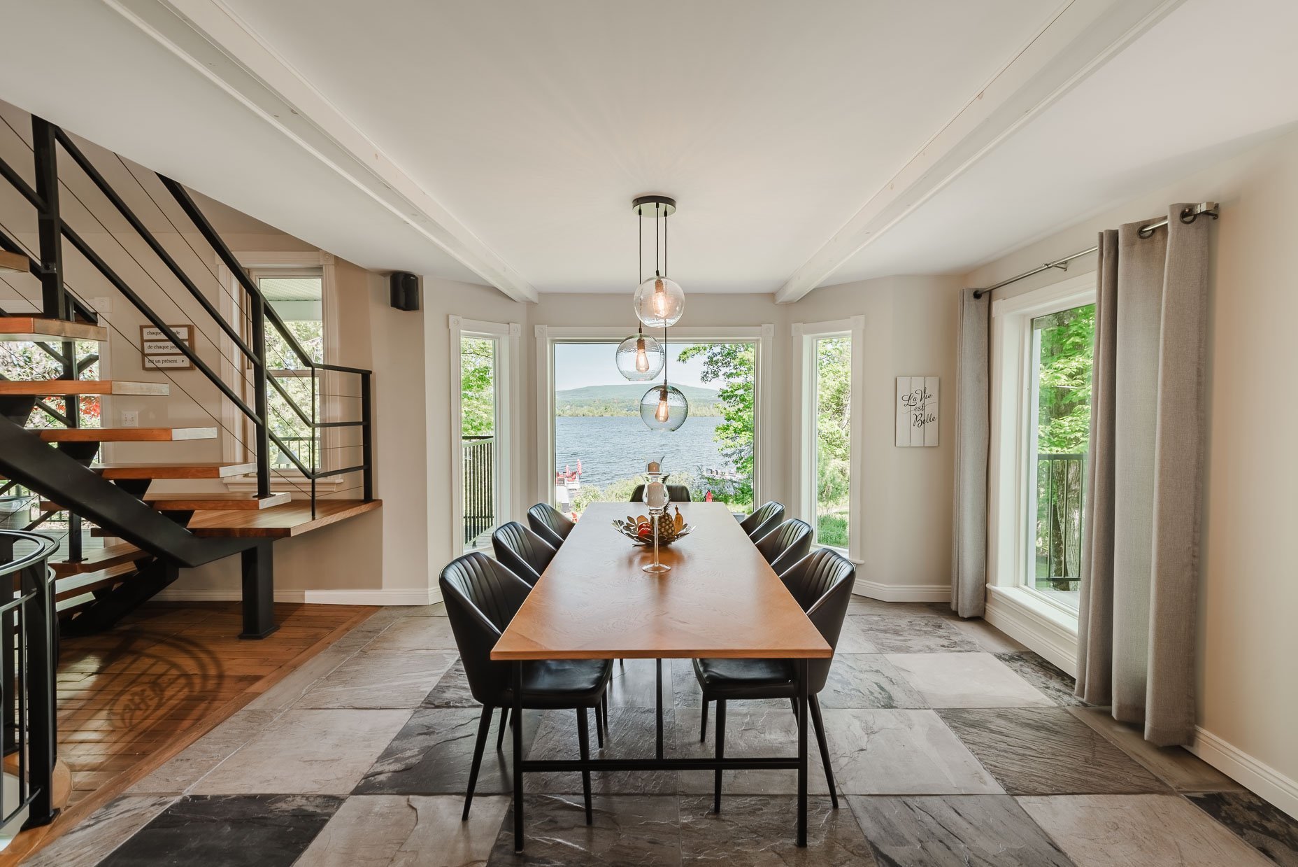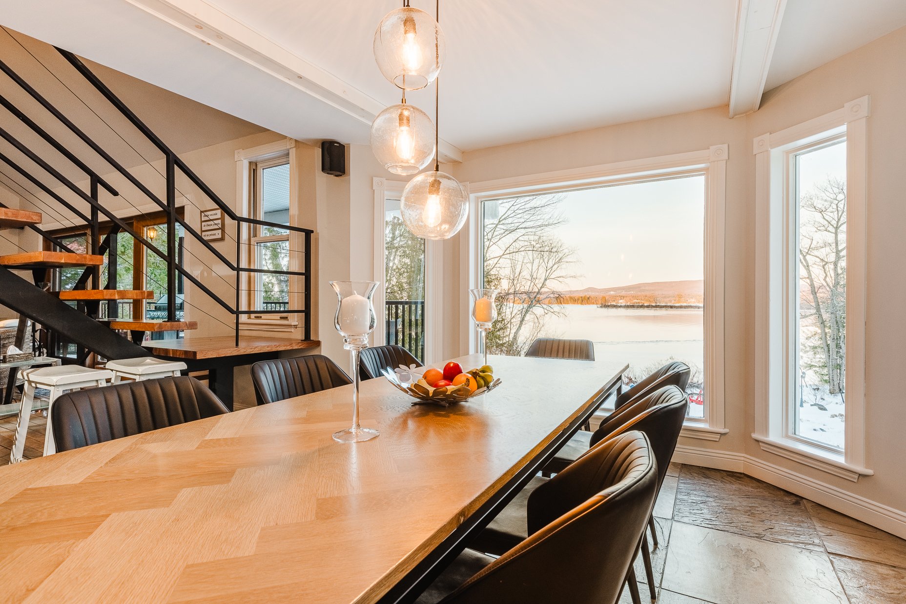 - Vue lac, porte patio, coin bar