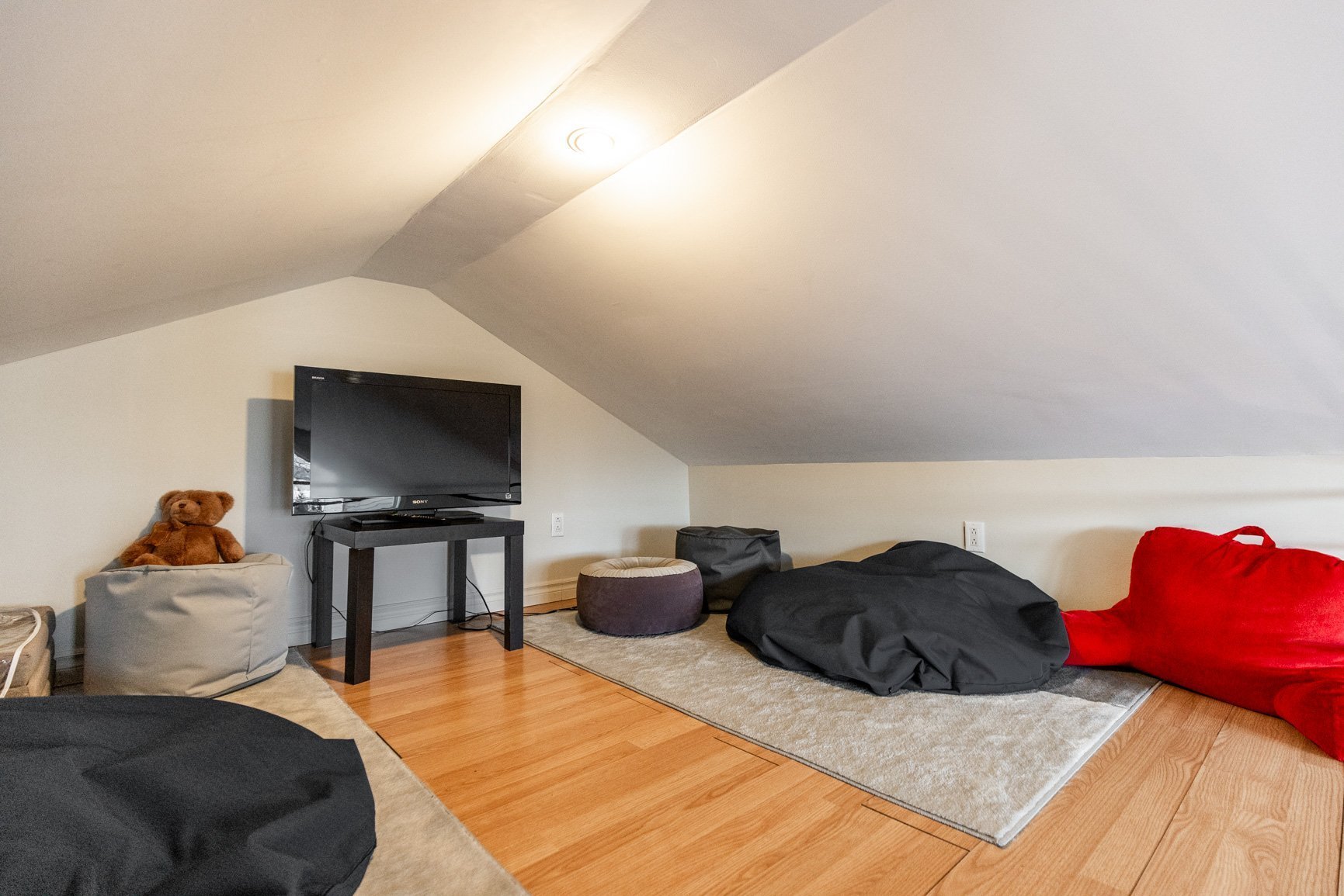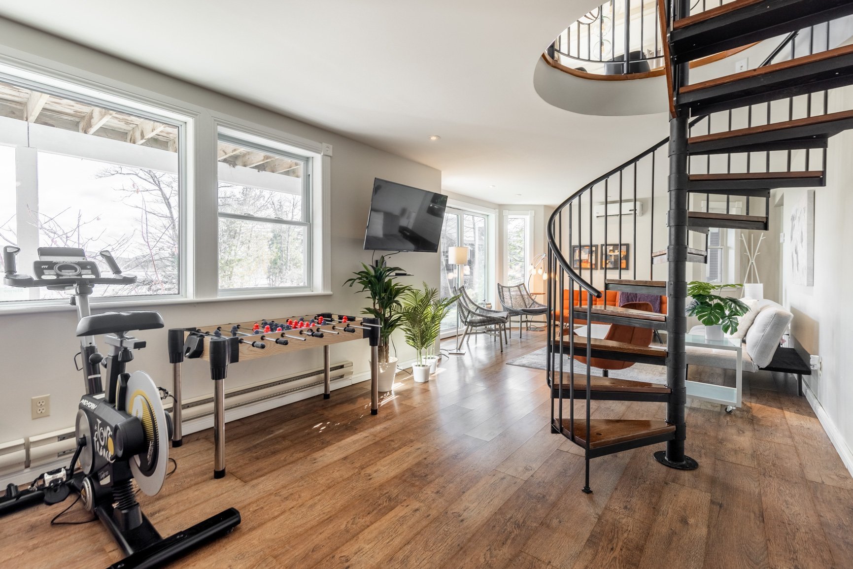 Le sous-sol de type rez-de-jardin est lui aussi ouvert sur l'extérieur avec de belles vues sur le lac grâce à une grande fenestration. On y retrouve un coin bar et une salle familiale. Une deuxième entrée permet d'y loger les articles de sports et sert aussi de buanderie.