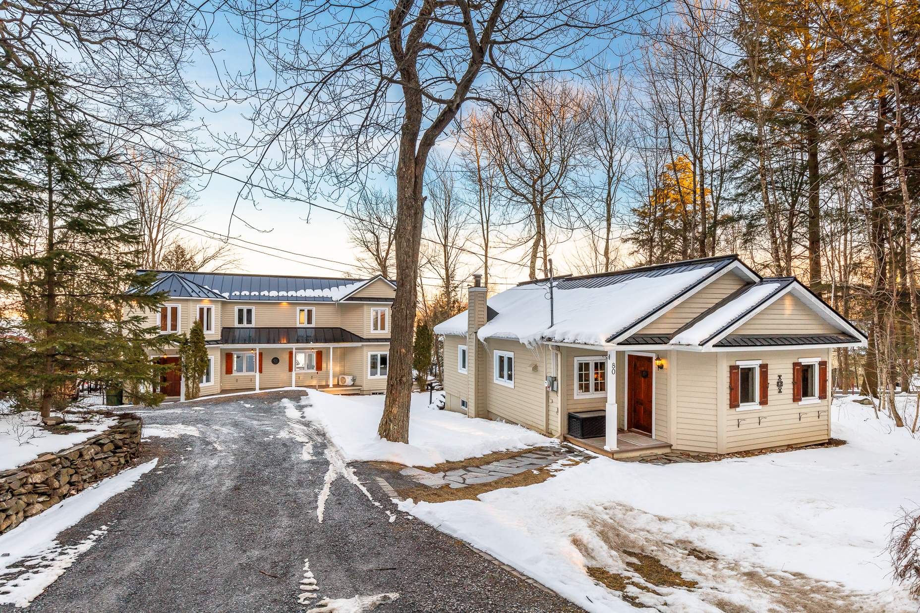 Le 80-84 Bondville est sis sur un magnifique terrain de + de 25K p.c. bordant le lac Brome sur 118 pieds. Le site comprend une maison principale qui se veut vaste et accueillante et une maison d'invités très chaleureuse & confortable. La maison principale est spacieuse, lumineuse et bénéficie d'une vue panoramique sur le lac. Ses nombreuses chambres et salle de bain permettent de recevoir en toute intimité. La cuisine est grande & fonctionnelle, ouverte sur la salle à manger. Le salon est muni d'un foyer au bois. Le RDJ comprend une grande salle familiale et s'ouvre sur l'extérieur. La propriété idéale pour se réunir entre amis ou en famille!