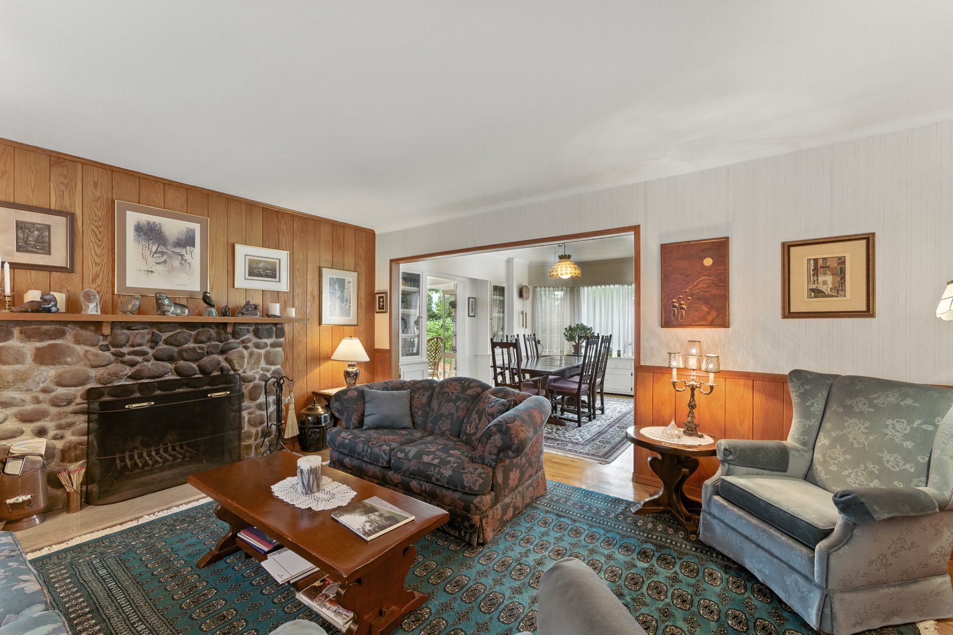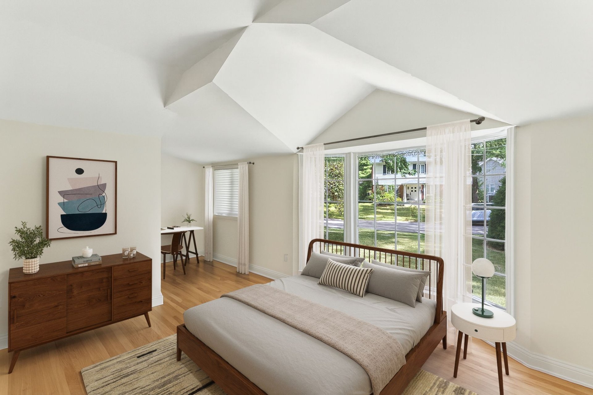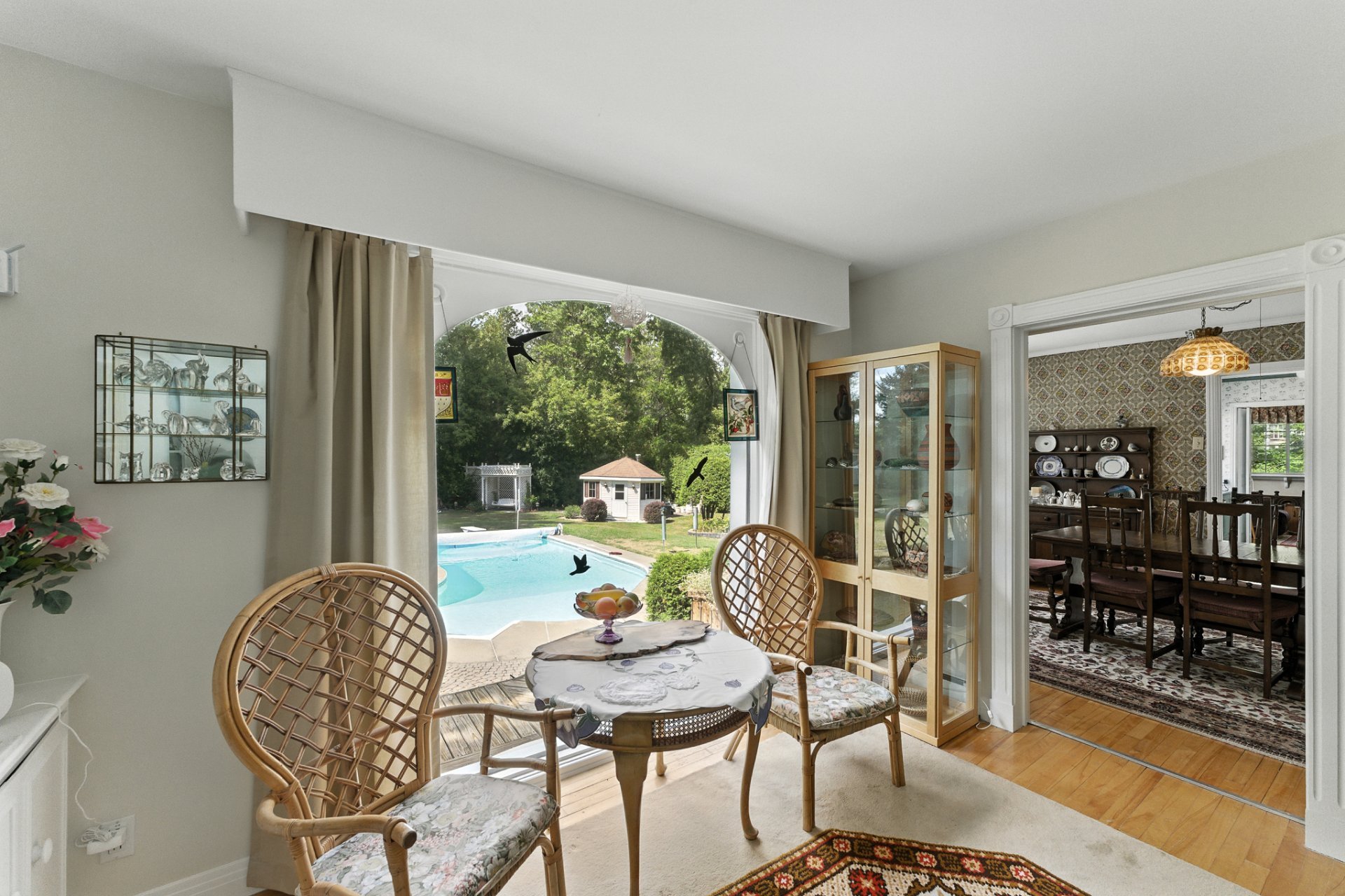 Il offre un salon lumineux avec foyer en pierre naturelle, créant une ambiance chaleureuse pour des moments en famille. La cuisine fonctionnelle, adjacente à la salle à manger, s'ouvre sur la cour arrière et la piscine. Un solarium lumineux prolonge l'espace de vie, idéal comme coin lecture, salle de loisirs ou espace de détente. Un boudoir avec une vue magnifique sur le terrain paysagé ajoute une touche de sérénité, tandis qu'une chambre avec salle de bain attenante constitue un espace parfait pour accueillir des invités ou aménager un bureau à domicile.