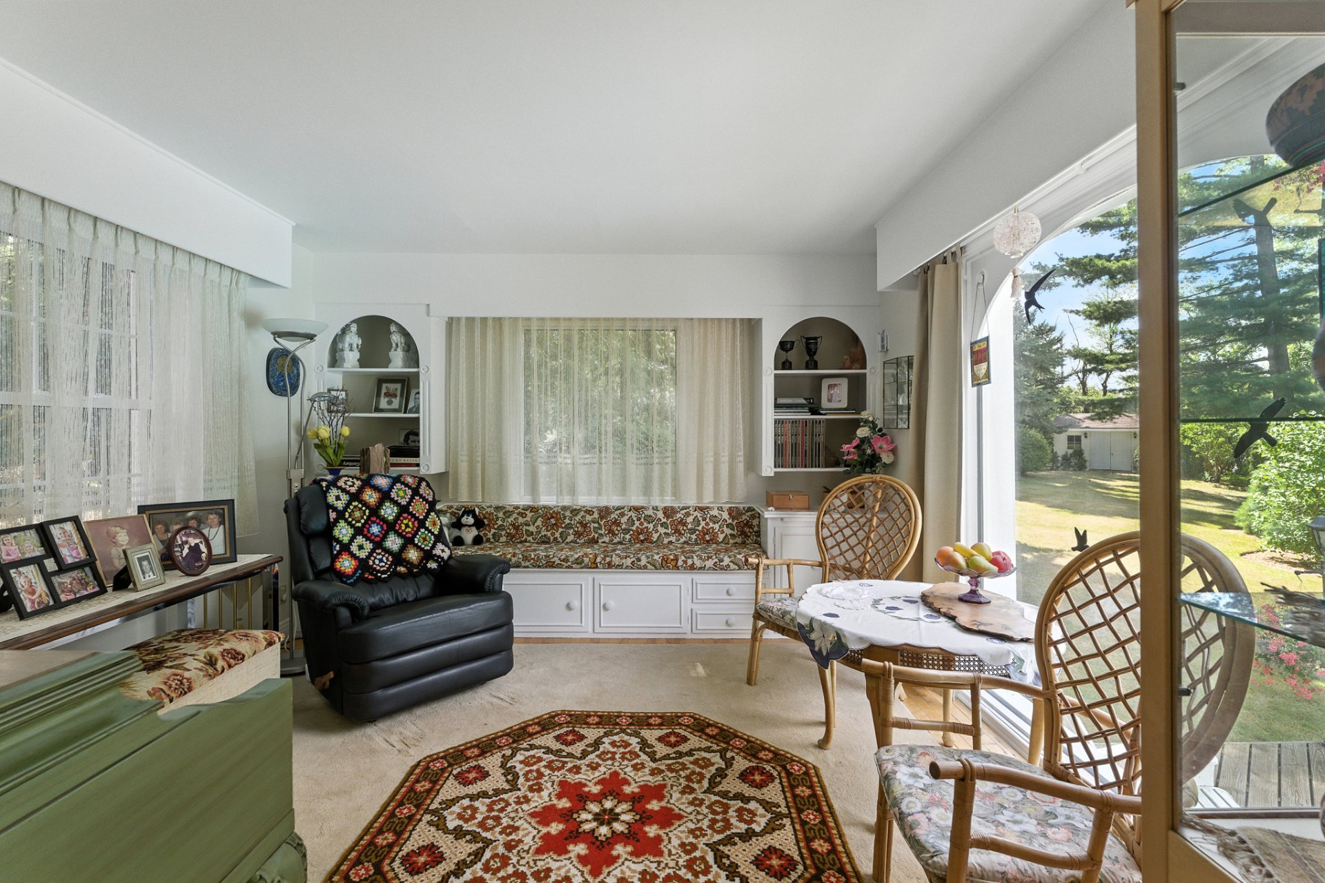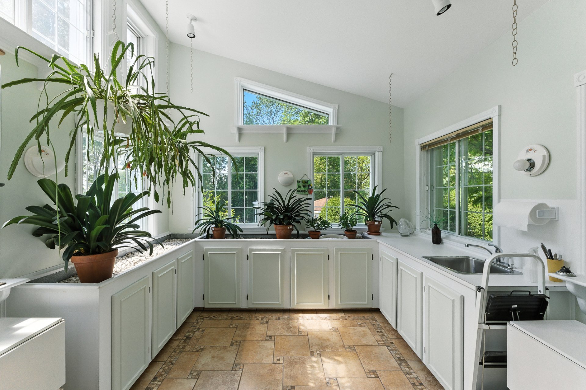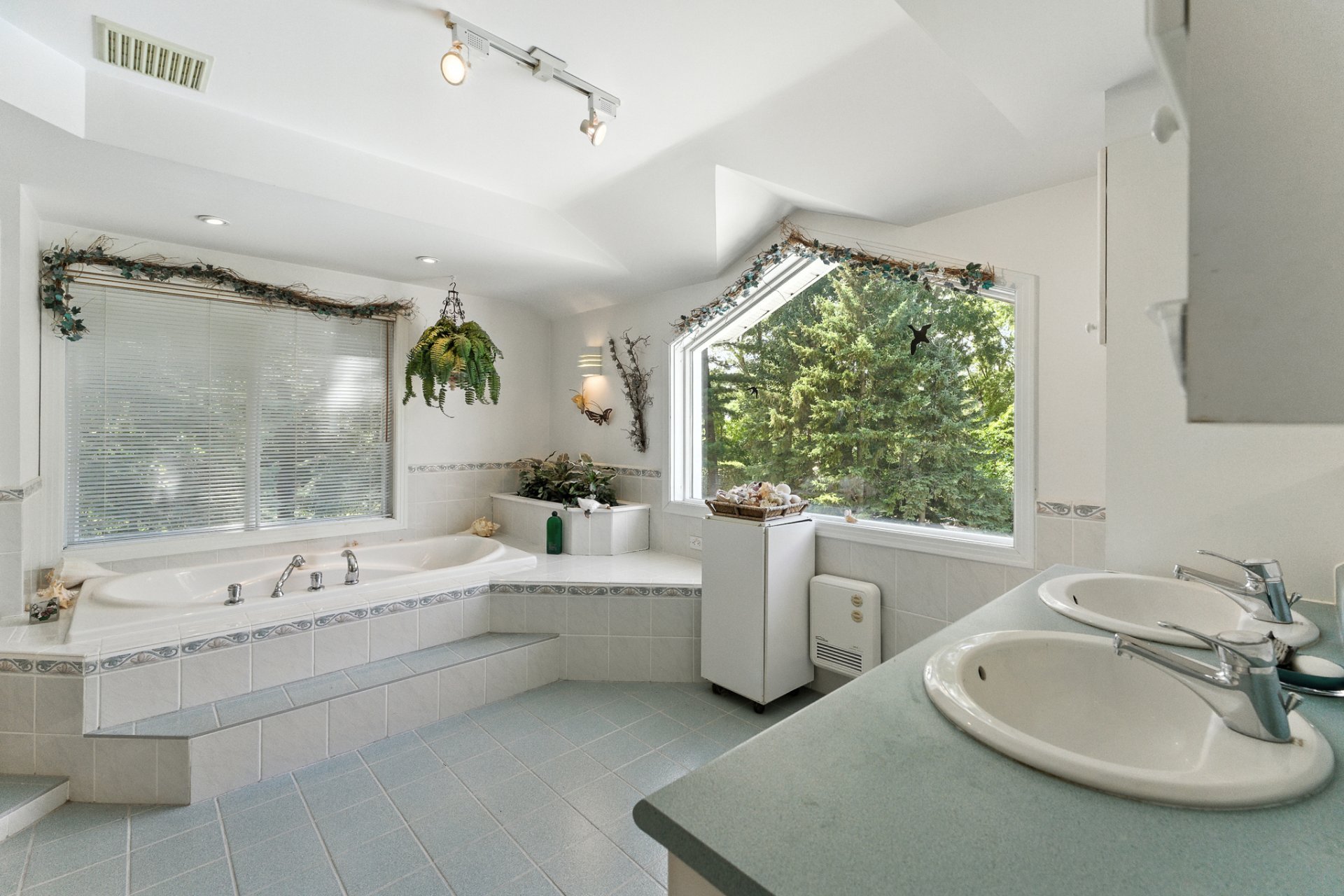 Il offre un salon lumineux avec foyer en pierre naturelle, créant une ambiance chaleureuse pour des moments en famille. La cuisine fonctionnelle, adjacente à la salle à manger, s'ouvre sur la cour arrière et la piscine. Un solarium lumineux prolonge l'espace de vie, idéal comme coin lecture, salle de loisirs ou espace de détente. Un boudoir avec une vue magnifique sur le terrain paysagé ajoute une touche de sérénité, tandis qu'une chambre avec salle de bain attenante constitue un espace parfait pour accueillir des invités ou aménager un bureau à domicile.