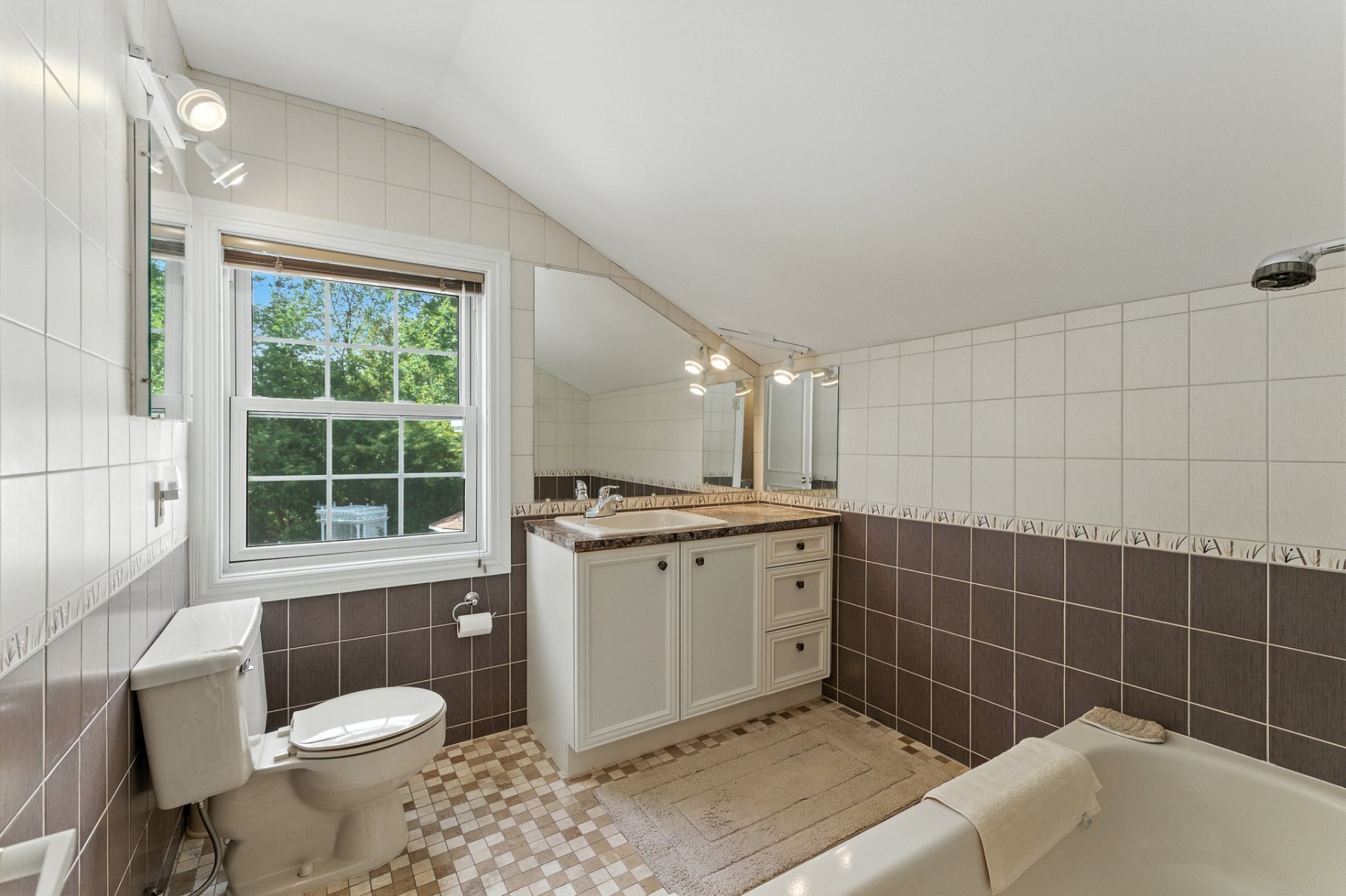 À l'étage, vous découvrirez trois chambres et deux salles de bain, dont une suite principale surdimensionnée avec salle de bain attenante, offrant un confort et un espace remarquables. Les deux autres chambres, de taille standard, sont baignées de lumière naturelle, créant un espace idéal pour la vie de famille ou pour recevoir des invités.