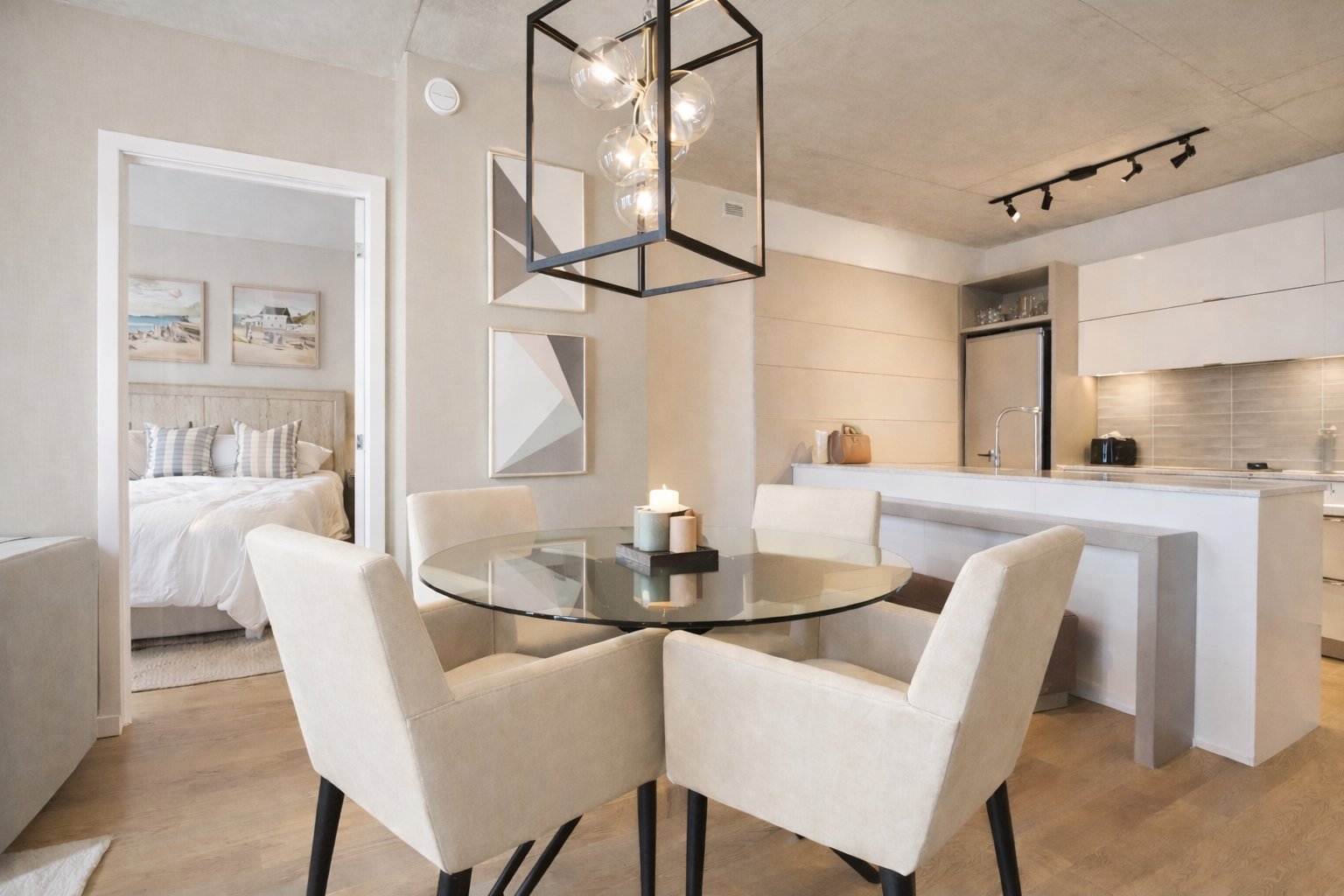 - Réfrigérateur, lave-vaisselle, plaque de cuisson, four encastré, laveuse et sécheuse. Stationnement au garage #245, rangement intérieur #36. Condo vendu entièrement meublé (meubles sur place, les photos ont un homestaging virtuel).