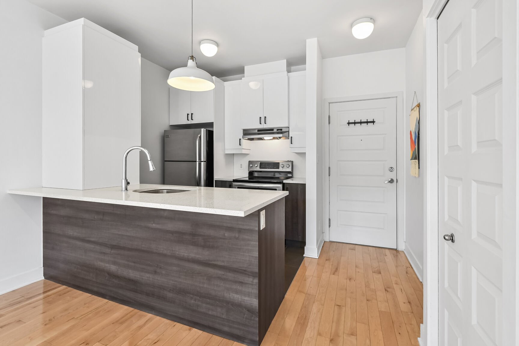 Condo 1 chambre clé en main dans un immeuble de 2014, bien géré et sécuritaire. Aire de vie ouverte et lumineuse, cuisine moderne avec comptoirs contemporains en quartz et électroménagers récents. Chambre fermée de bonne dimension avec rangement optimisé. Salle de bain au goût du jour aux finitions actuelles.
