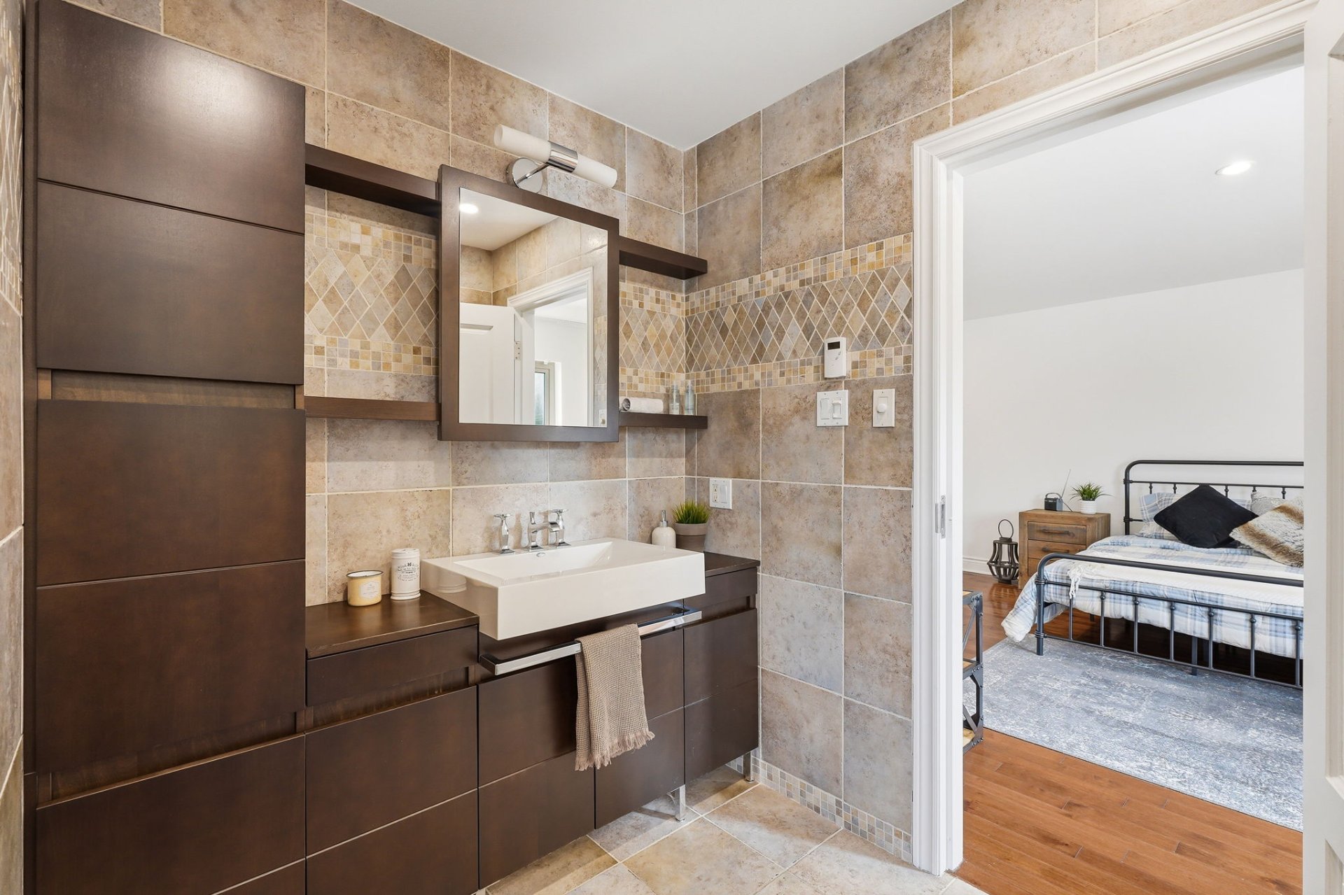 Située dans un environnement verdoyant, cette propriété charme par son architecture élégante et ses lignes intemporelles. Dès l'entrée, un hall spectaculaire en céramique italienne annonce un niveau de finition irréprochable. Les espaces de vie, baignés de lumière, s'articulent autour d'un foyer au propane dans une ambiance à la fois chaleureuse et sophistiquée. La cuisine, signée Cuisine Rosemère , marie design et fonctionnalité avec distinction. Suite principale raffinée avec salle de bains attenante et 2 walk-in, étage lumineux avec lounge vitré. Espace extérieur avec pool house aménagé, piscine creusée chauffée, véranda et garage double.