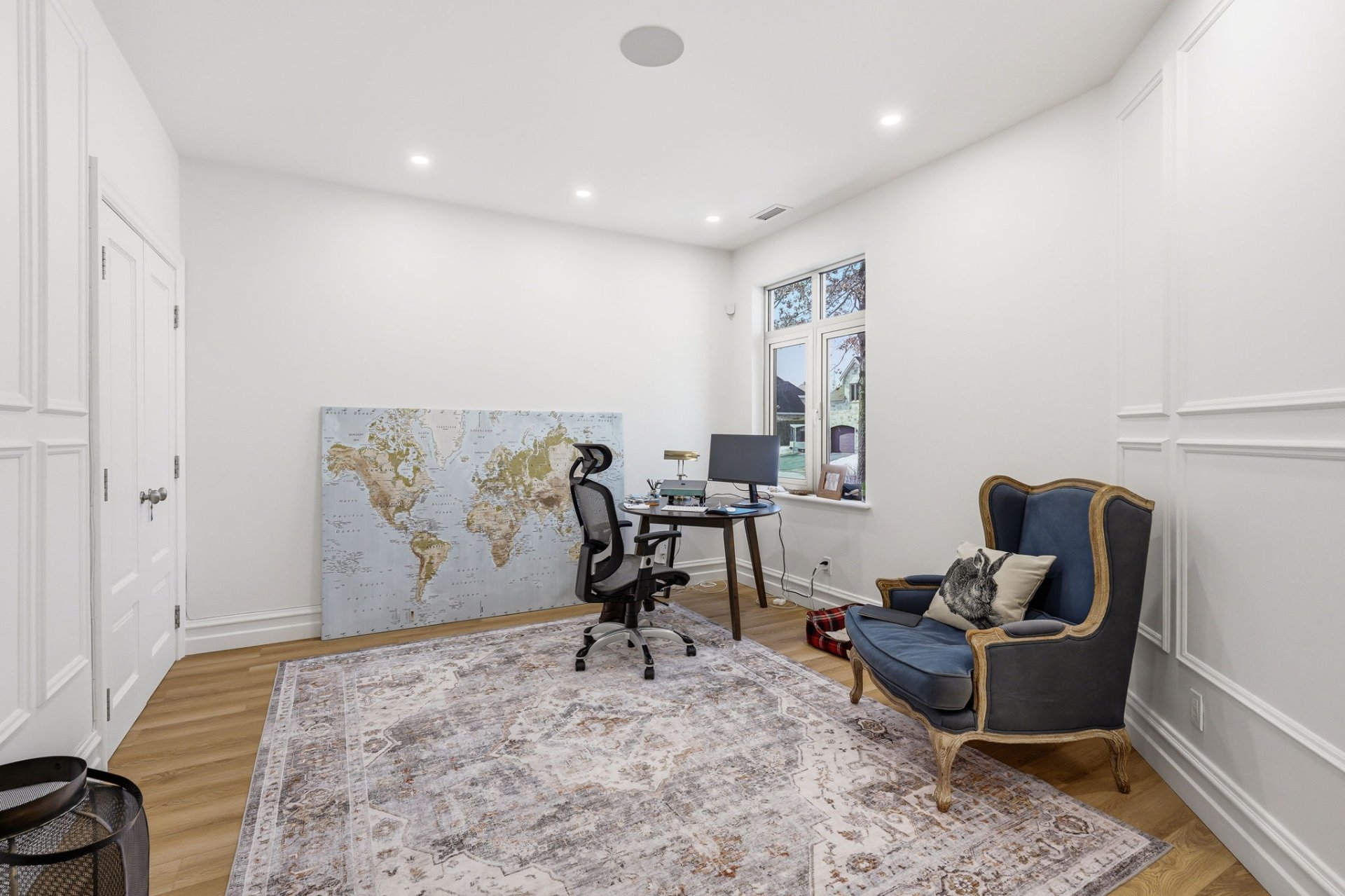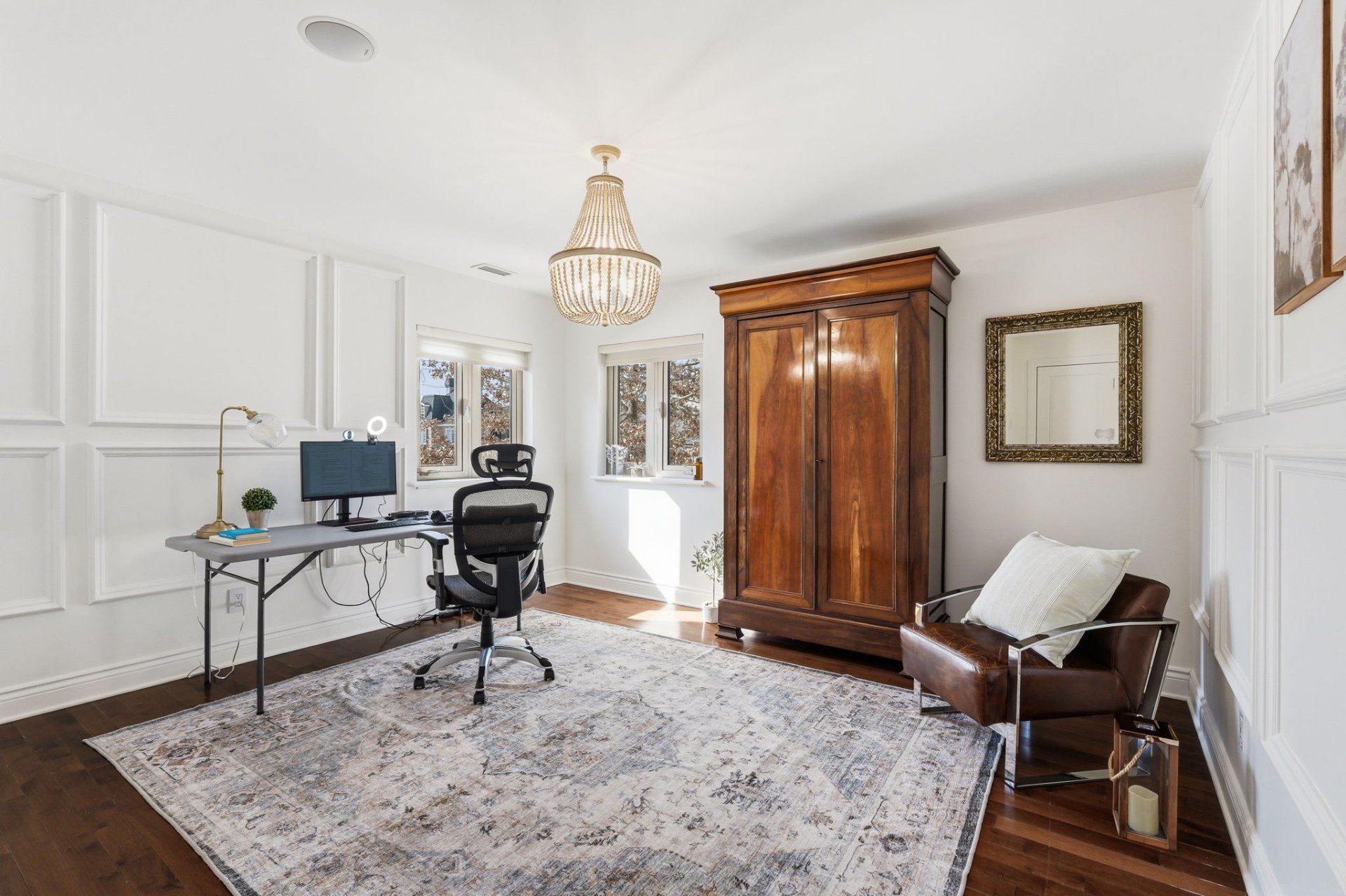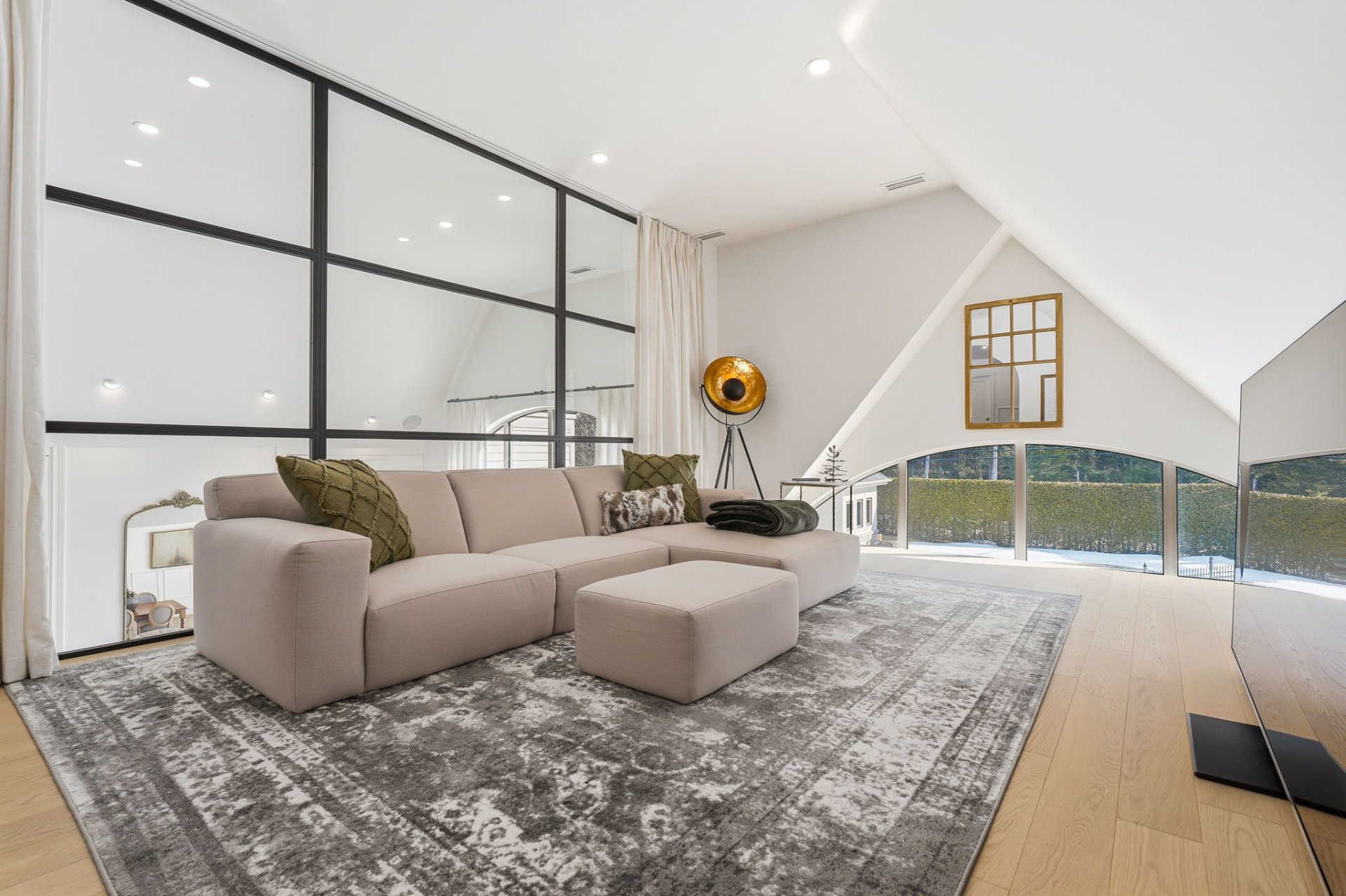 À l'étage, un élégant espace lounge vitré a été aménagé, créant un lieu de détente unique baigné de lumière naturelle. Ce niveau propose également trois chambres de belles dimensions, deux salles de bains complètes avec planchers chauffants, ainsi qu'une pièce de rangement, répondant parfaitement aux besoins d'une vie familiale raffinée.