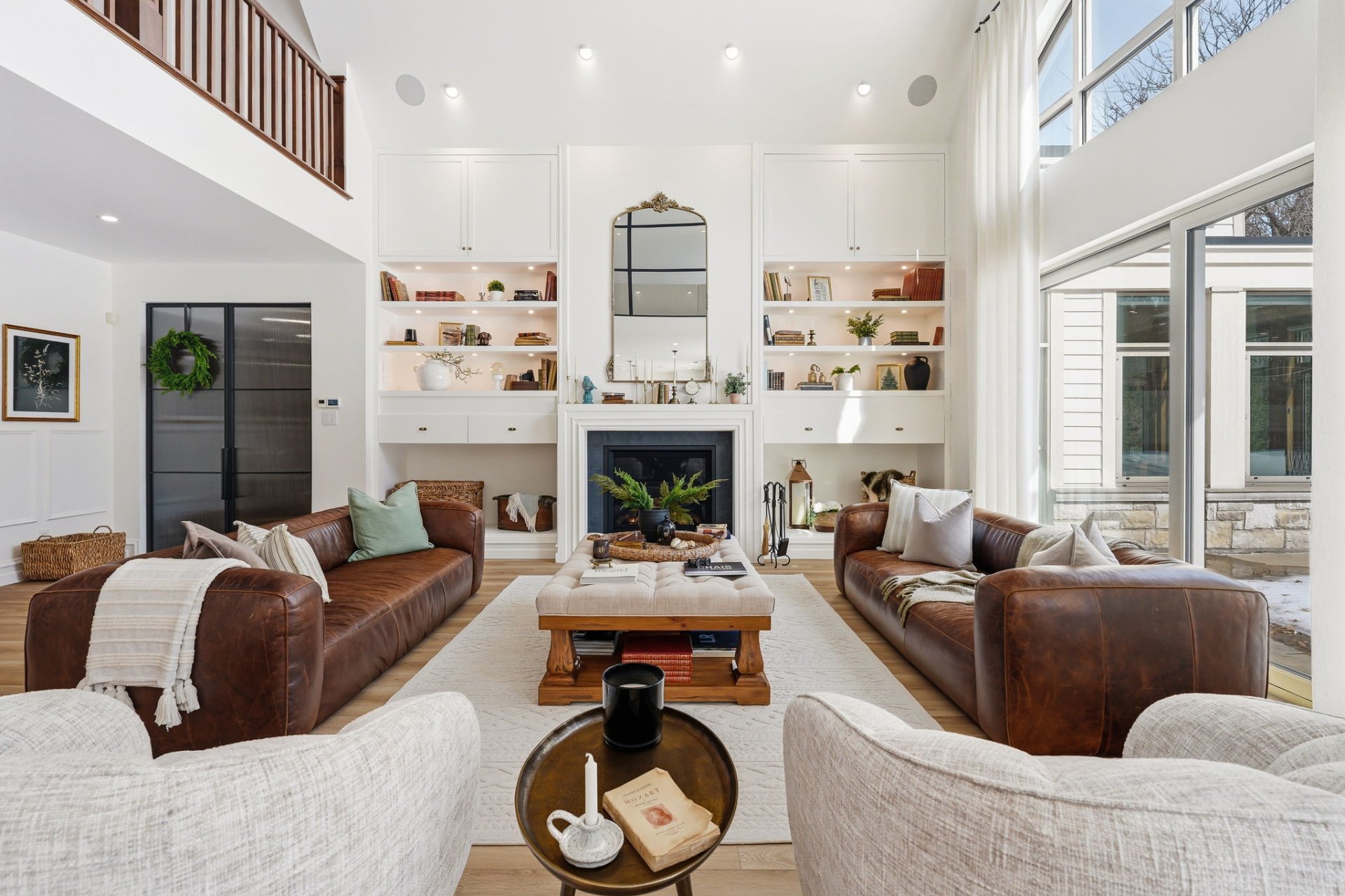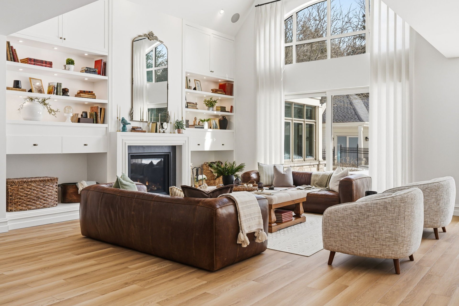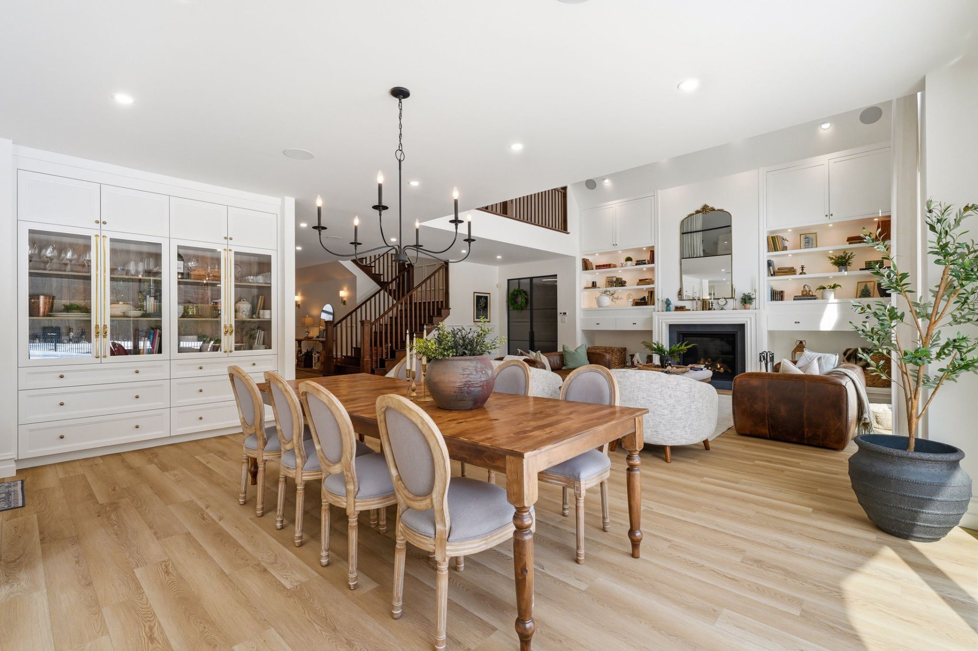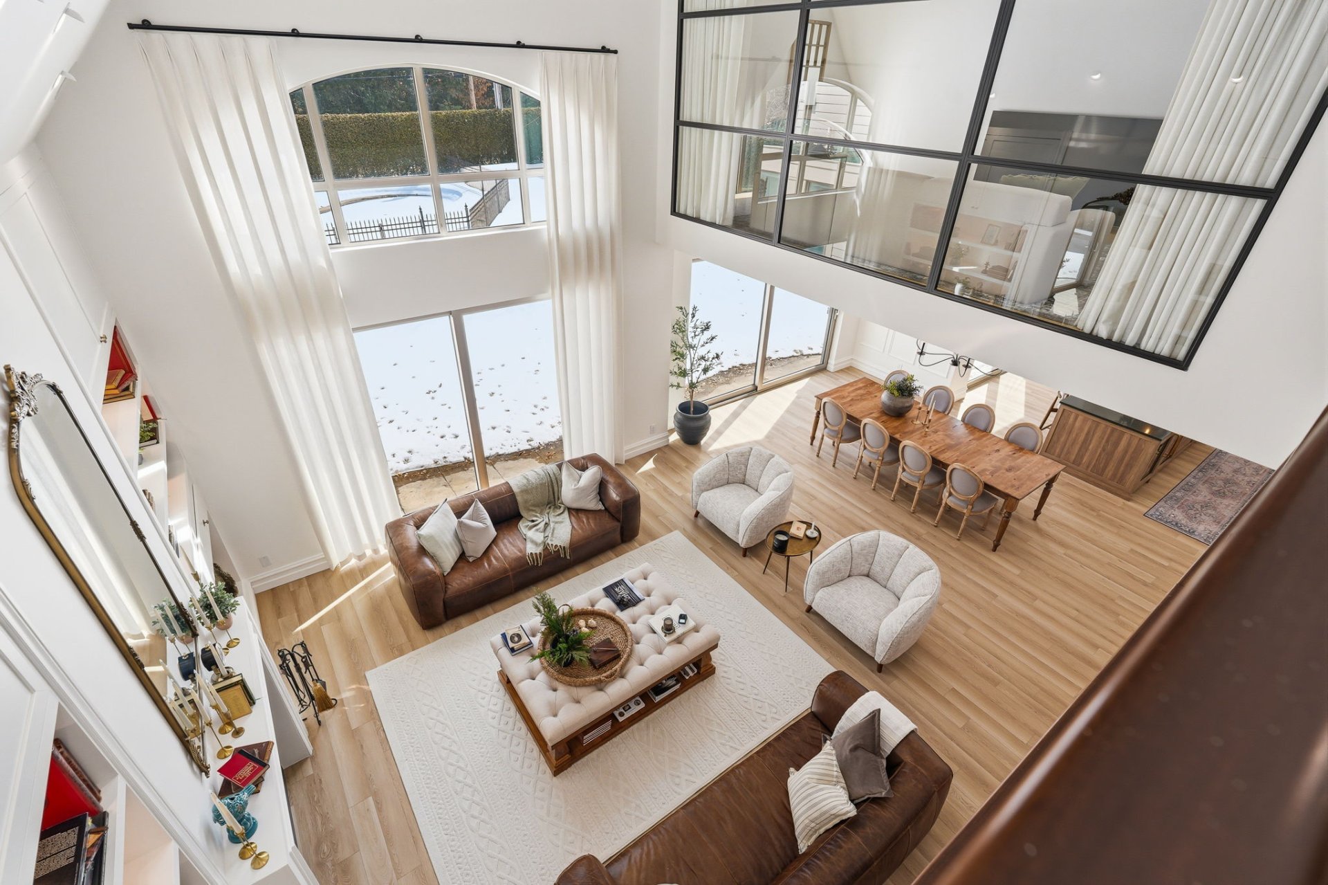 Les espaces de vie se déploient avec fluidité et élégance. Le salon, à la fois chaleureux et sophistiqué, est sublimé par un foyer au propane et des aménagements intégrés, créant une ambiance conviviale et raffinée.