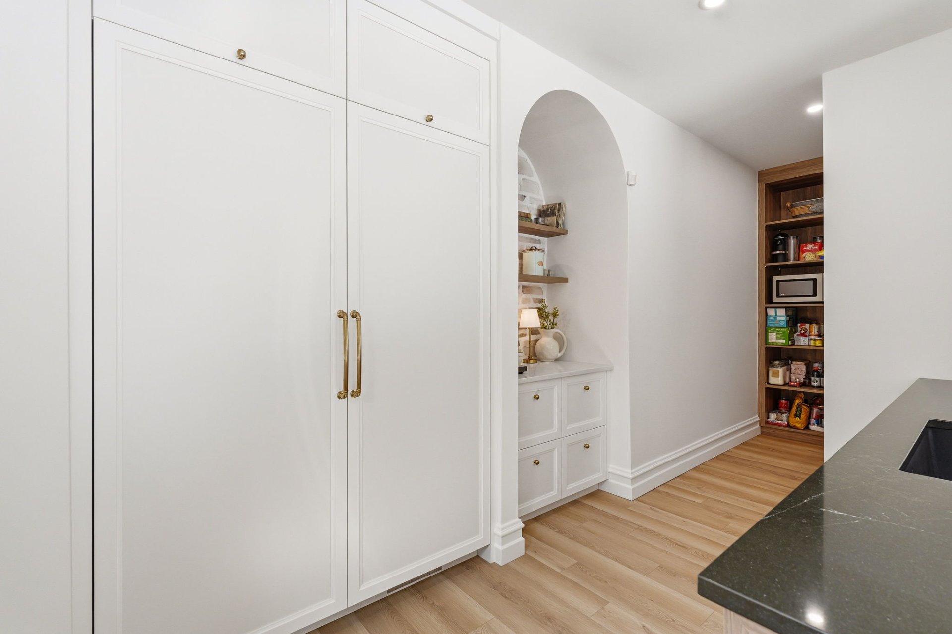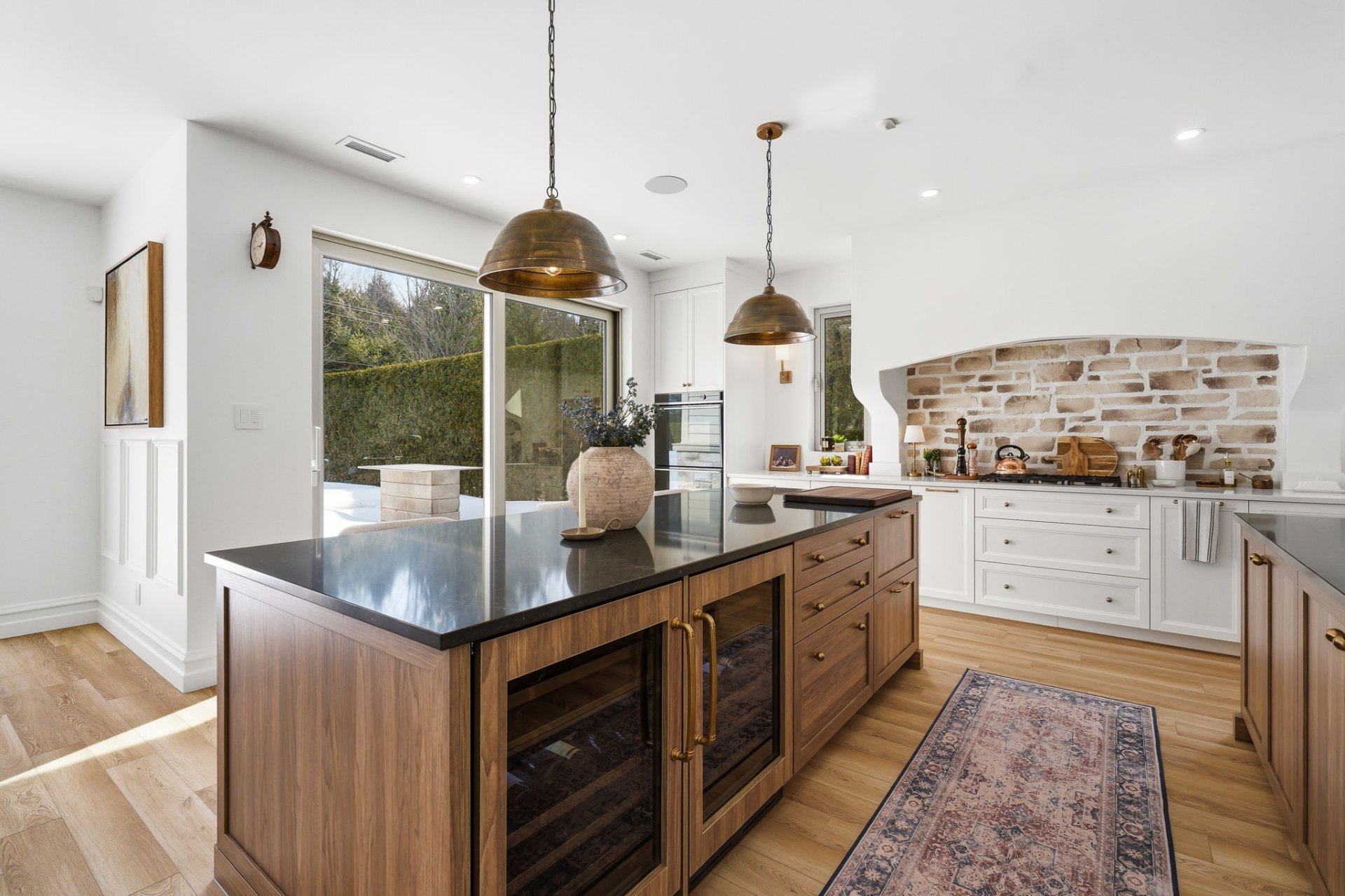 La cuisine, entièrement repensée en 2025 et signée Cuisine Rosemère, constitue une véritable oeuvre de design où matériaux nobles et fonctionnalité s'harmonisent parfaitement. Pensée pour recevoir, elle s'ouvre naturellement sur les espaces de vie, favorisant une expérience à la fois conviviale et spectaculaire.