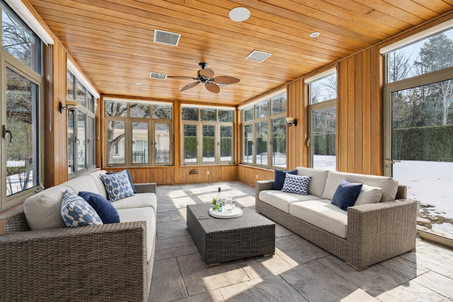 - Électroménagers, luminaires et fixtures, habillage des fenêtres, piscine et accessoires, hauts-parleur, système domotique (Control4), miroirs du salon et salle de bains des maîtres, système de caméra de sécurité, système d'alarme relié à la centrale.