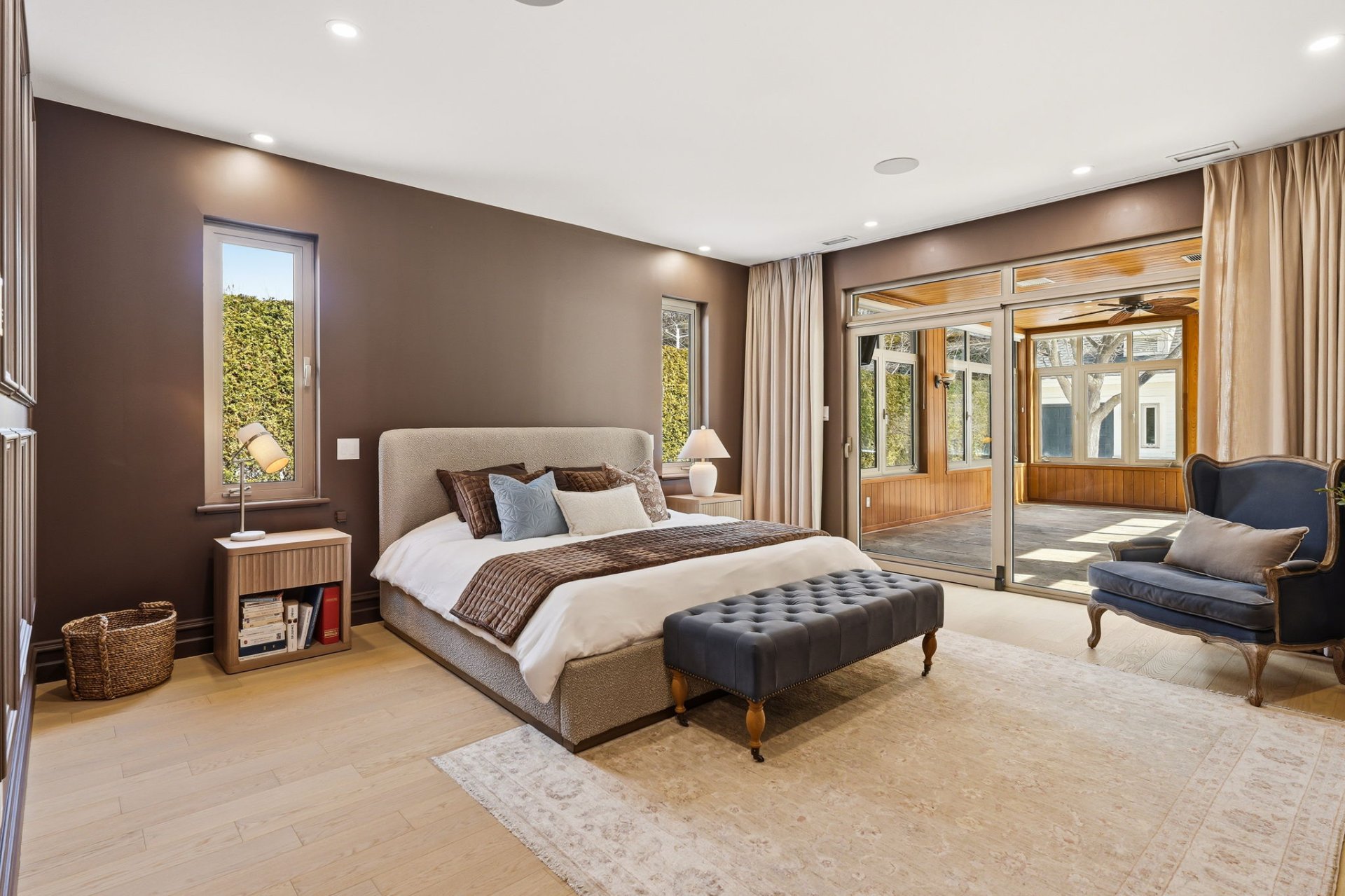 La suite principale, située au rez-de-chaussée, se distingue par son caractère intime et luxueux. Elle bénéficie d'un accès direct à la véranda, d'une somptueuse salle de bains attenante ainsi que de deux walk-in spacieux, offrant un confort digne des plus grandes résidences.