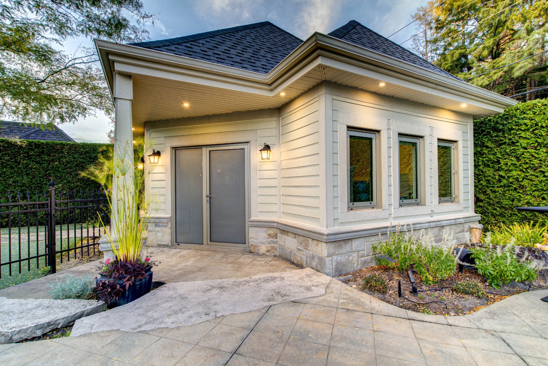 À l'extérieur, le terrain soigneusement aménagé garantit intimité et sérénité. La cour arrière accueille une piscine creusée ainsi qu'un remarquable pool house entièrement aménagé, comprenant une cuisine, une salle à manger, une salle d'eau et même un garage, offrant un espace idéal pour recevoir avec élégance.