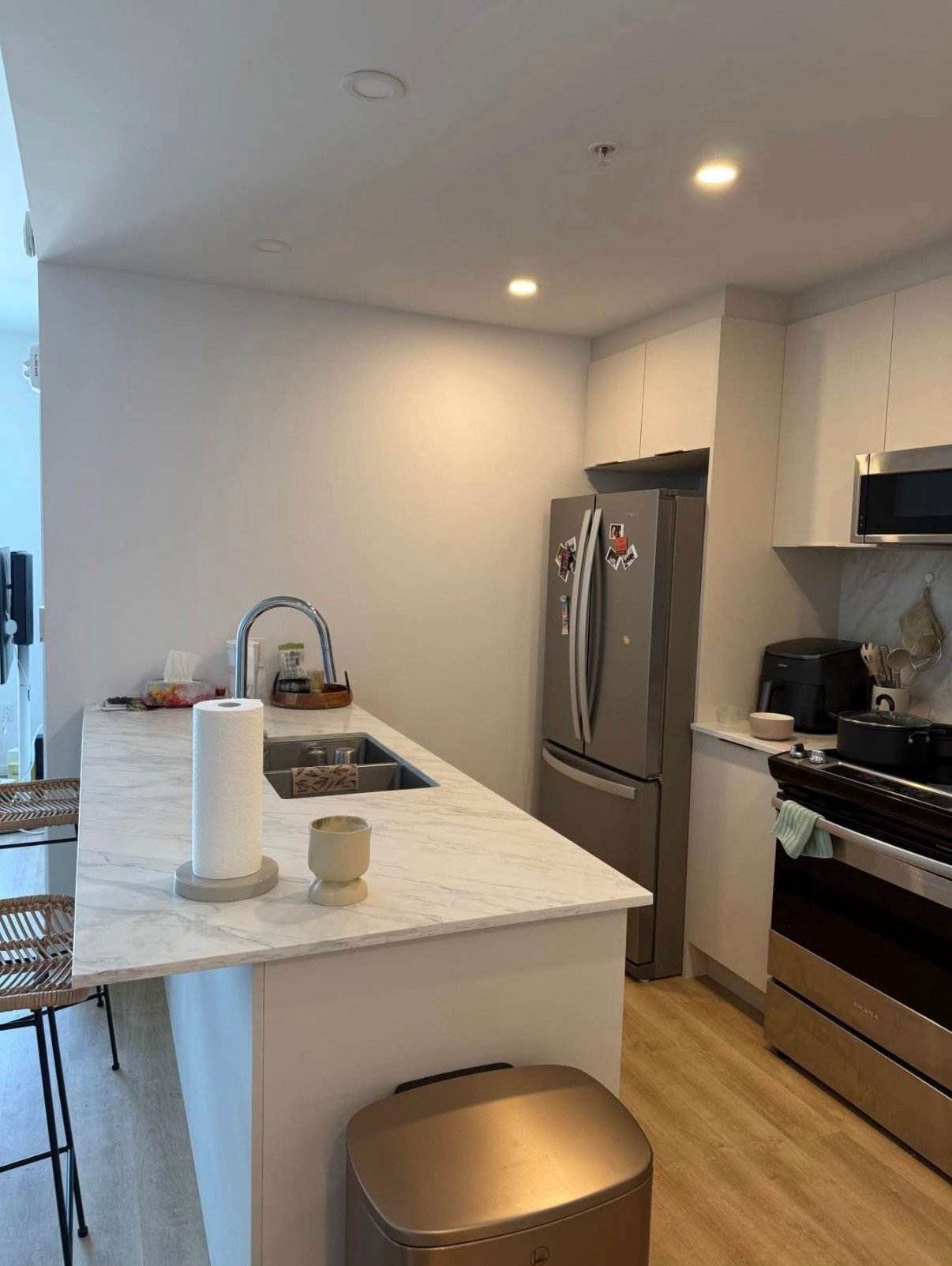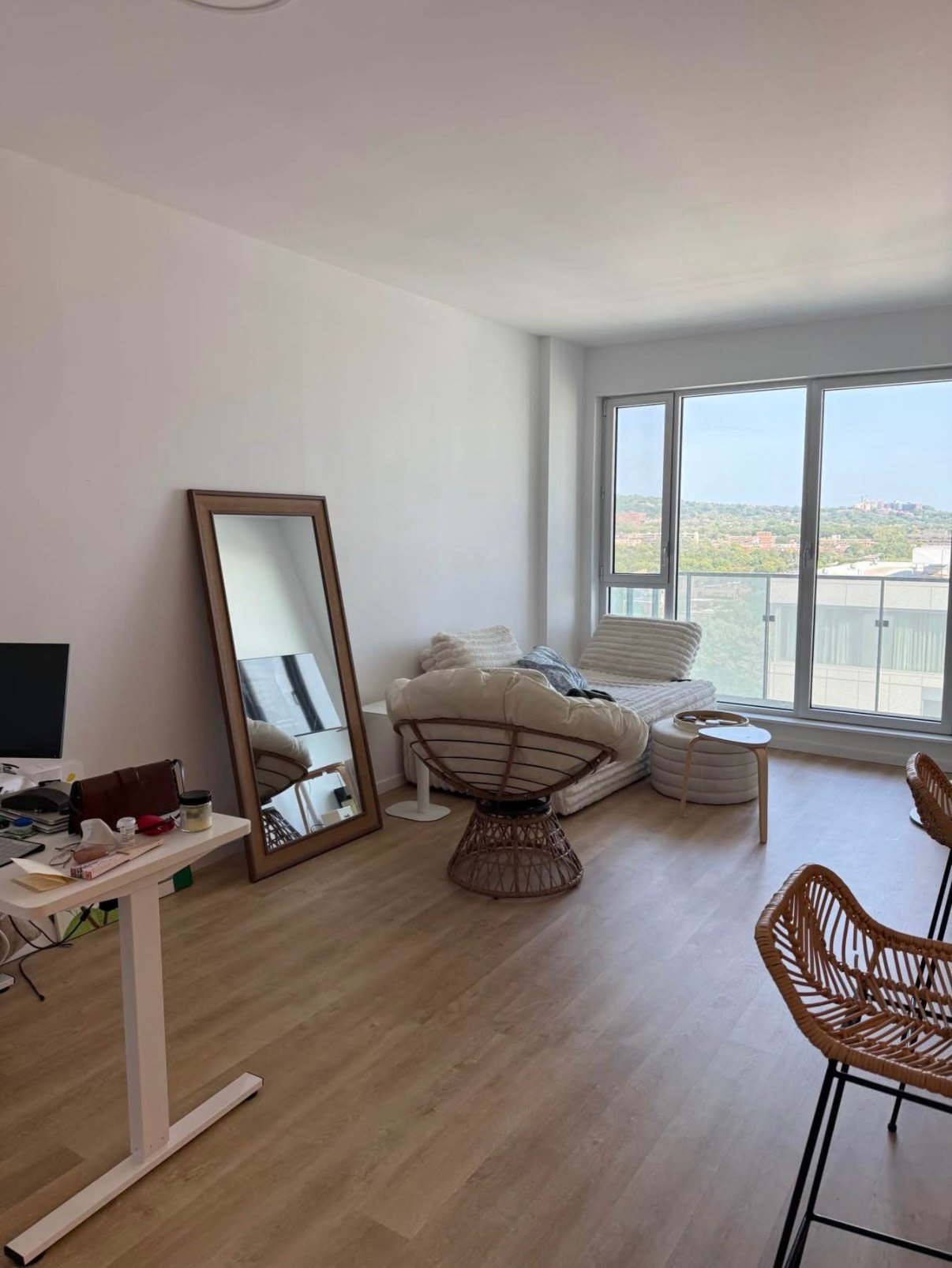 Cession de bail jusqu'au 1er avril 2026. Superbe condo à 8 minutes de marche du métro Namur, près d'un parc, d'une épicerie, d'un Starbucks et de plusieurs commerces. L'unité offre une grande chambre fermée, un vaste den et un balcon privé. Électroménagers inclus, dont laveuse-sécheuse, ainsi que le WiFi. Immeuble sécuritaire avec stationnement disponible, gym, sauna, lounge pour résidents et grande terrasse commune avec BBQ. Idéal pour un mode de vie pratique et urbain.