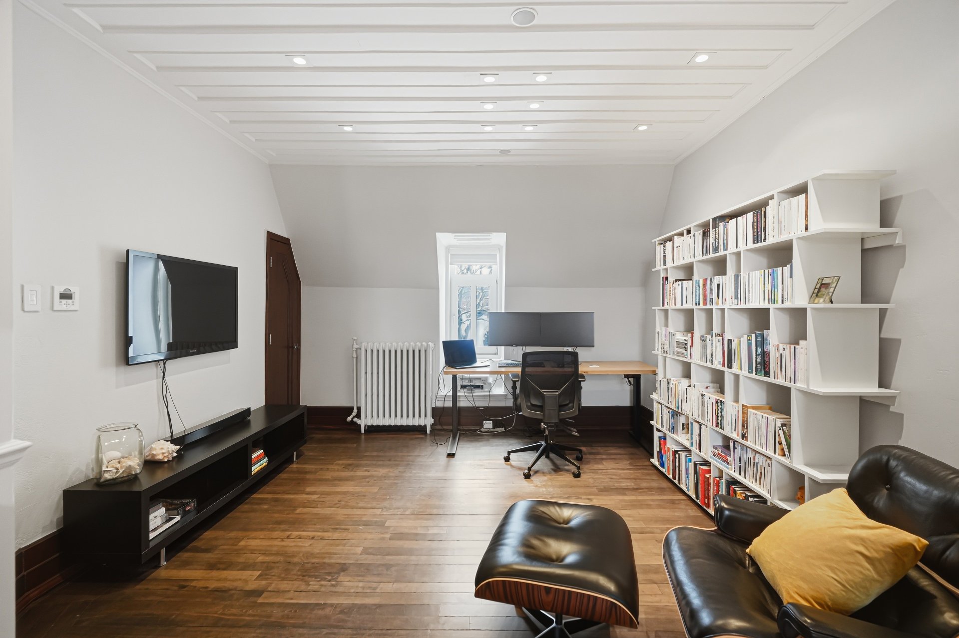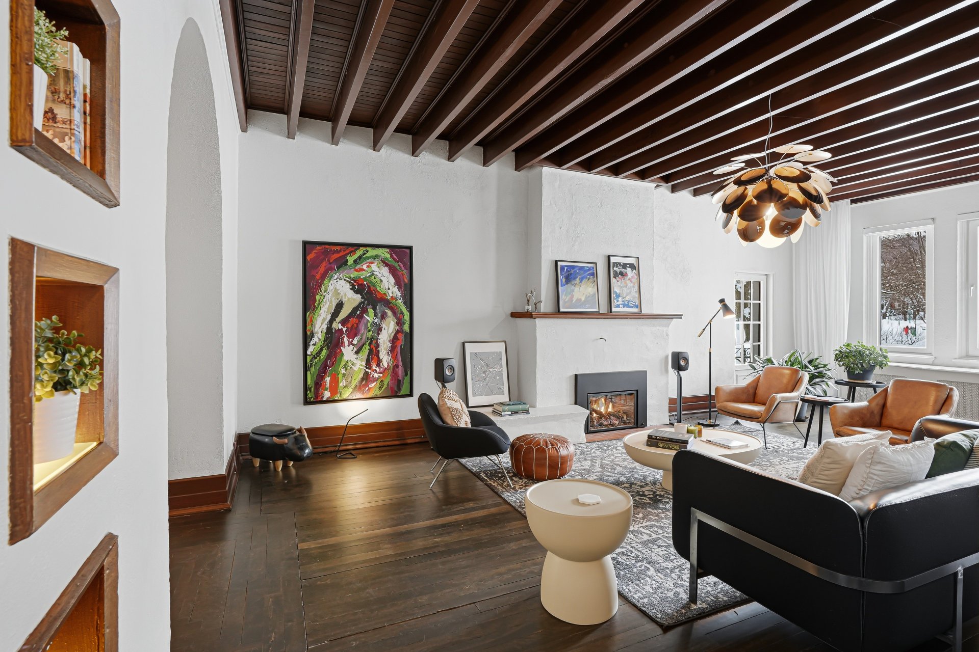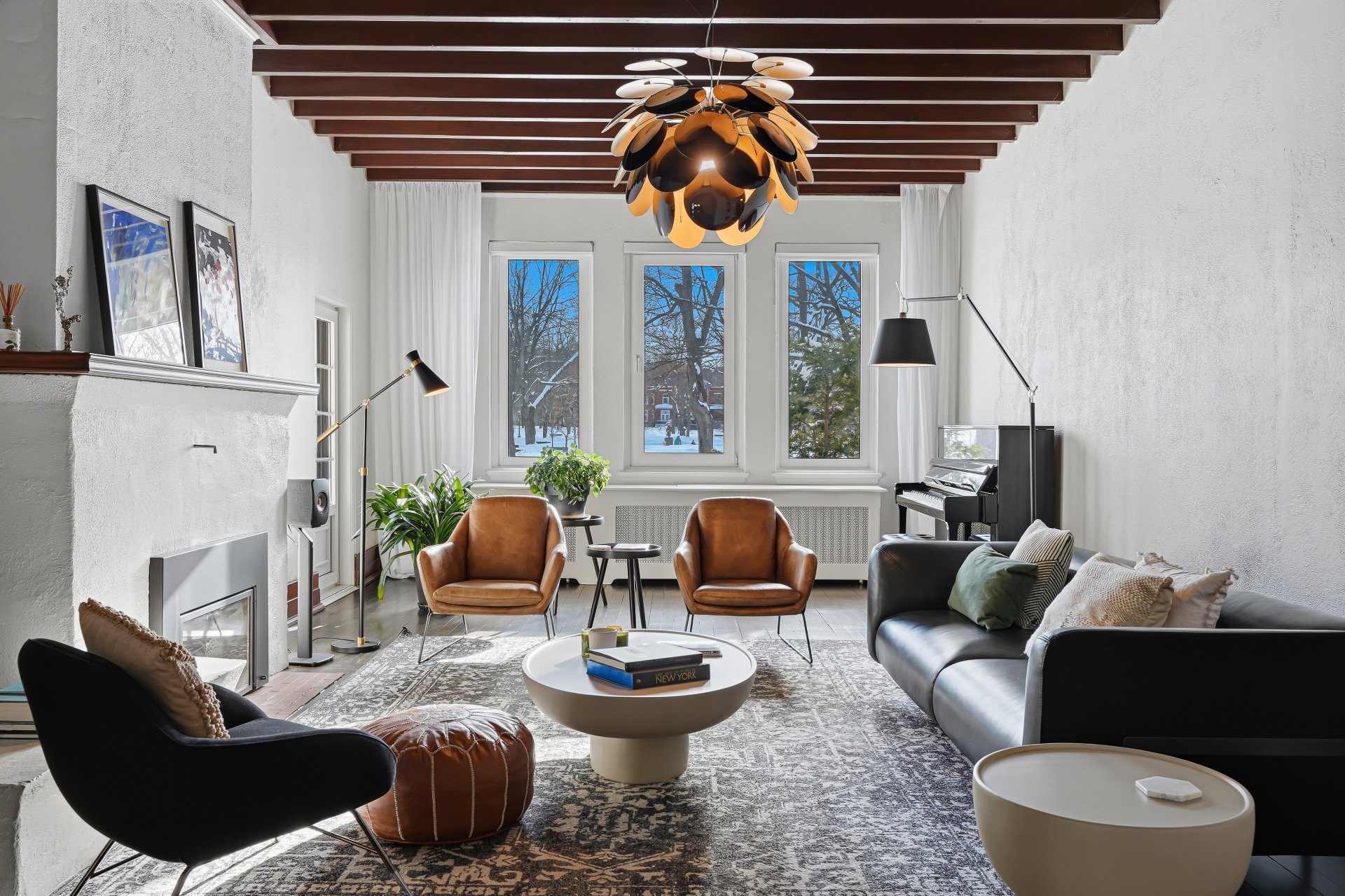 + Salon avant avec magnifique foyer, poutres exposées & vue sur le Parc Outremont
