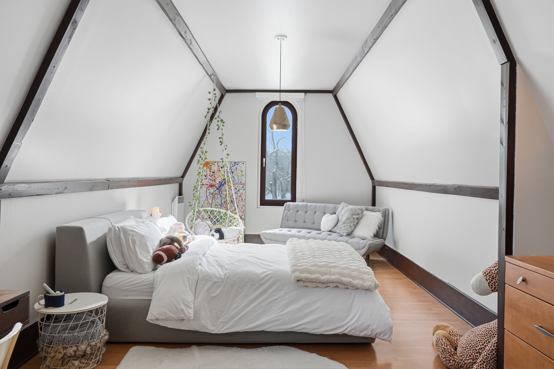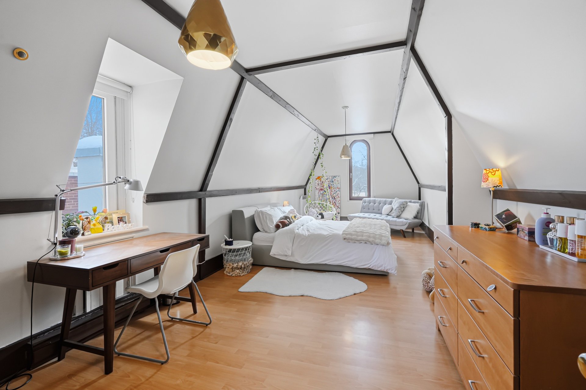 Résidence iconique face au Parc Outremont, ses arbres et sa fontaine, la Maison Aristide Beaugrand-Champagne: un véritable joyau du patrimoine architectural de la ville. Inspirée de l'architecture rurale française, elle se distingue par son pignon élancé, son entrée abritée sous arcade et son stuc blanc, constituant l'unique exemple de ce style à Outremont. Les volumes s'affirment avec grâce; des espaces généreux et baignés de lumière où planchers de bois, poutres exposées et foyer se côtoient avec une élégance naturelle. Une résidence de prestige, près des restaurants de Laurier et Bernard, à deux pas du Théâtre : un art de vivre intemporel.