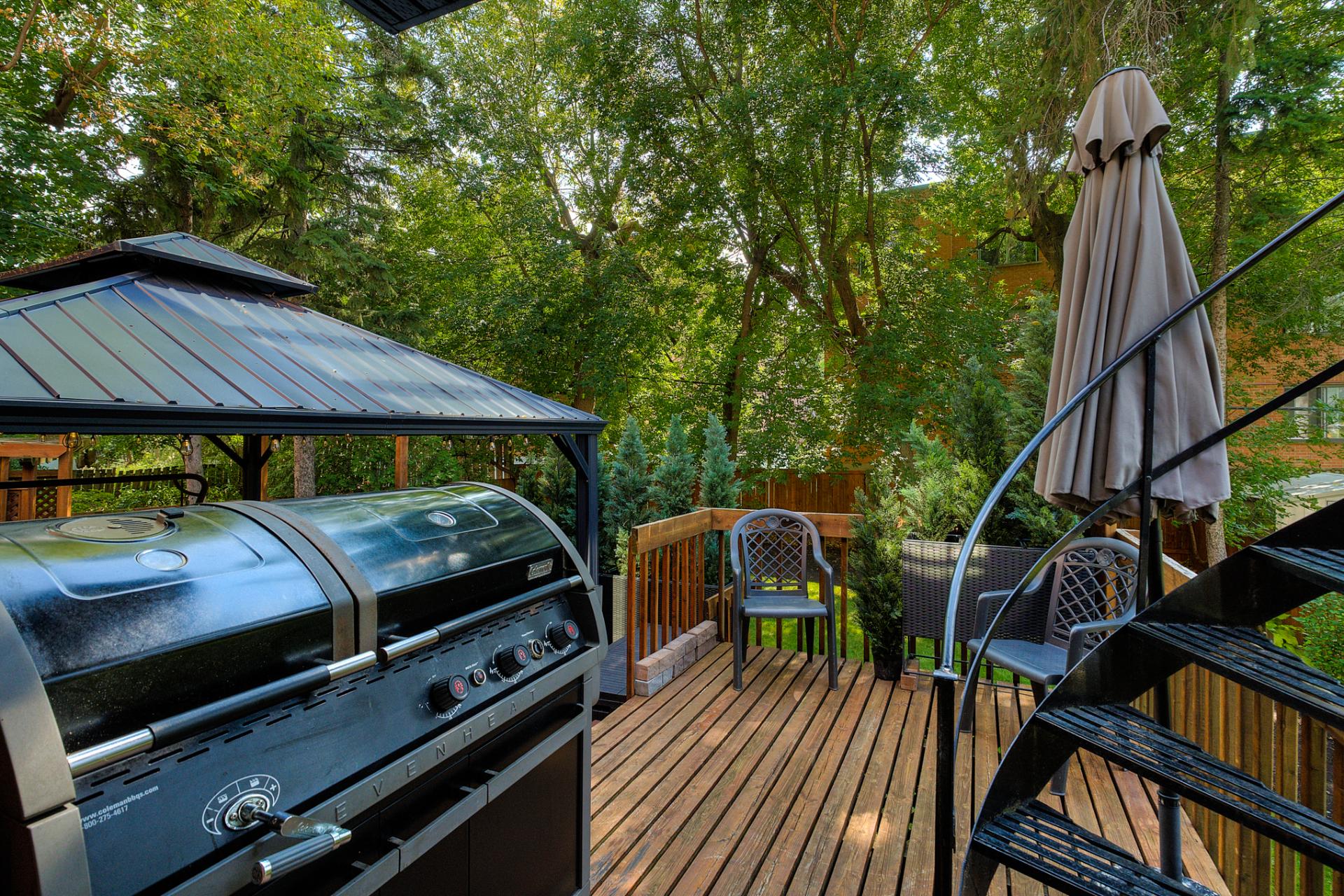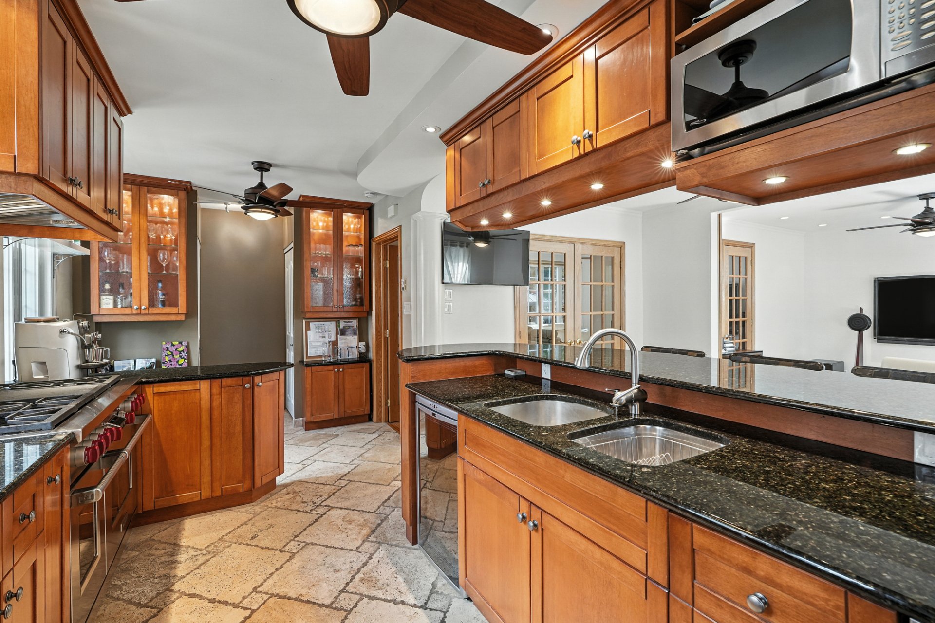 - Cuisinière au gaz Wolf de 48 pouces, réfrigérateur, four à microondes, laveuse, sécheuse, luminaires, habillages de fenêtres, unité murale et télévision dans le bureau du rez-de-chaussée, télévision dans le salon, système de sécurité, système d'irrigation, tous les hautparleurs muraux, pavillon, balançoire, cave à vin (non fonctionnelle). Réfrigérateur, cuisinière et microonde dans la cuisine du sous-sol.