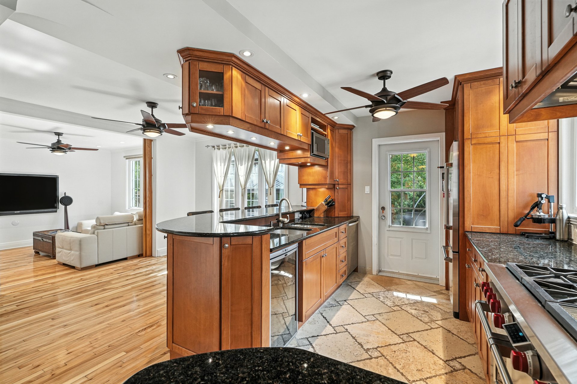Cette maison spacieuse offre des finitions haut de gamme et un souci du détail exceptionnel partout. La cuisine gourmande dispose d'armoires en merisier sur mesure et d'un grand comptoir pour quatre, idéal pour recevoir ou la vie quotidienne. La chambre principale comprend un bureau/den et une salle de bain attenante, tandis que des divisions bien pensées et de grandes chambres assurent confort et intimité pour toute la famille. À l'extérieur, profitez d'une vaste cour avec arbres matures, système d'irrigation et d'une terrasse sereine et accueillante. Véritablement entretenue avec soin. À quelques pas de tout ce que le Village Monkland offre