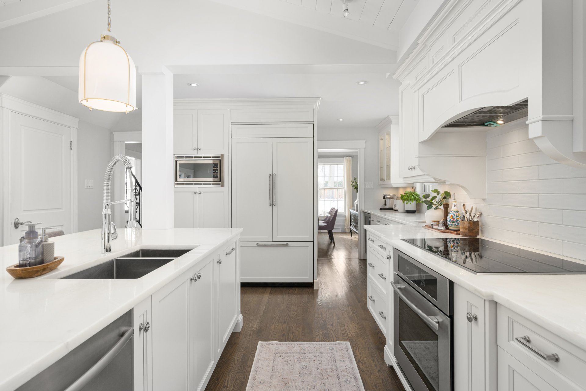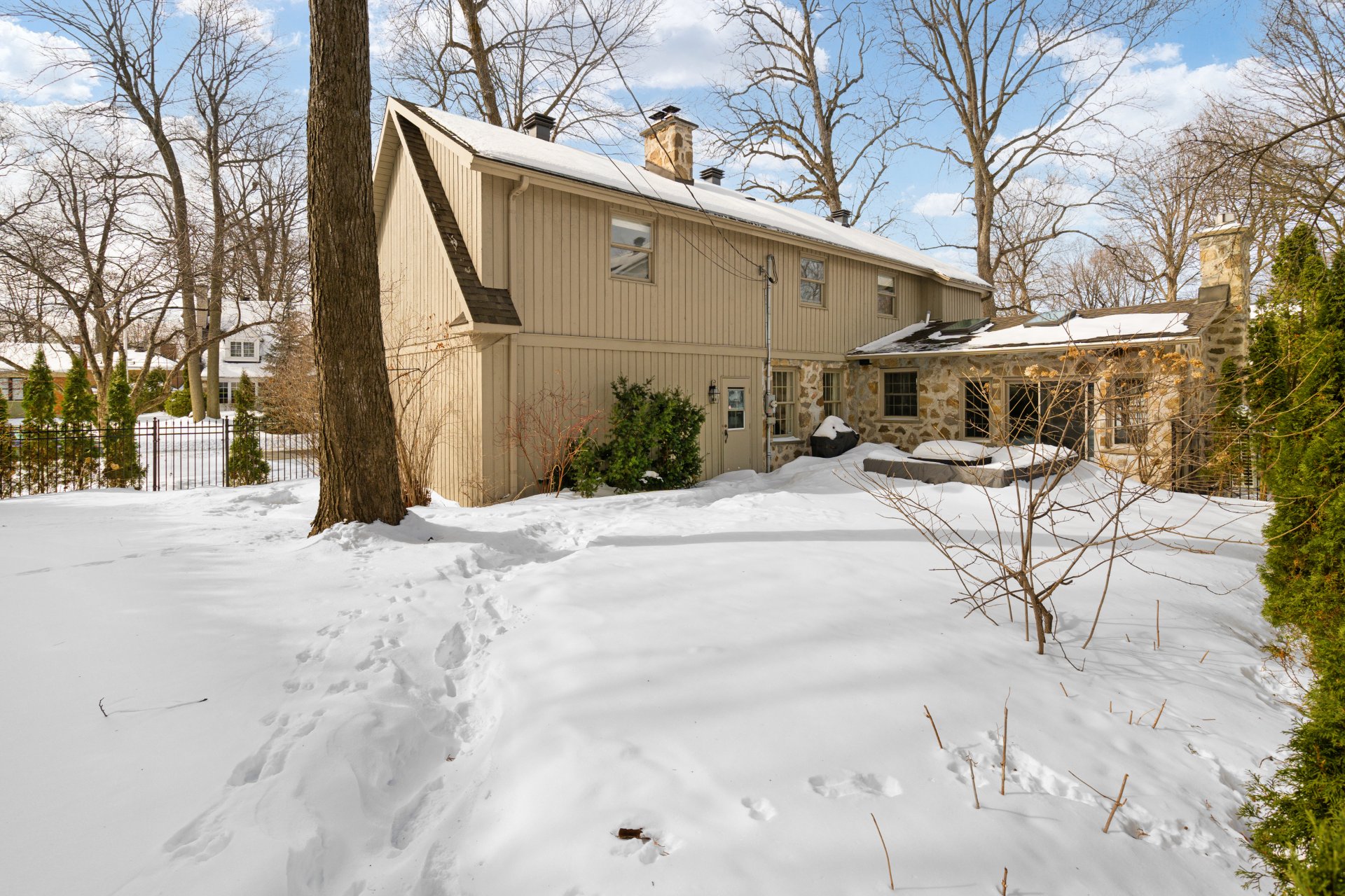 Située sur un terrain d'angle magnifiquement aménagé dans le secteur recherché de Sherwood à Beaconsfield, cette résidence de style Canadiana bien entretenue offre un équilibre raffiné entre charme classique et améliorations modernes soignées. Comptant quatre chambres à coucher ainsi que deux salles de bains et une salle d'eau, la propriété propose une configuration fonctionnelle idéale pour la vie familiale. Les principales pièces de vie sont lumineuses et accueillantes, agrémentées de deux foyers, l'un au bois et l'autre au gaz, qui apportent chaleur et caractère. La cuisine rénovée par un designer se distingue par ses comptoirs en marbre, son grand îlot central, ses armoires sur mesure et ses électroménagers inclus. Les salles de bains ont été mises au goût du jour, dont une salle de bains attenante avec douche vitrée, et les planchers chauffants dans les deux salles de bains à l'étage ajoutent un confort appréciable. La chambre principale se démarque par ses deux garde robes de type walk in, offrant un espace de rangement généreux.