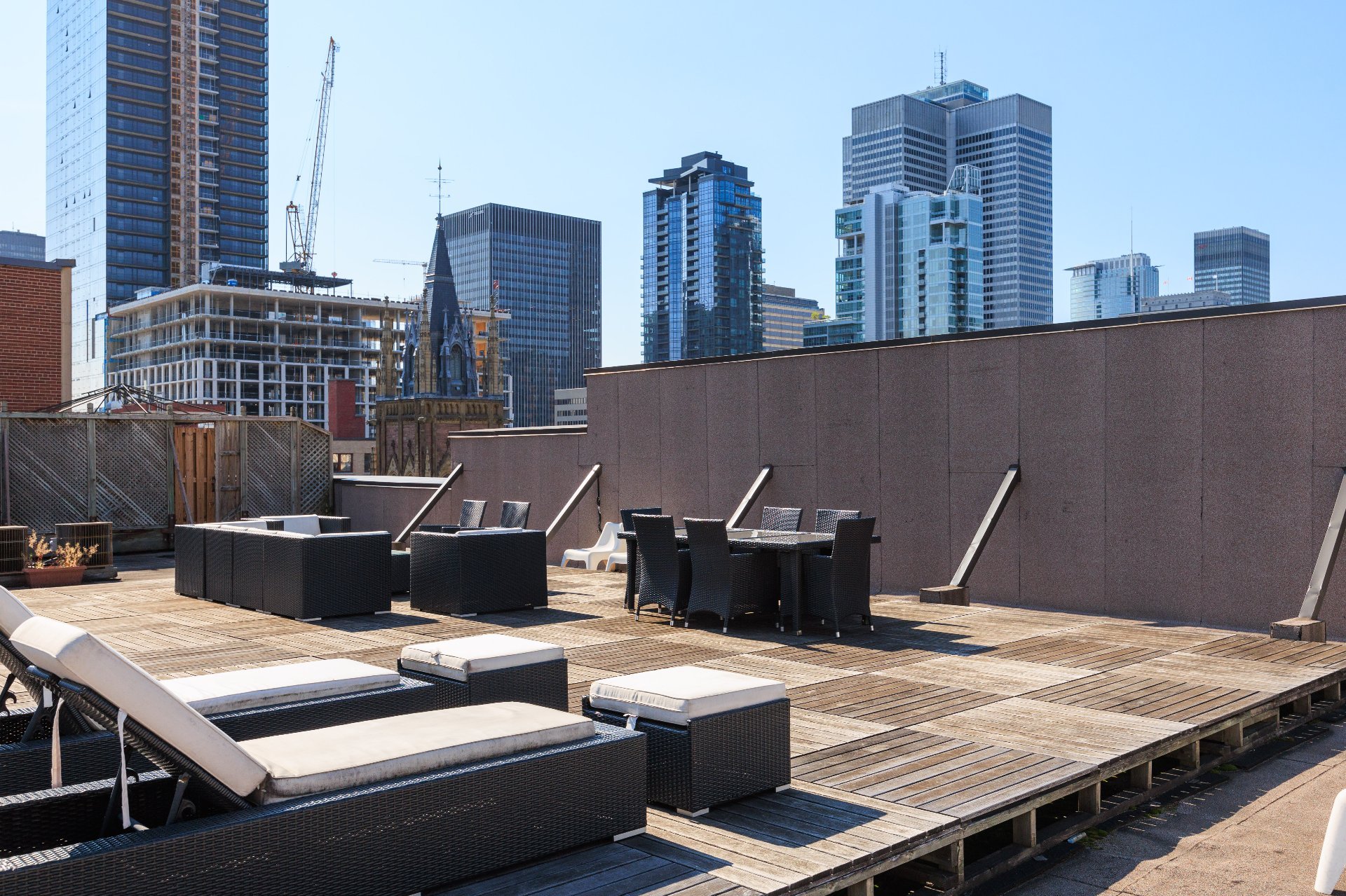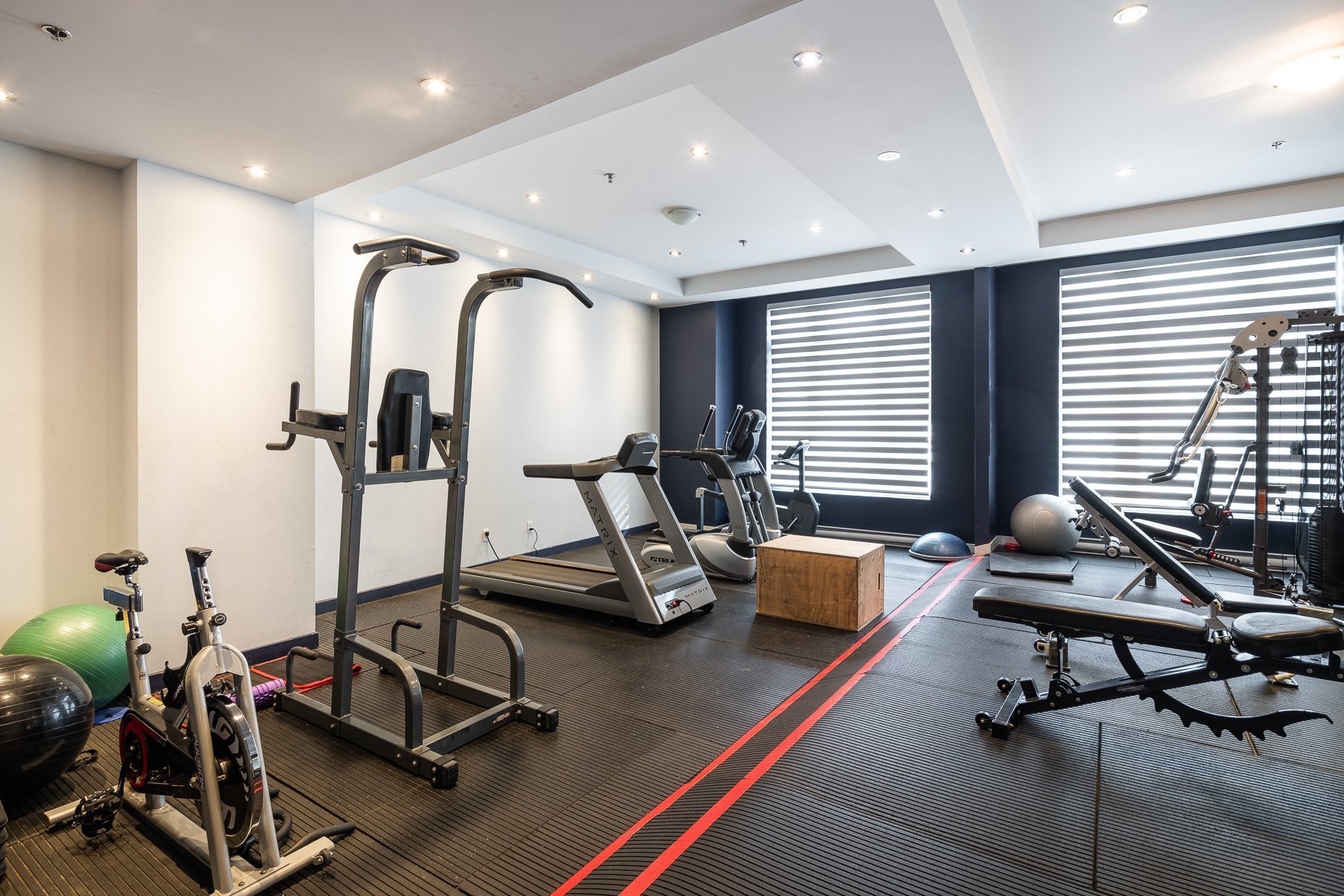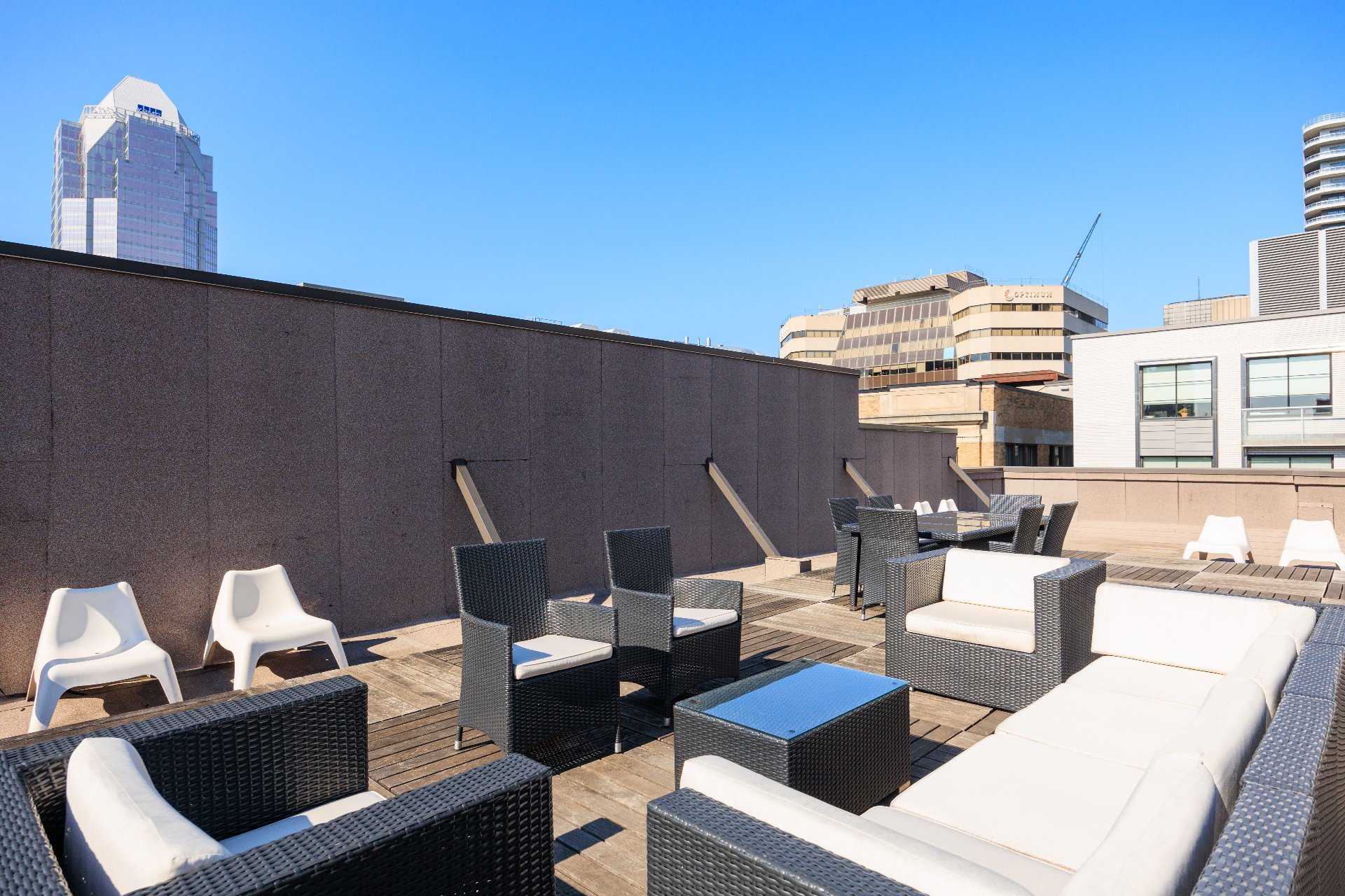 Les espaces communs comprennent une magnifique terrasse sur le toit avec vues panoramiques sur la ville, une salle de sport bien équipée et un service de sécurité en soirée.