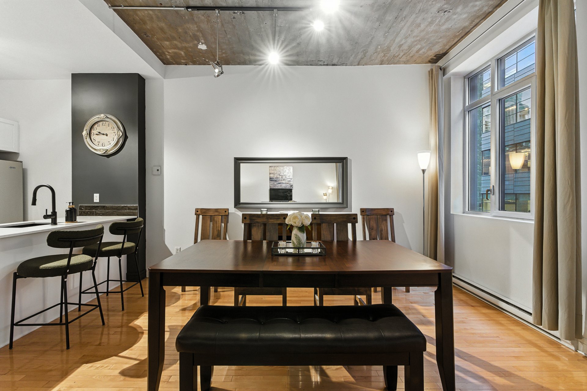 Nichée au coeur du Vieux-Montréal historique, cette élégante copropriété d'une chambre et une salle de bains incarne l'art de vivre urbain avec raffinement. Son style loft unique marie à la perfection design contemporain et cachet industriel, créant une atmosphère chaleureuse et distinctive.
