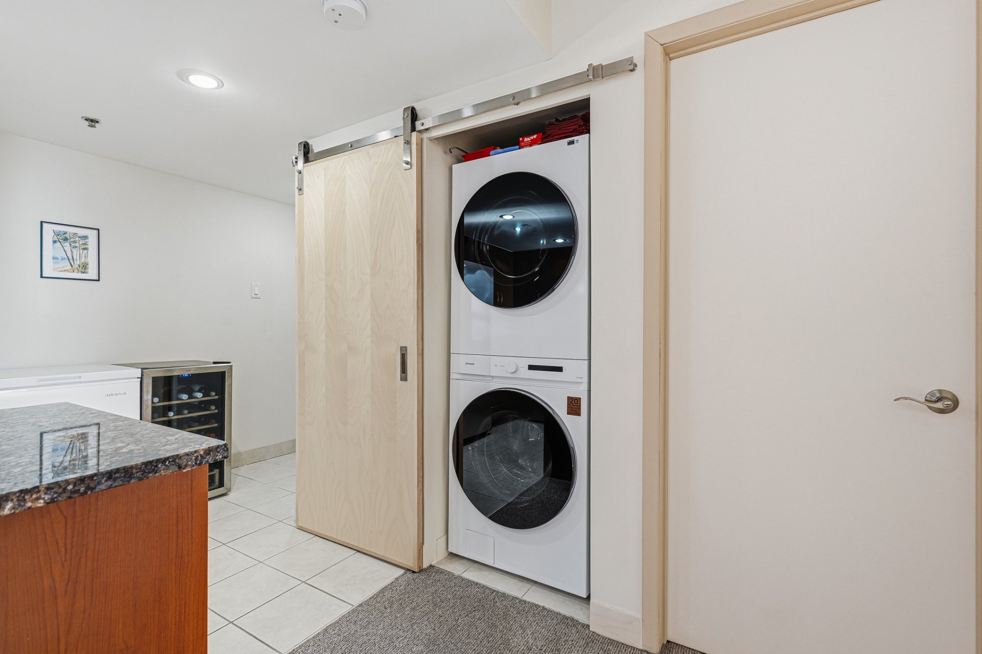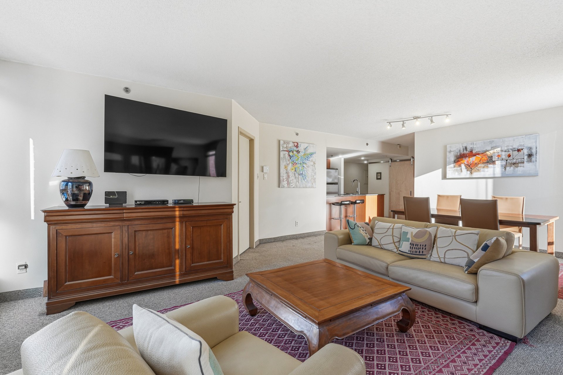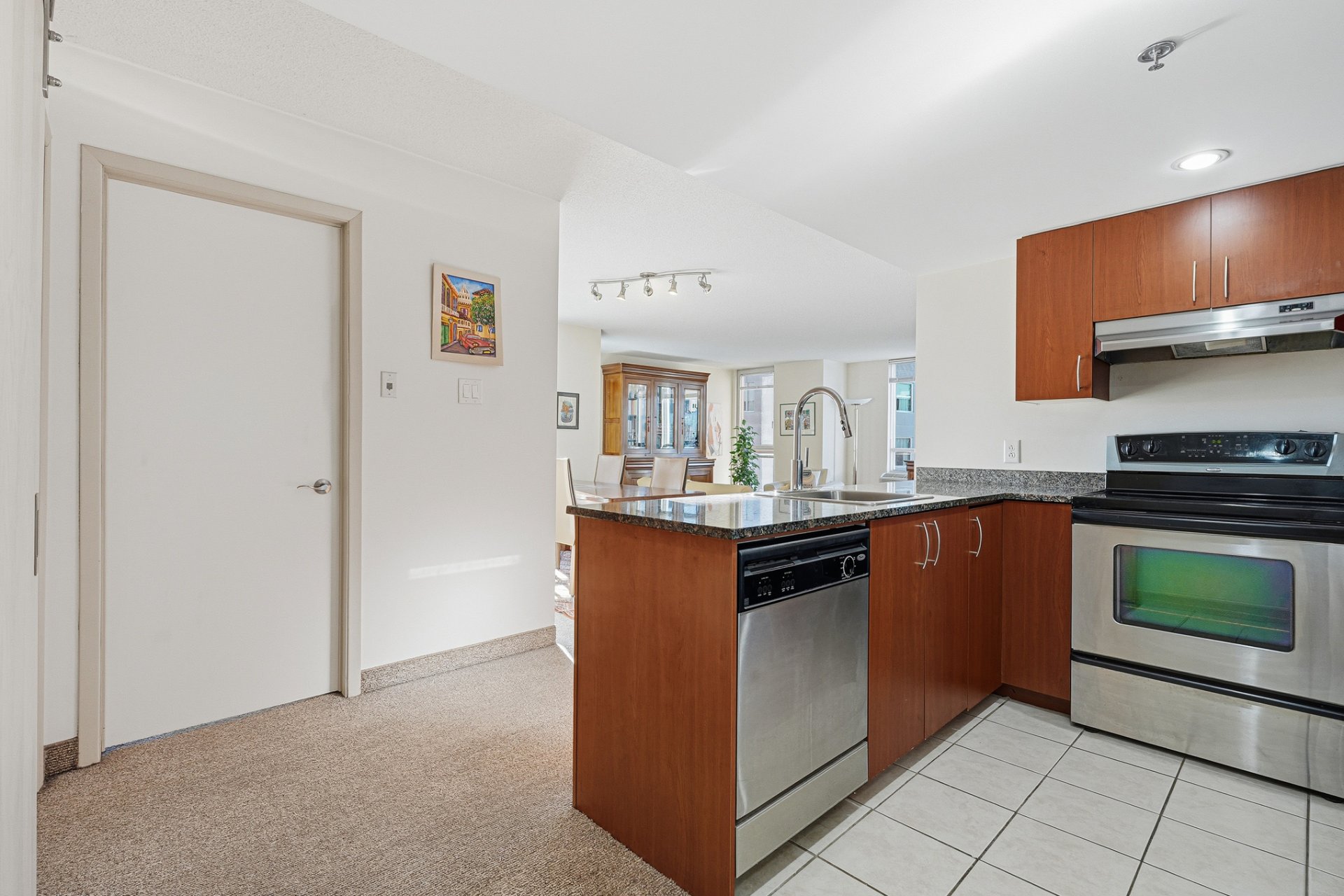 - Réfrigérateur, cuisinière, lave-vaisselle, laveuse, sécheuse, télévision au salon, support de télévision au salon, stores, luminaires.
