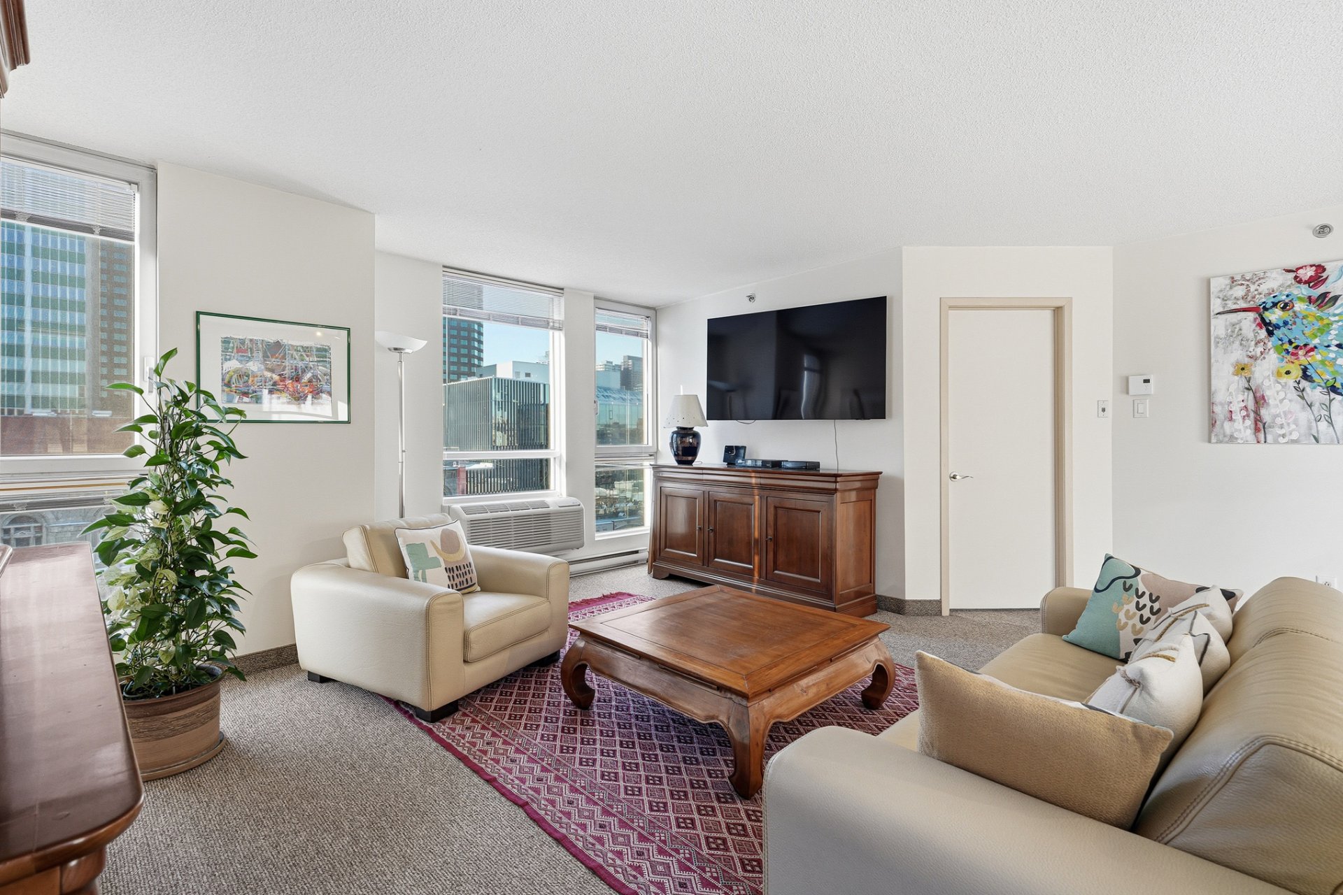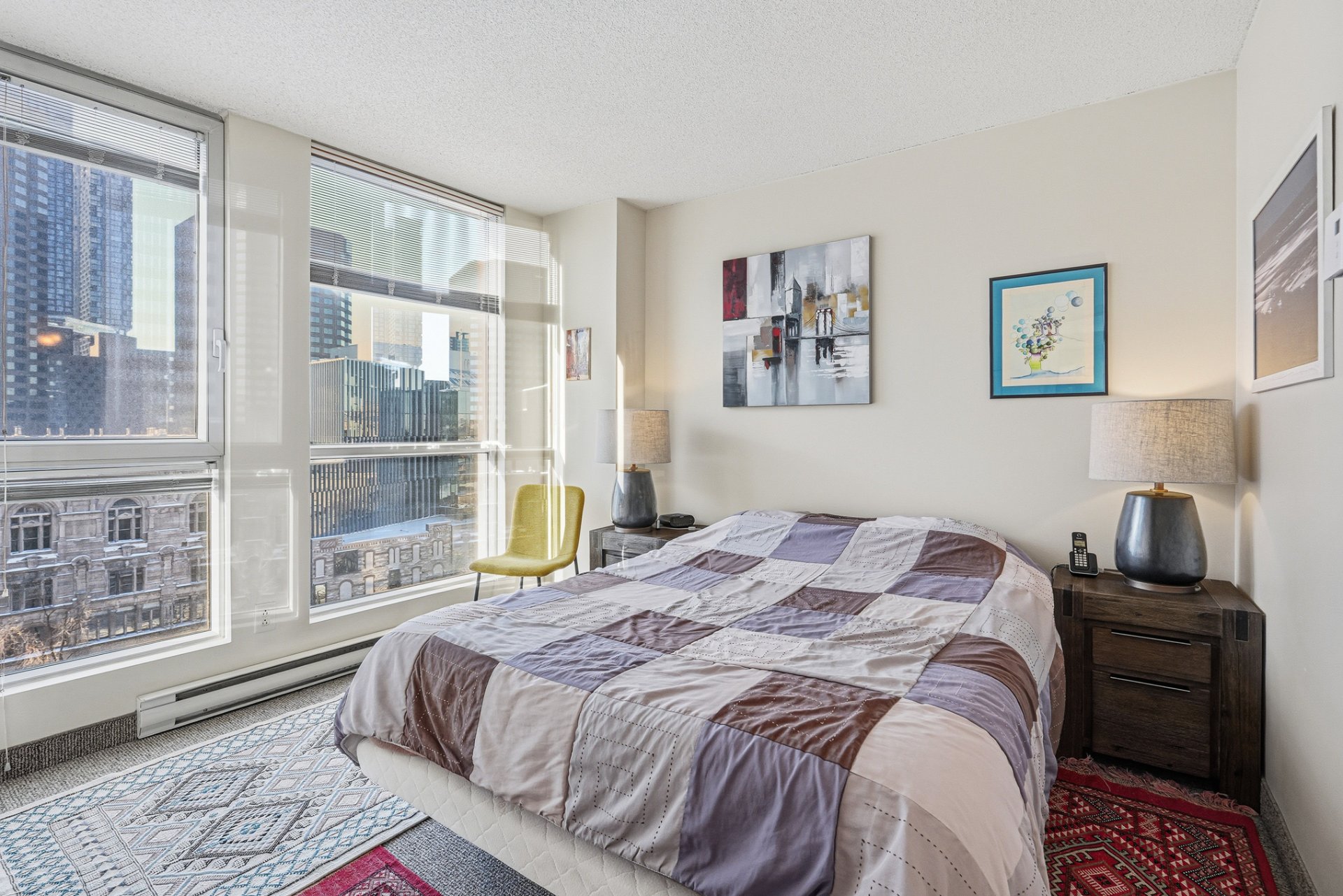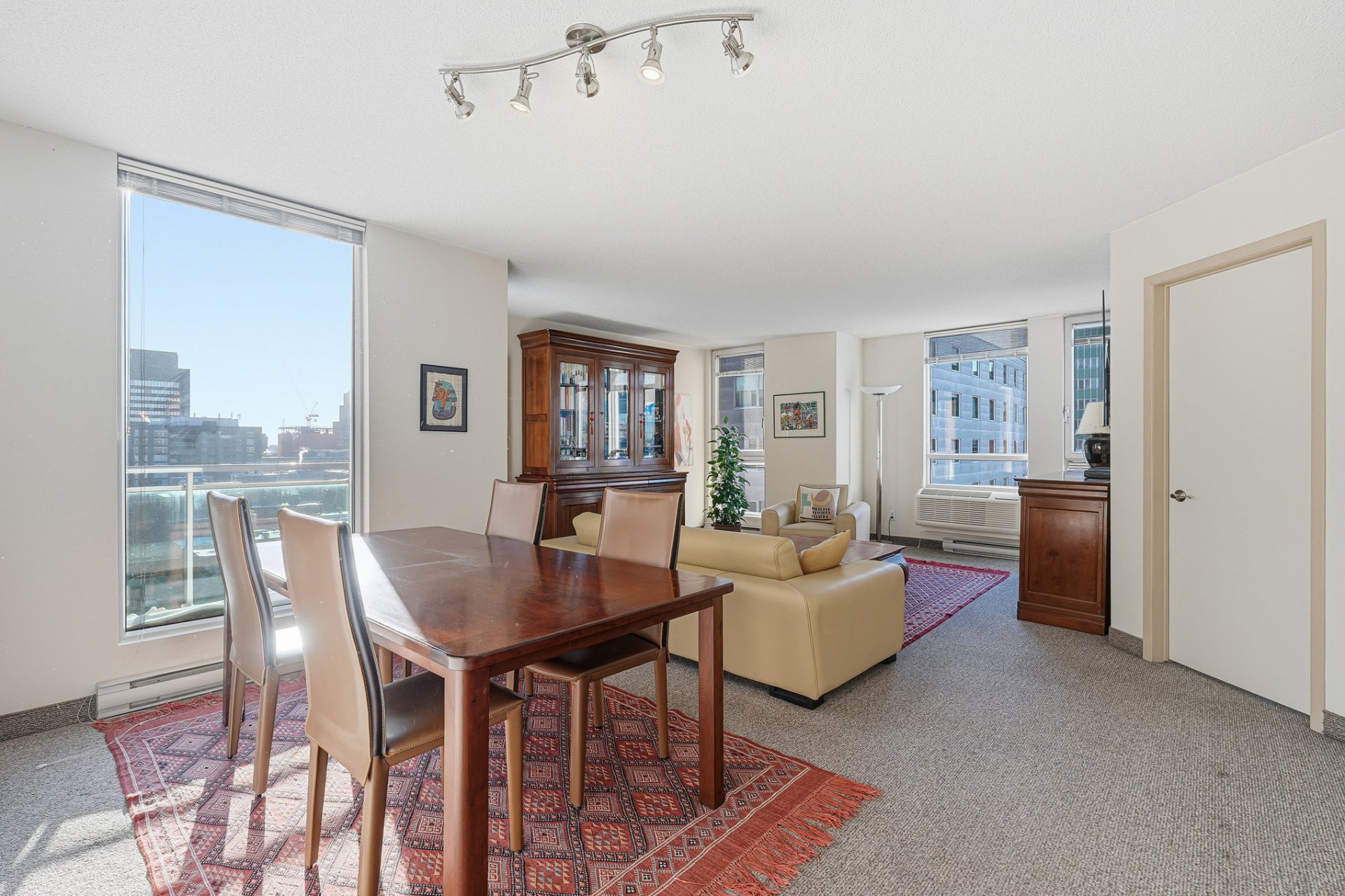 Spacieux Penthouse de coin au coeur du centre-ville de Montréal, offrant deux chambres et deux salles de bain. L'aire ouverte, généreusement aménagée, bénéficie d'une fenestration abondante qui inonde l'unité de lumière naturelle. Le salon et la salle à manger offrent un cadre confortable avec de belles vues sur la ville, tandis qu'un balcon privé prolonge l'espace intérieur. L'unité comprend également une place de stationnement intérieur et un espace de rangement, alliant confort et praticité en plein centre-ville.