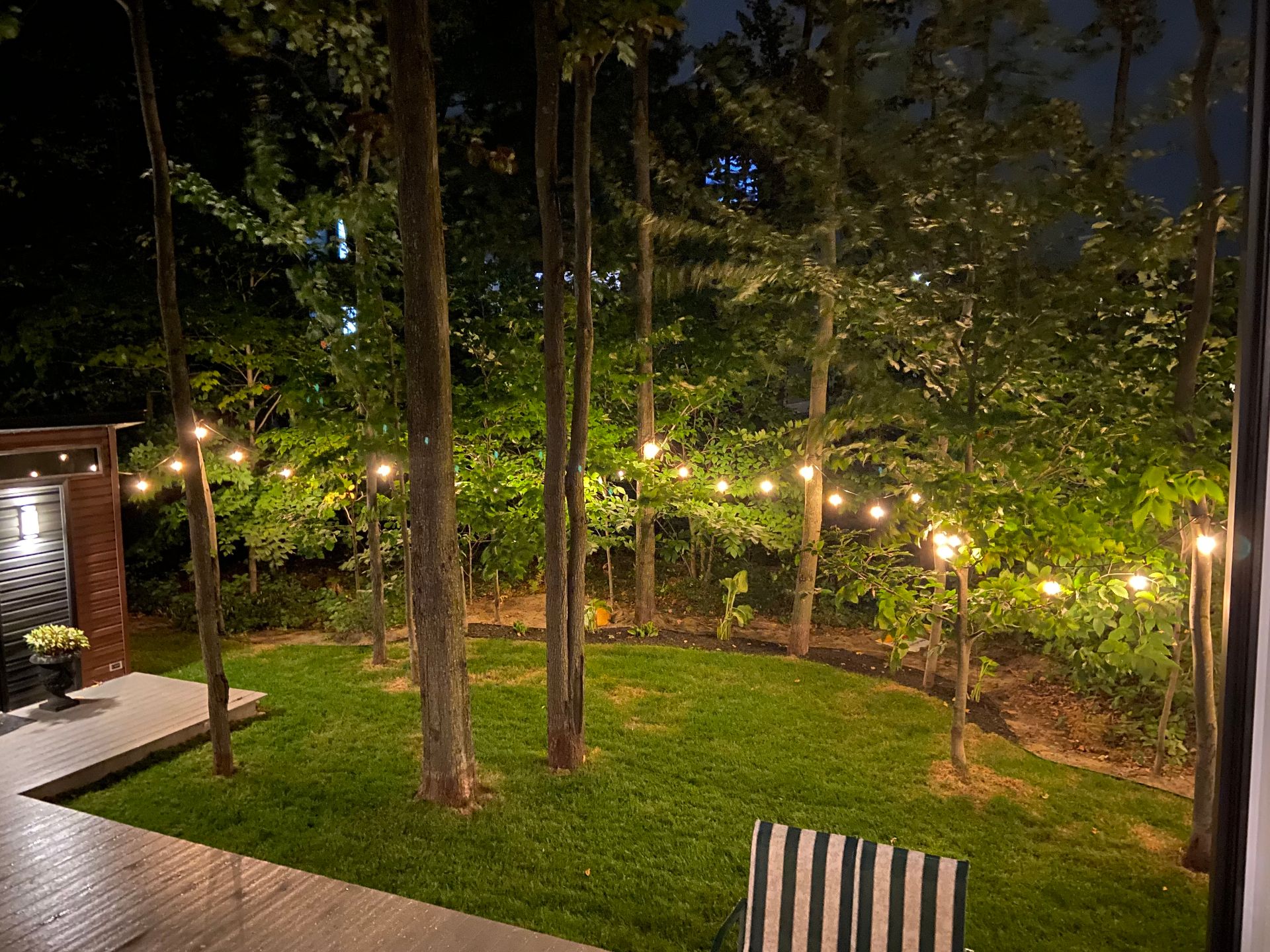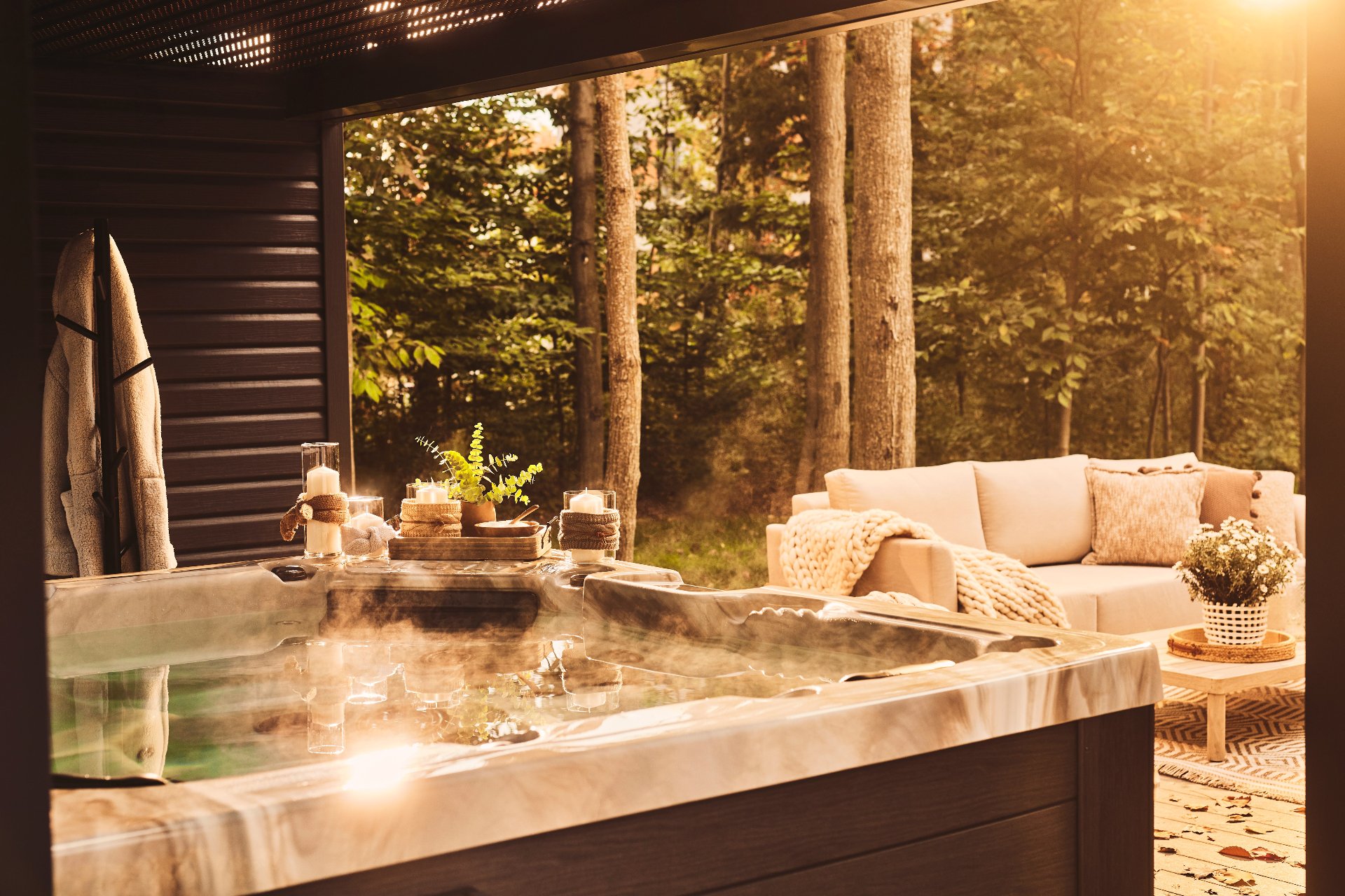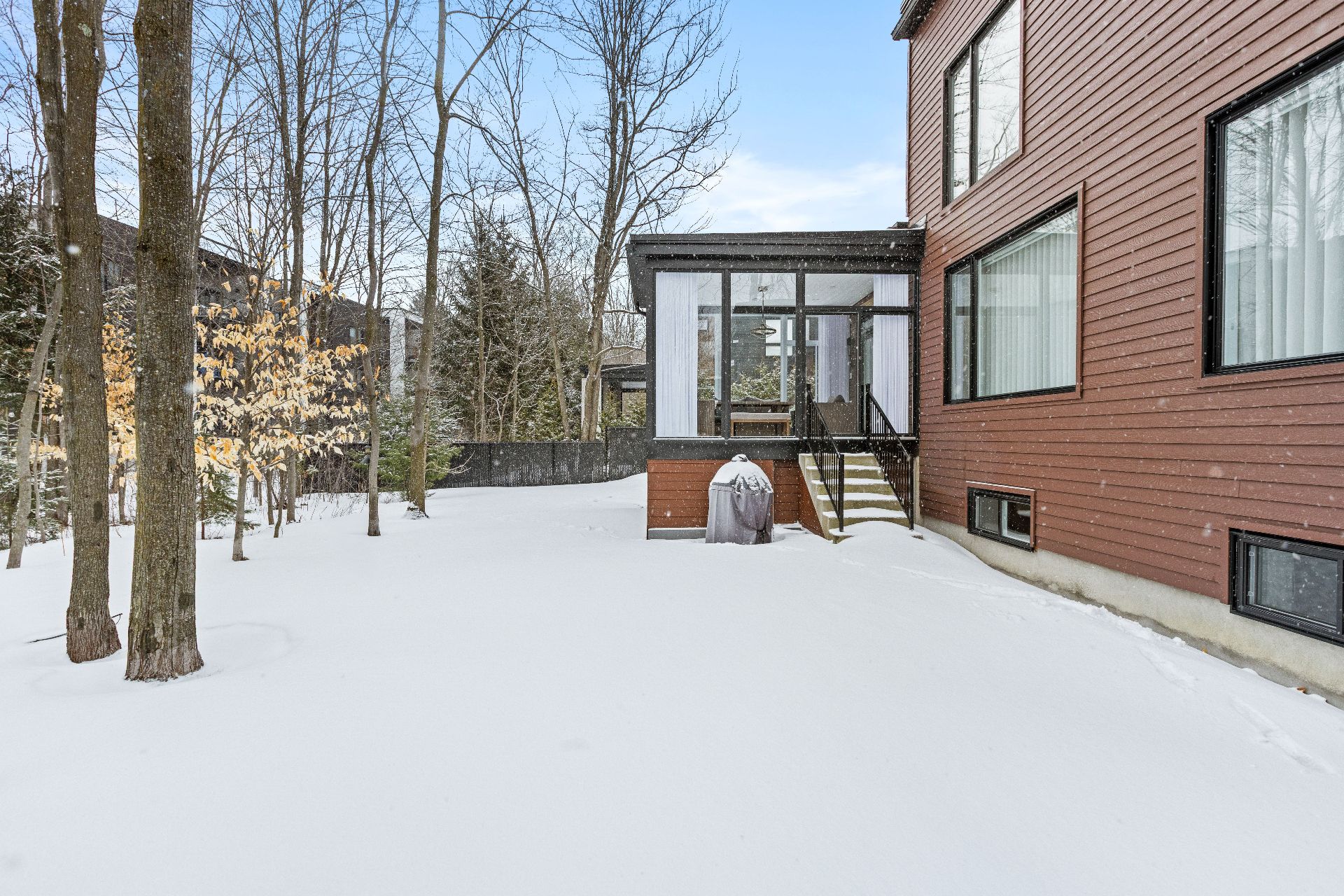 À l'extérieur, la cour intime, bordée d'arbres matures, se transforme en véritable oasis privée. La magnifique véranda 3 saisons devient un lieu de rassemblement privilégié pour les repas estivaux à l'abri des insectes, tandis que l'espace spa invite à la détente dans un environnement paisible et enveloppant.