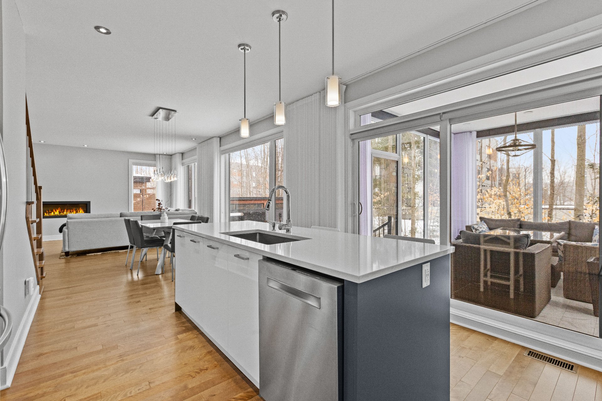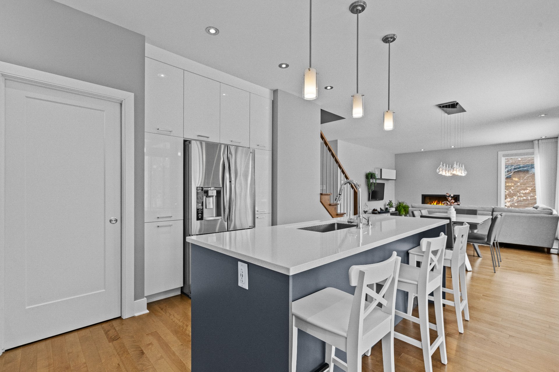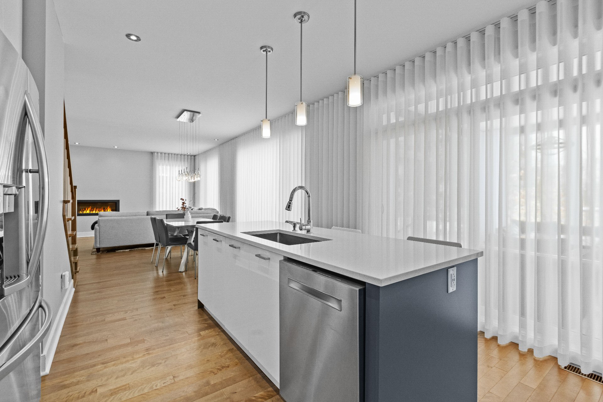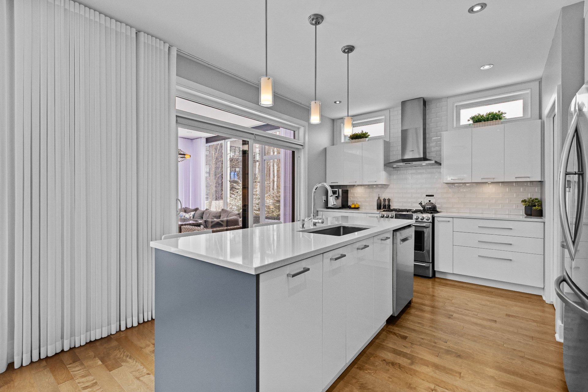 La cuisine, modernisée avec goût, propose un garde-manger walk-in, des comptoirs de quartz et un design épuré qui plaira aux amateurs de belles finitions. Un espace bureau baigné de lumière naturelle grâce à une fenestration abondante offre un cadre idéal pour le télétravail. Une salle d'eau élégante ainsi qu'un walk-in pratique au rez-de-chaussée viennent rehausser la fonctionnalité de l'ensemble. Une installation pour voiture électrique complète les commodités modernes de la propriété.