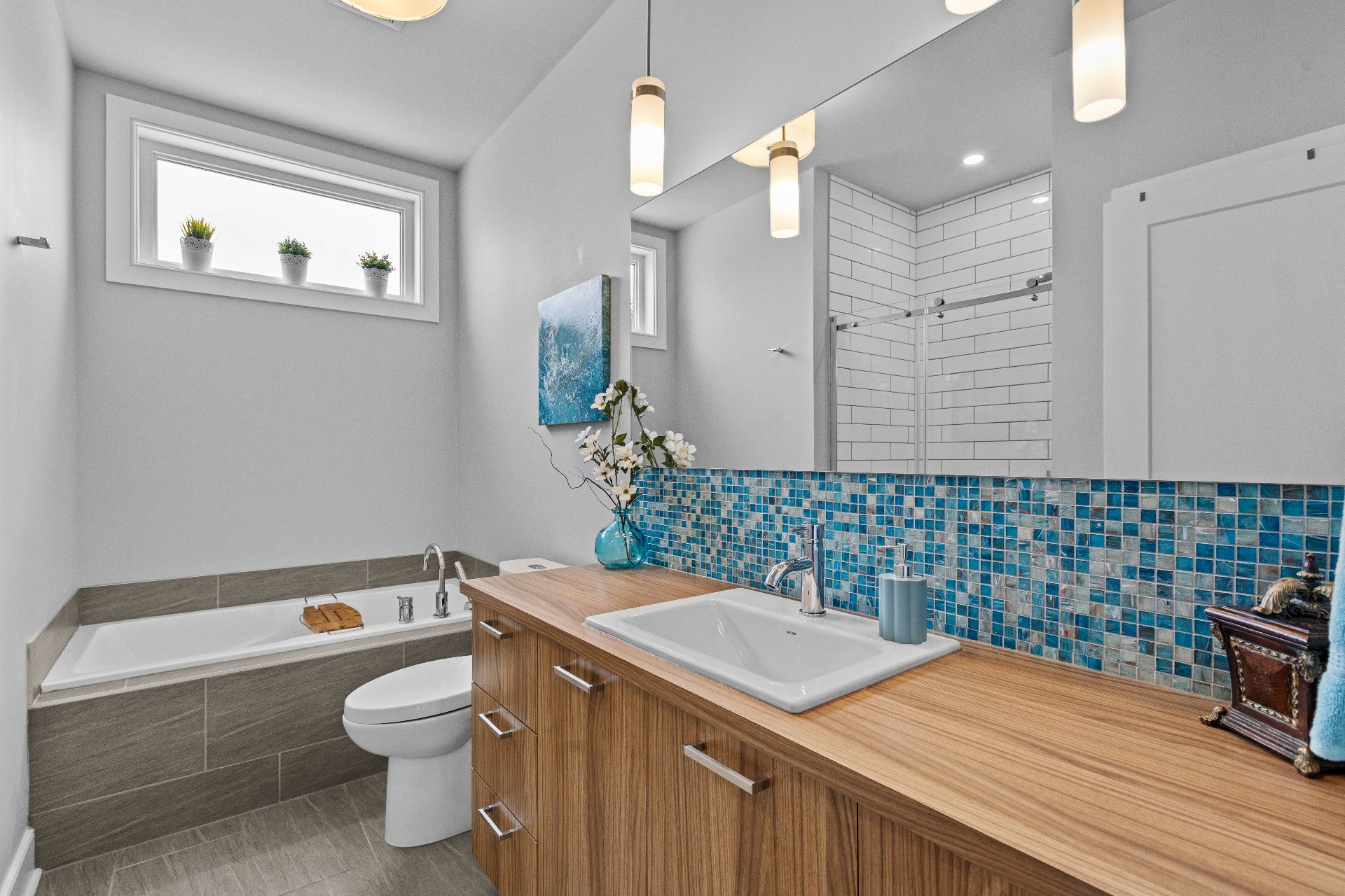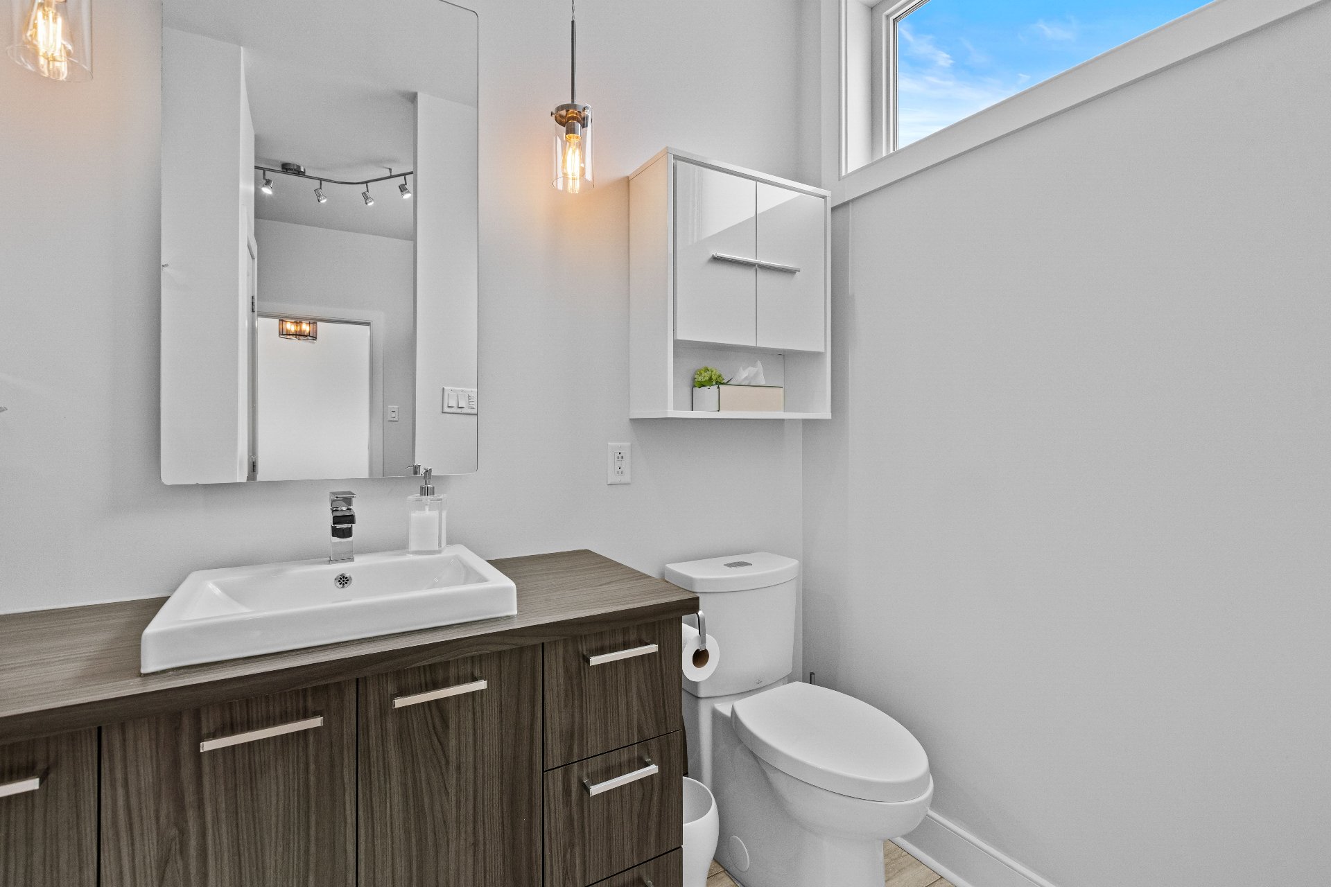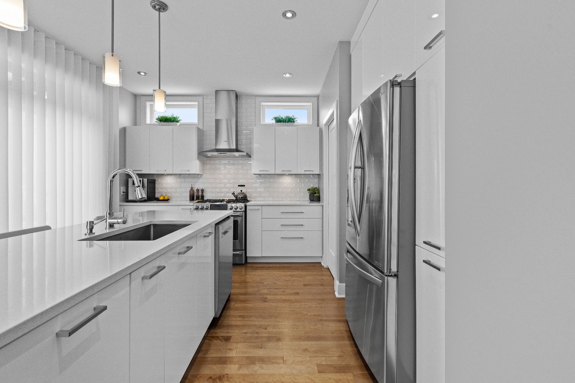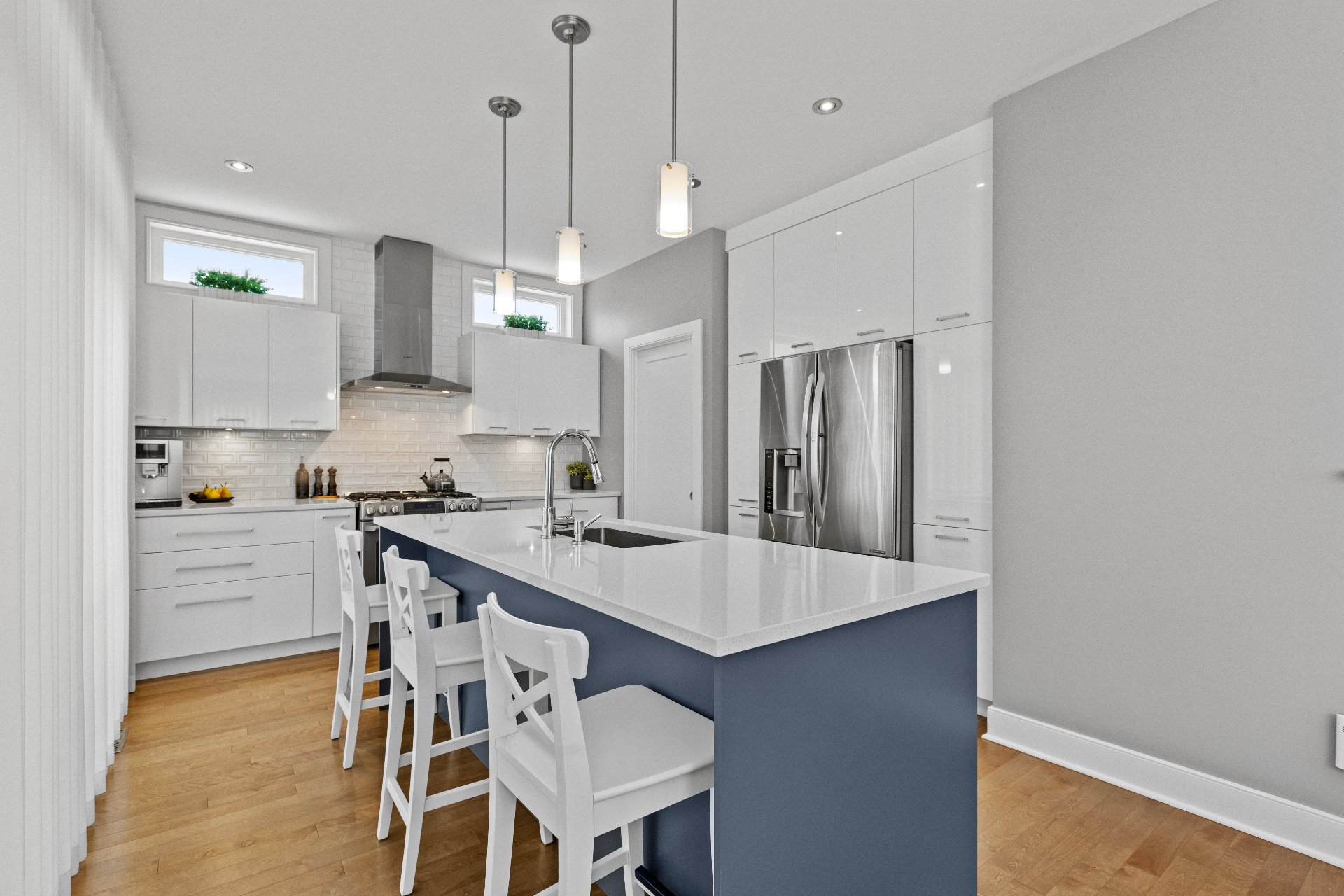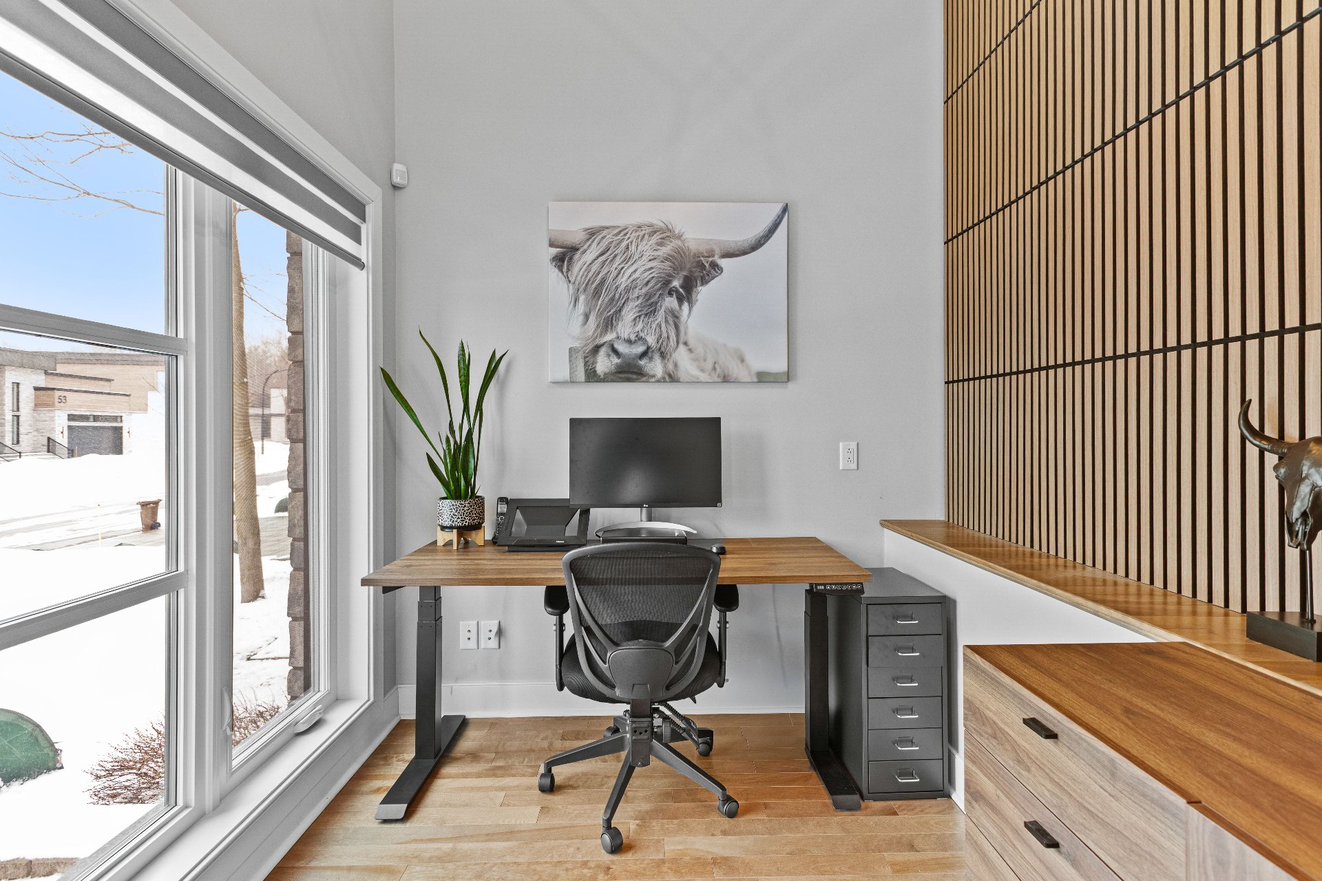 La cuisine, modernisée avec goût, propose un garde-manger walk-in, des comptoirs de quartz et un design épuré qui plaira aux amateurs de belles finitions. Un espace bureau baigné de lumière naturelle grâce à une fenestration abondante offre un cadre idéal pour le télétravail. Une salle d'eau élégante ainsi qu'un walk-in pratique au rez-de-chaussée viennent rehausser la fonctionnalité de l'ensemble. Une installation pour voiture électrique complète les commodités modernes de la propriété.