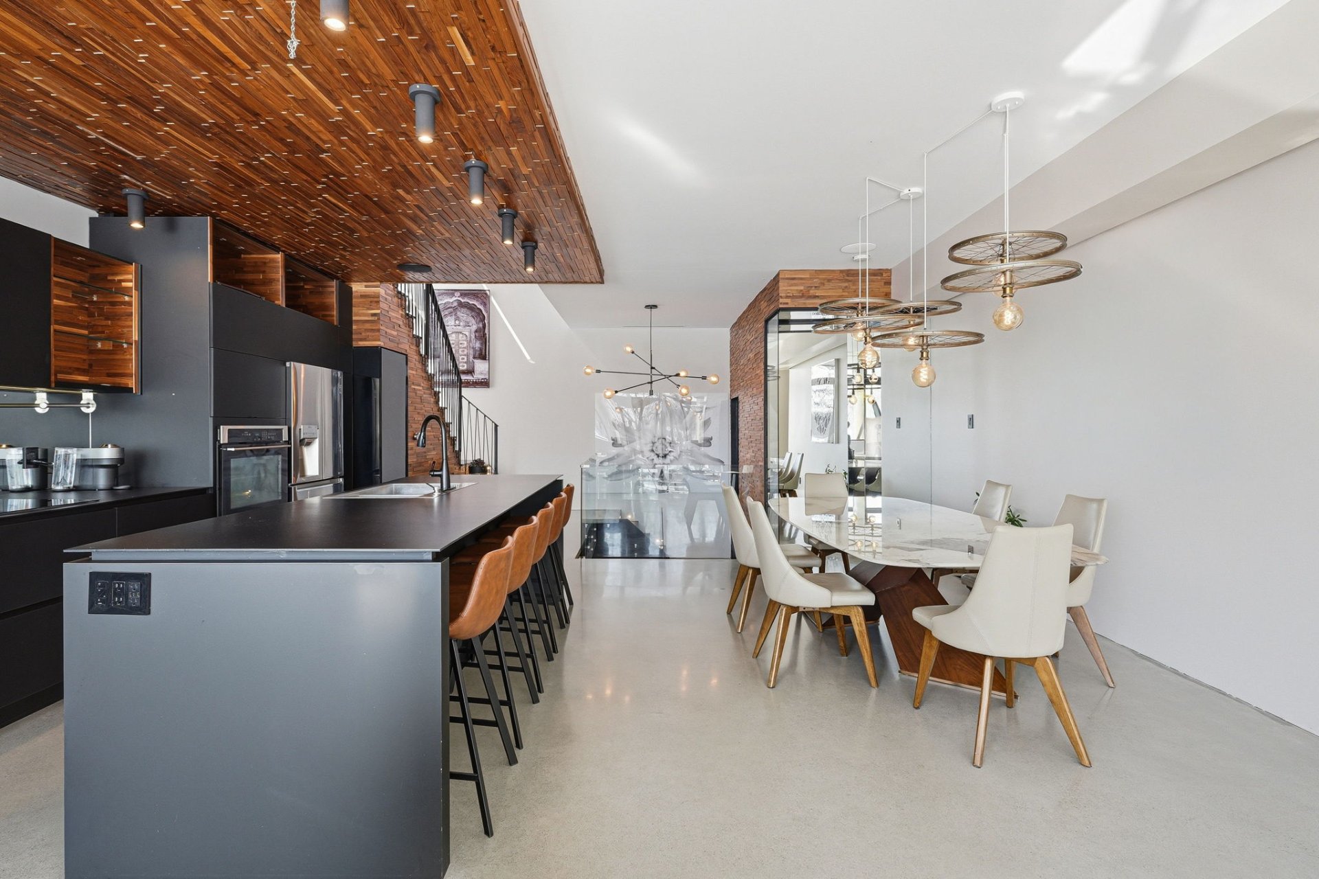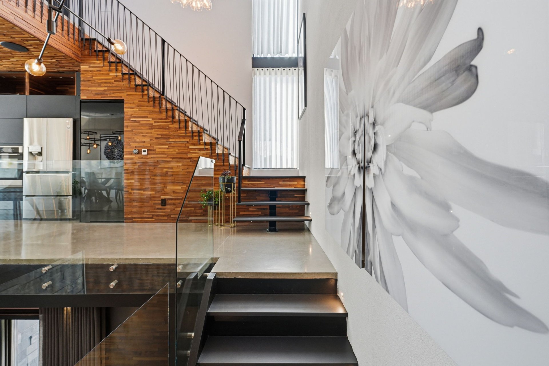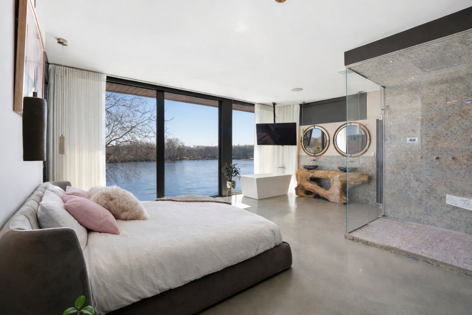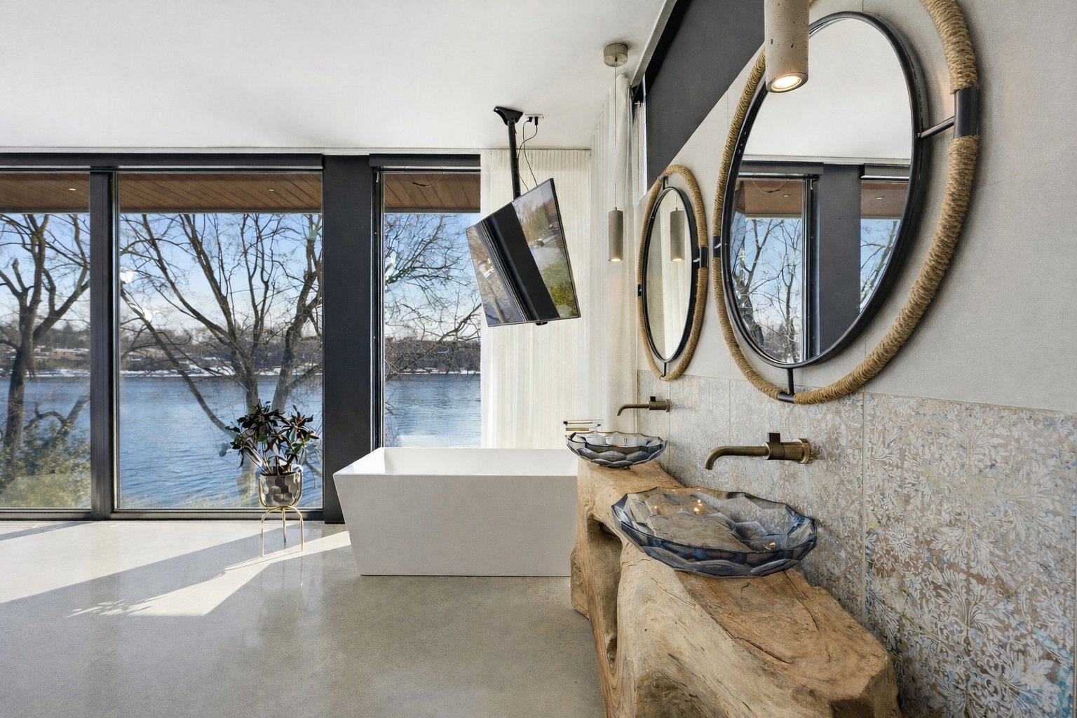 On découvre des espaces lumineux mis en valeur par de grandes fenêtres panoramiques qui laissent entrer une abondante lumière naturelle et offrent de superbes vues sur l'eau. Les impressionnantes hauteurs sous plafond et la conception ouverte contribuent à créer une atmosphère à la fois élégante et accueillante.