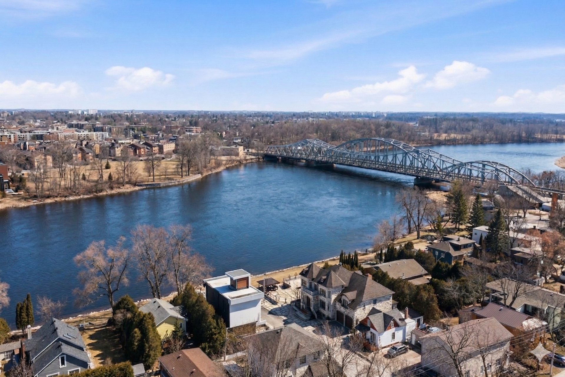 OPPORTUNITÉ RARE -- Bord de l'eau NAVIGABLE. Cette résidence contemporaine offre 3 chambres à coucher ( 2 chambres a l'étage et une au RC) et 3+1 salles de bains. Elle se distingue par son style moderne, ses grandes fenêtres et ses belles vues sur l'eau. Baignée de lumière naturelle, elle propose des espaces lumineux et une atmosphère paisible qui évoque l'ambiance d'un lieu de villégiature. Profitez de la terrasse sur le toit ensoleillée, d'un quai privé et d'un environnement privilégié. Emplacement recherché dans l'ouest de Laval, entre les autoroutes A-13 et A-15. Une occasion unique au bord de l'eau.