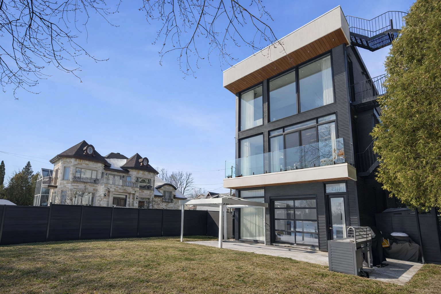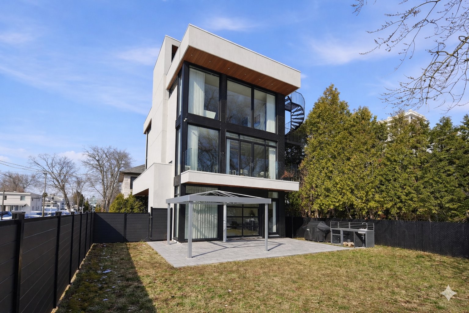 La résidence s'étend sur trois niveaux et propose des pièces généreuses où confort et fonctionnalité se rencontrent. Les planchers chauffants radiants sur les trois étages assurent un confort optimal tout au long de l'année.