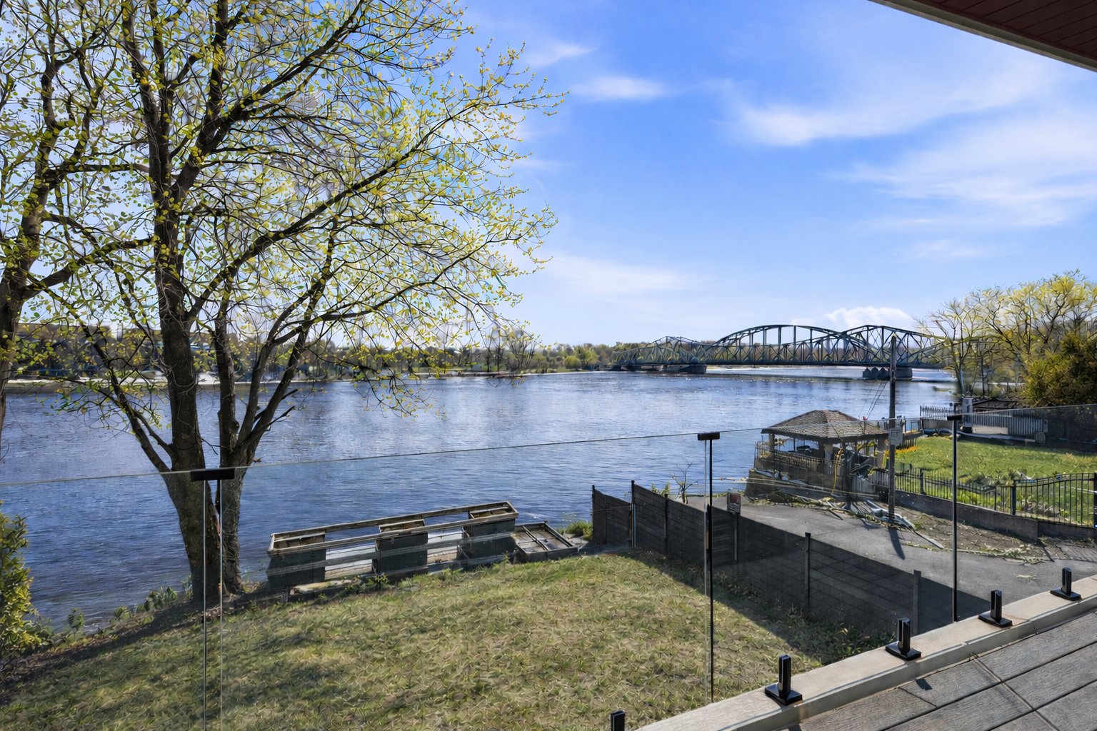 Le quai privé et l'accès direct à l'eau navigable ajoutent une dimension unique à la propriété, permettant de profiter pleinement des activités nautiques et du mode de vie au bord de l'eau.