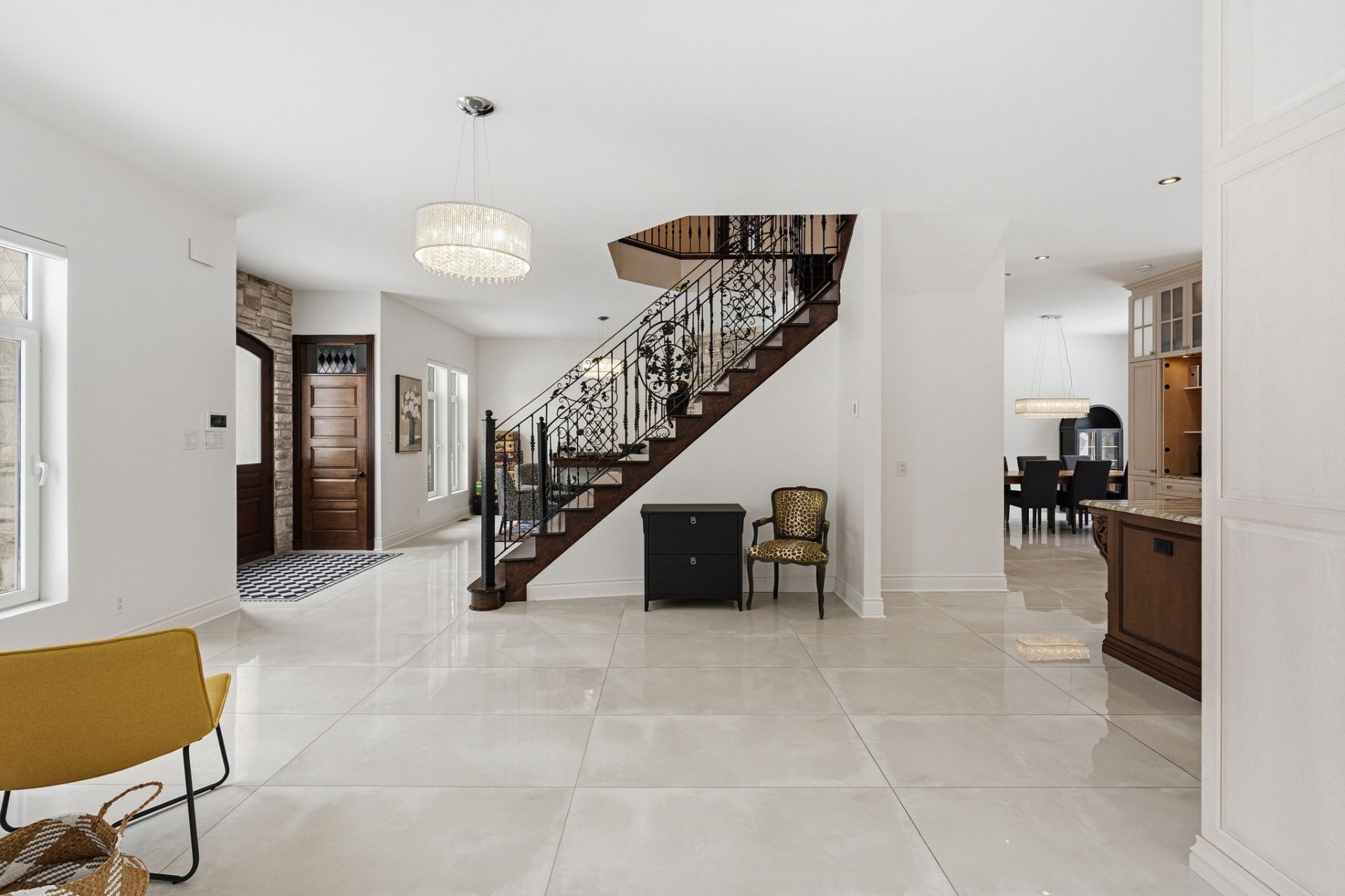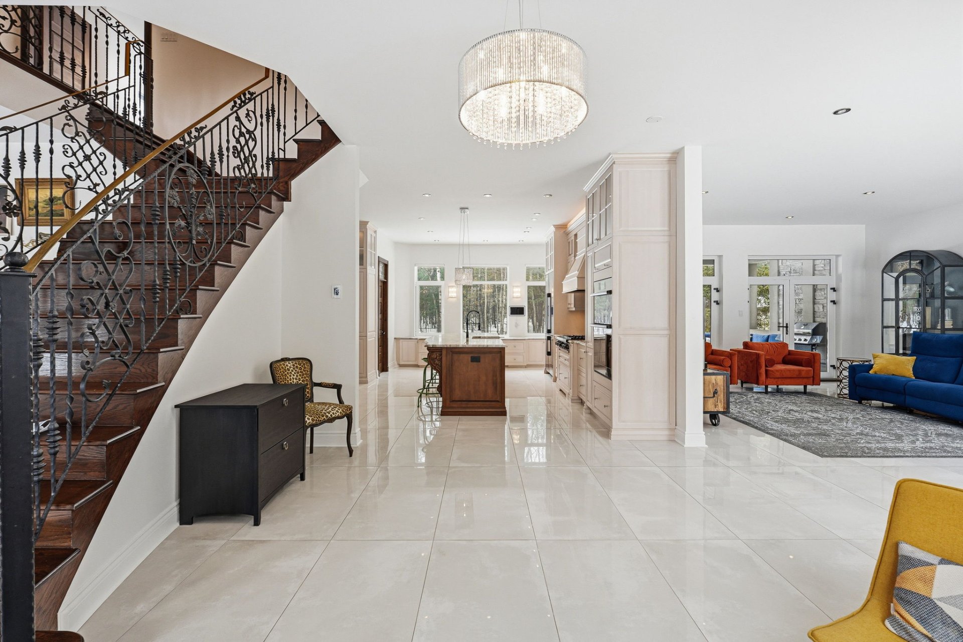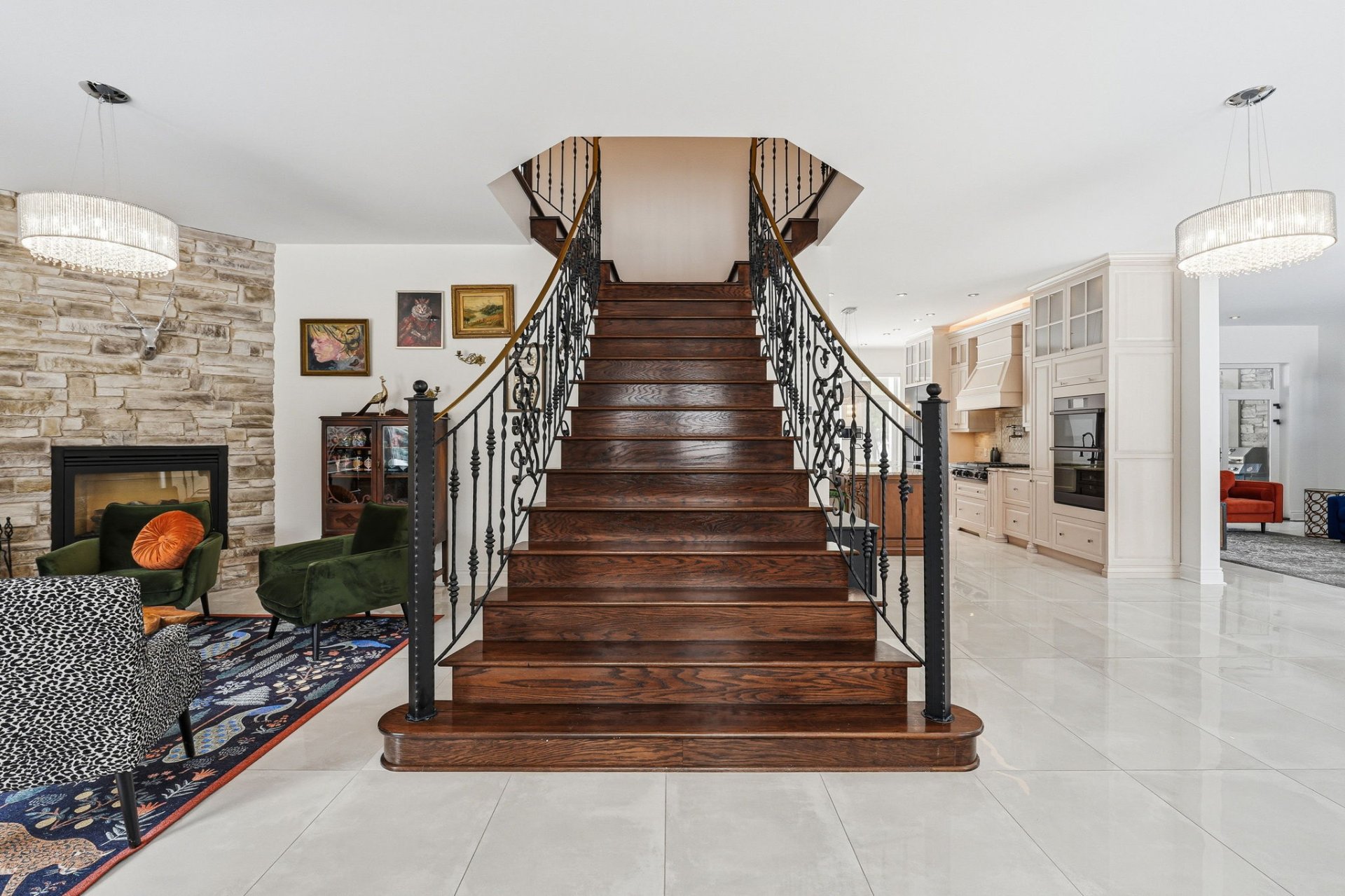 Dès l'entrée, un spectaculaire escalier architectural sur trois niveaux crée un effet saisissant et s'ouvre sur un vaste espace de vie à aire ouverte, baigné de lumière.