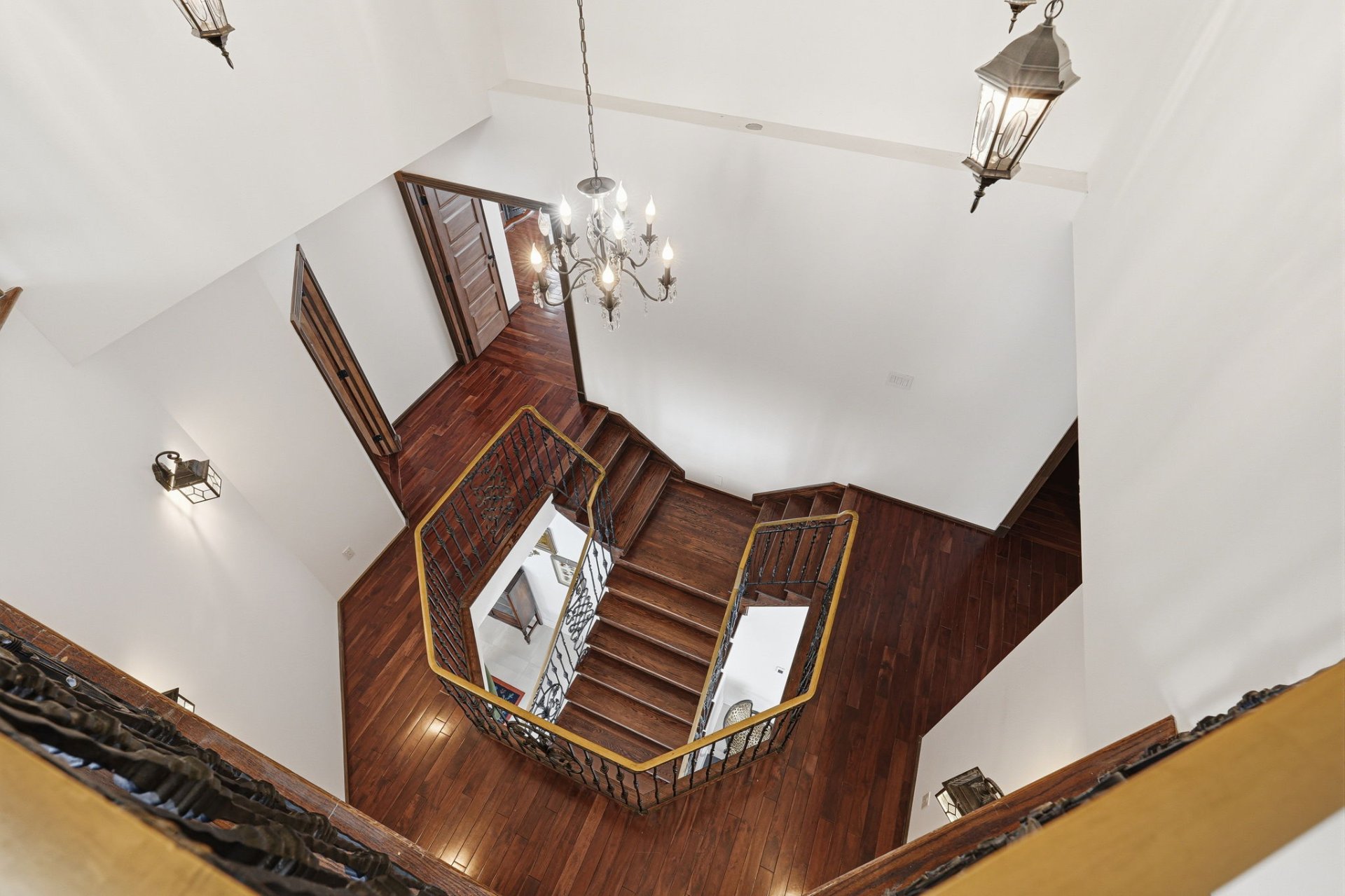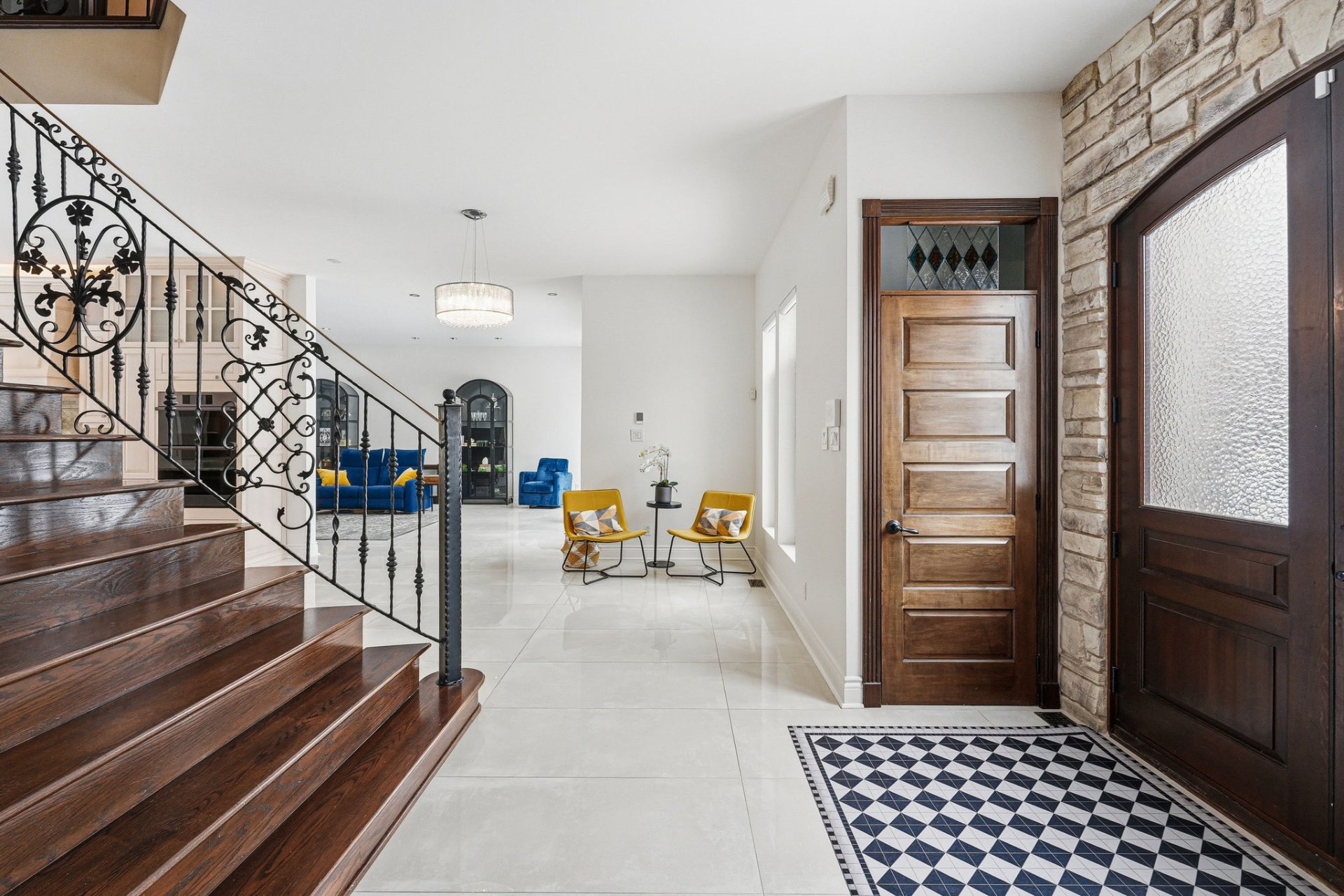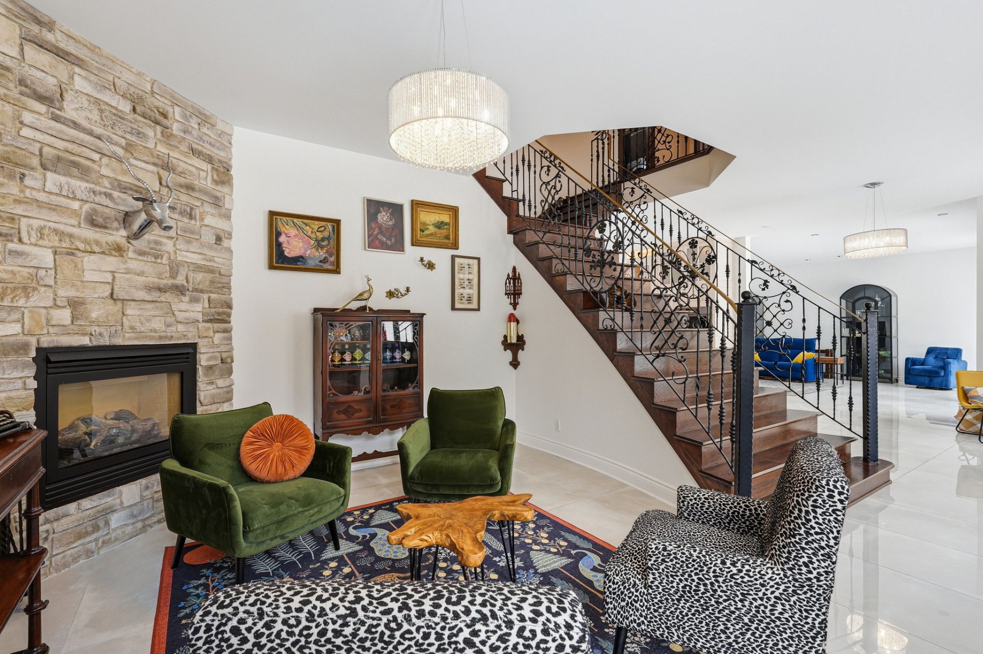 Dès l'entrée, un spectaculaire escalier architectural sur trois niveaux crée un effet saisissant et s'ouvre sur un vaste espace de vie à aire ouverte, baigné de lumière.