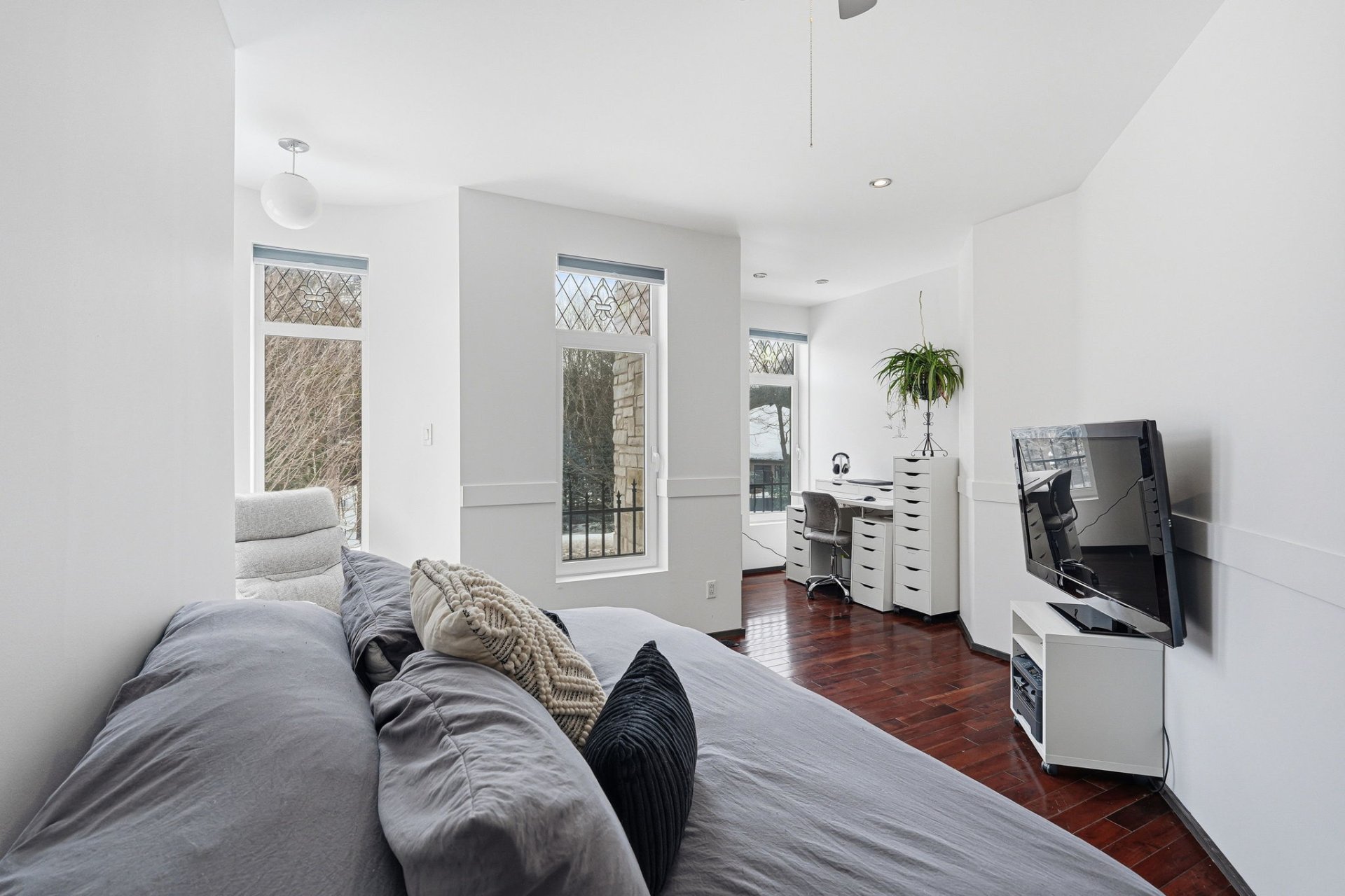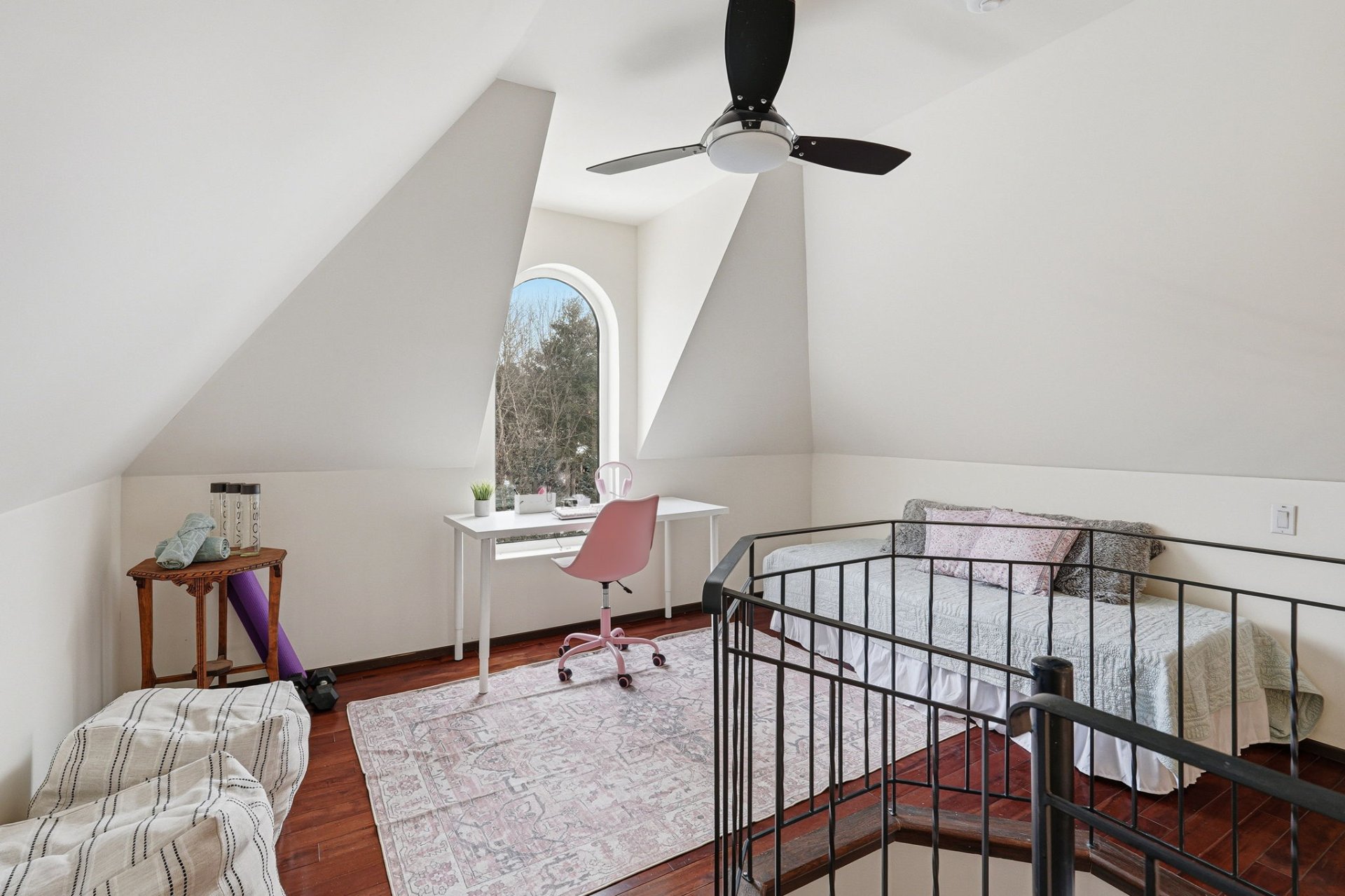 Une troisième salle de bain complète, une salle de lavage indépendante ainsi qu'une mezzanine accessible par un escalier en colimaçon en fer forgé ajoutent fonctionnalité et caractère architectural.