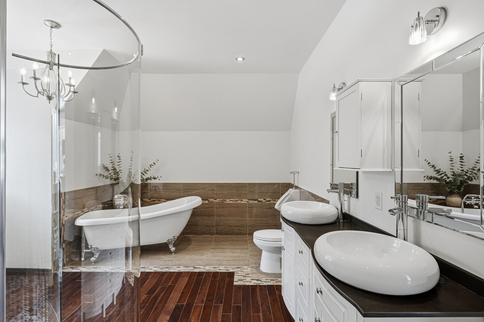 La suite principale propose un espace intime et élégant comprenant un walk-in, un balcon privé et une salle de bain attenante dotée d'une douche indépendante, d'un bain autoportant, d'un bidet et d'une double vanité.