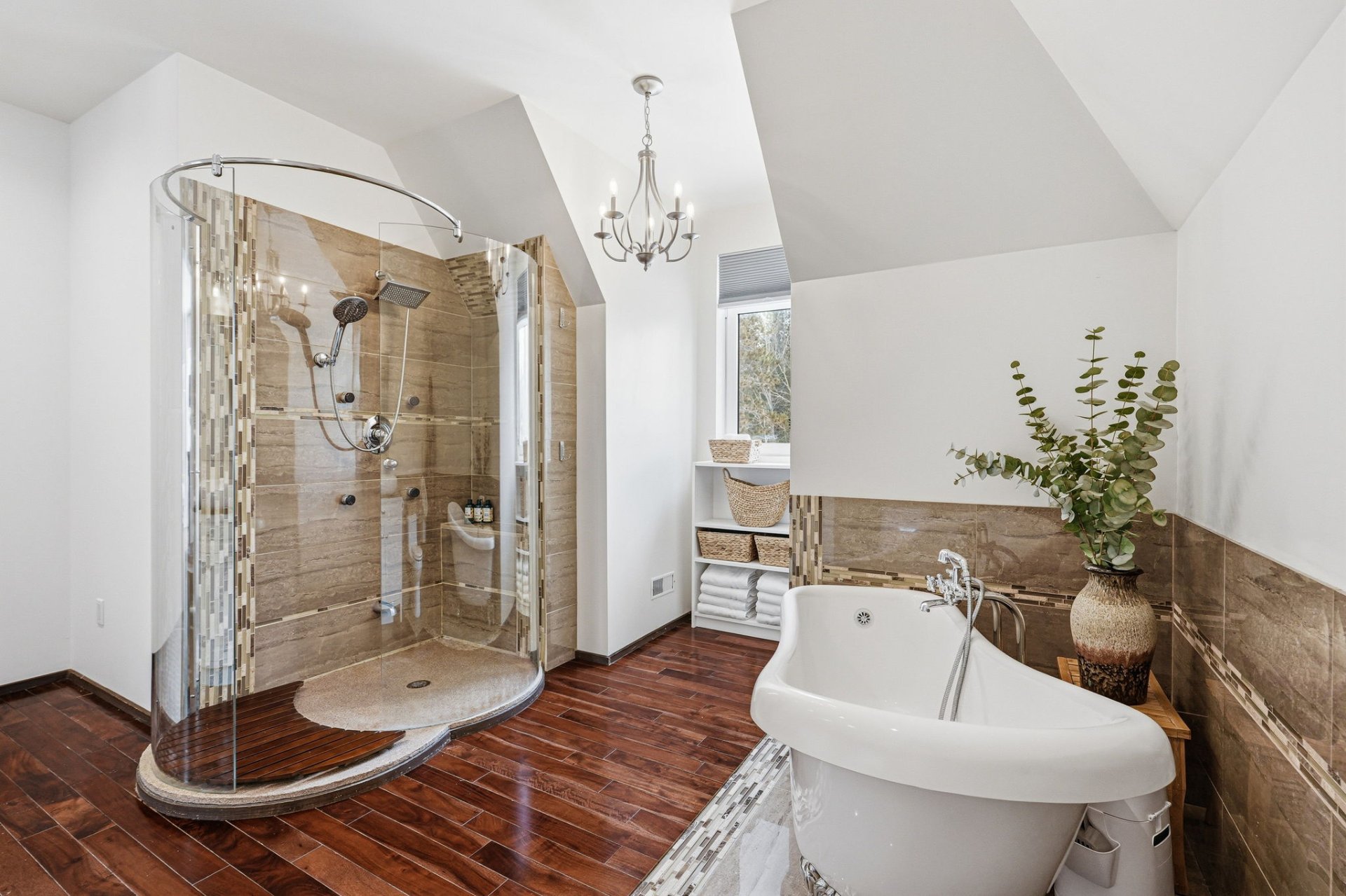 L'ensemble du rez-de-chaussée est revêtu de planchers en porcelaine chauffants grâce à un système radiant électrique, assurant un confort supérieur en toute saison.
