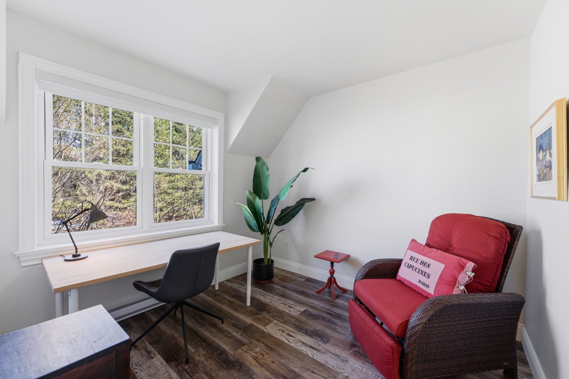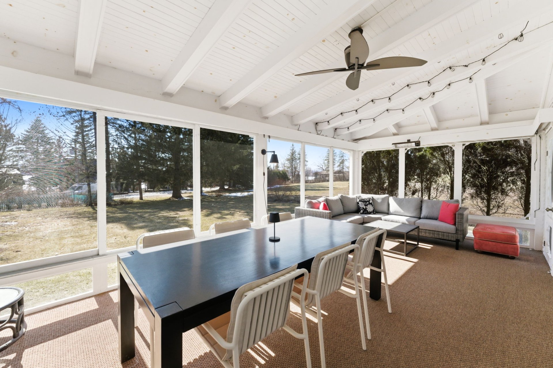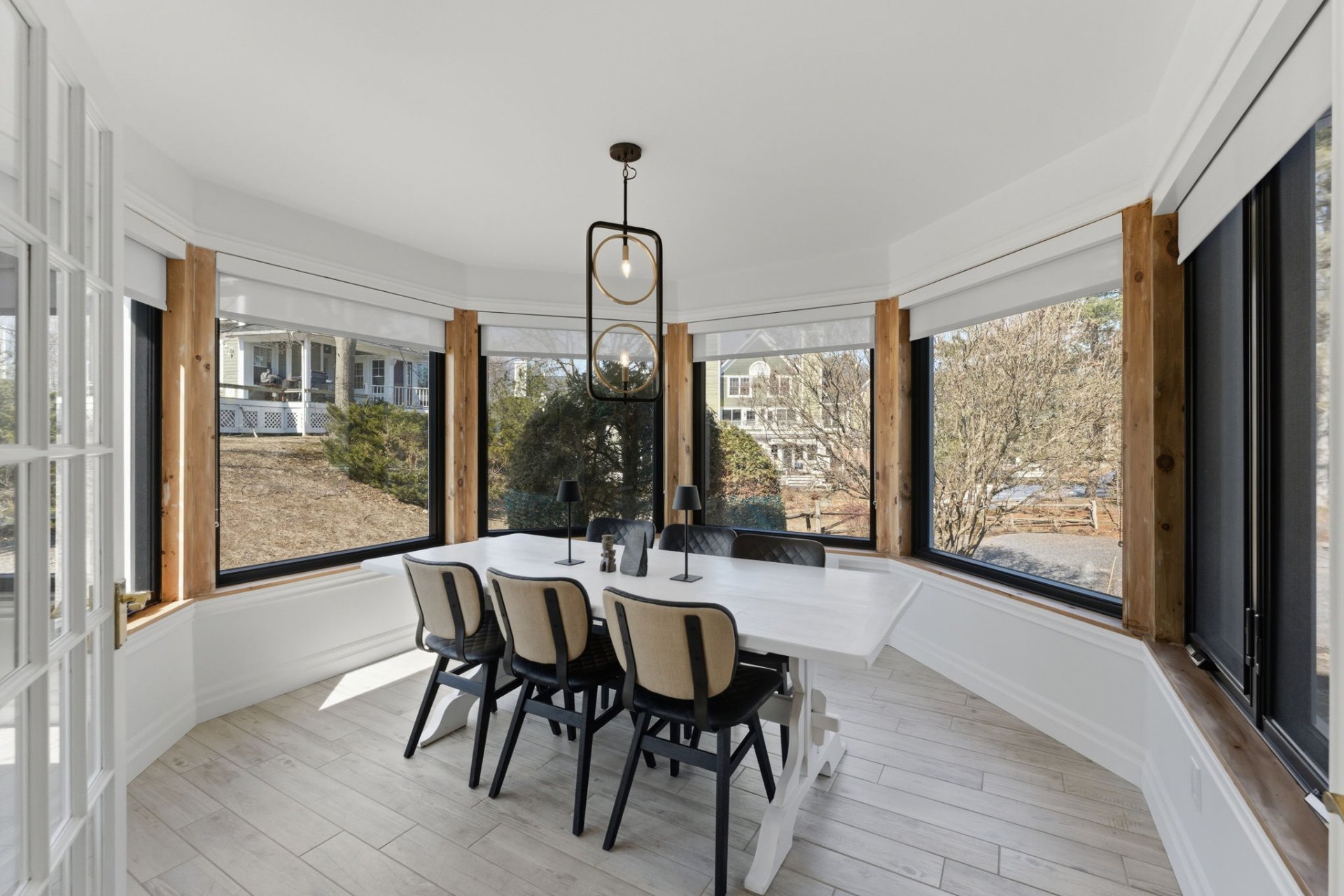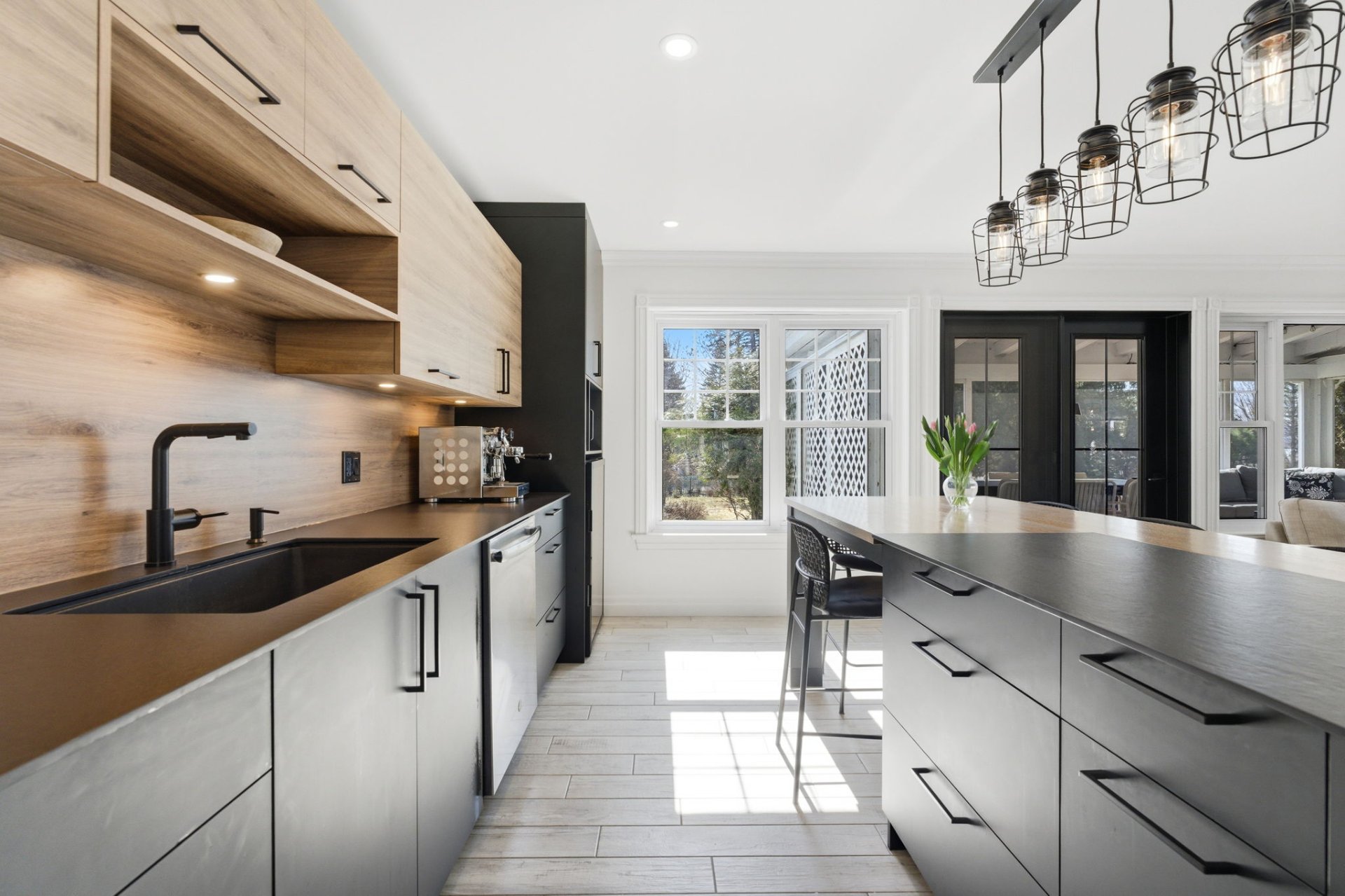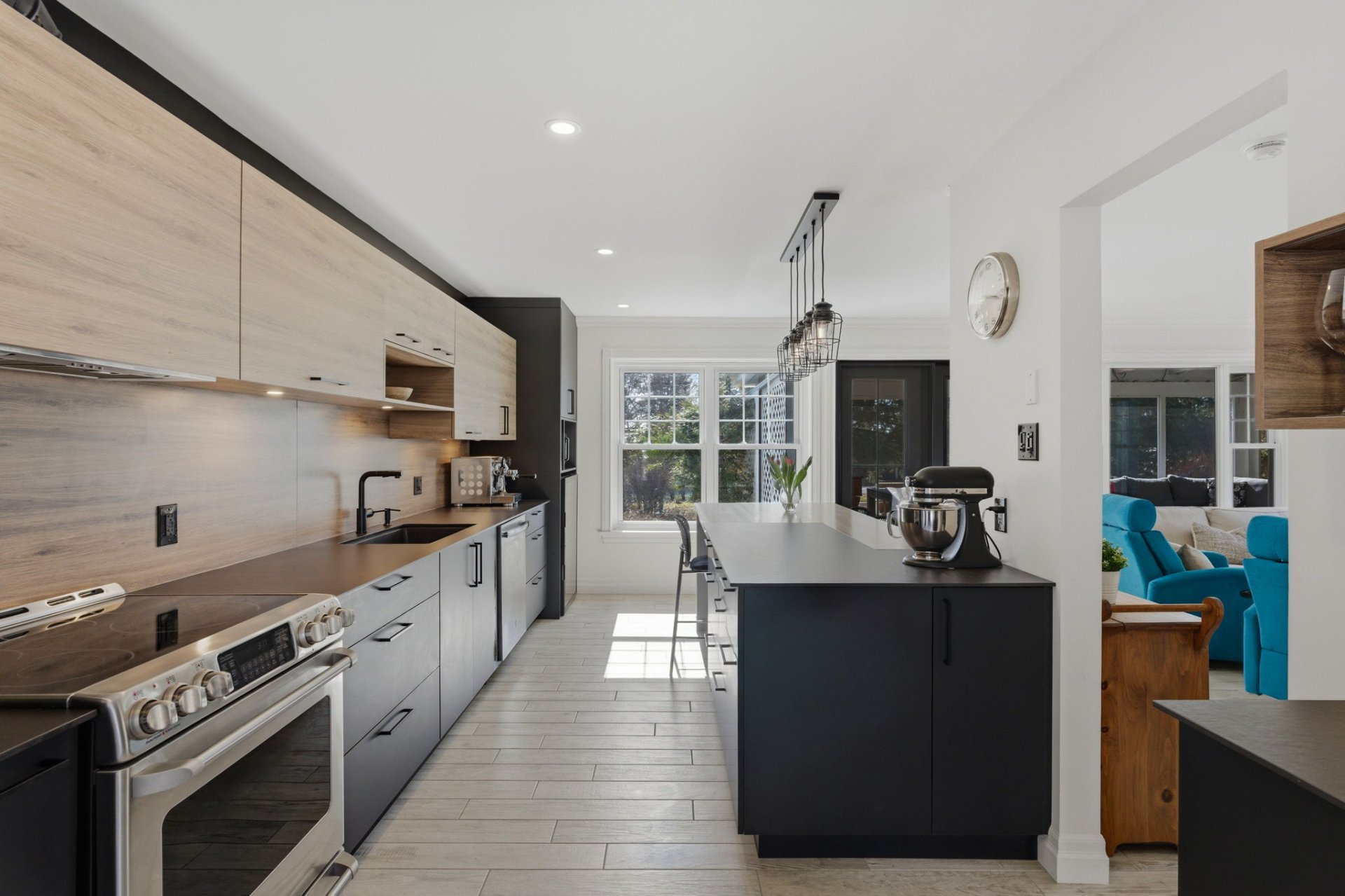 L'intérieur révèle un équilibre réussi entre élégance et confort. Aire de vie ouverte, foyer au gaz et planchers radiants au rez-de-chaussée créent une atmosphère chaleureuse et enveloppante. La vaste cuisine, à la fois raffinée et fonctionnelle, marie quartz et bois dans un esprit résolument actuel. La véranda trois saisons chauffée prolonge les espaces de vie avec douceur, comprenant un coin repas et un espace détente. Orientée à l'ouest, elle promet des couchers de soleil spectaculaires.