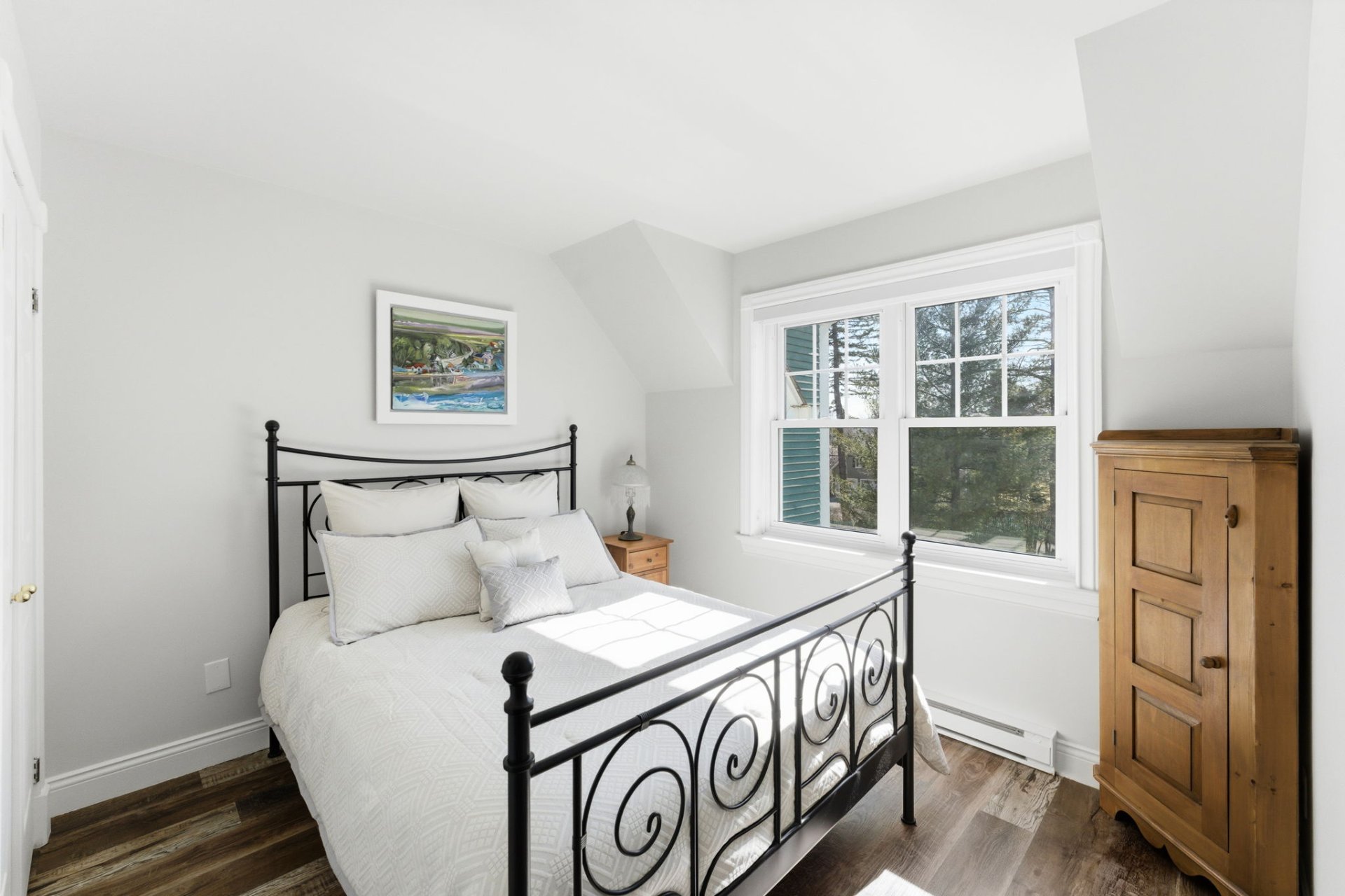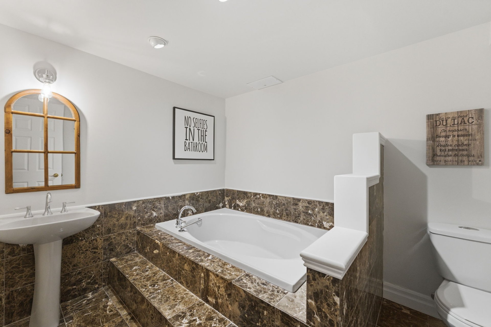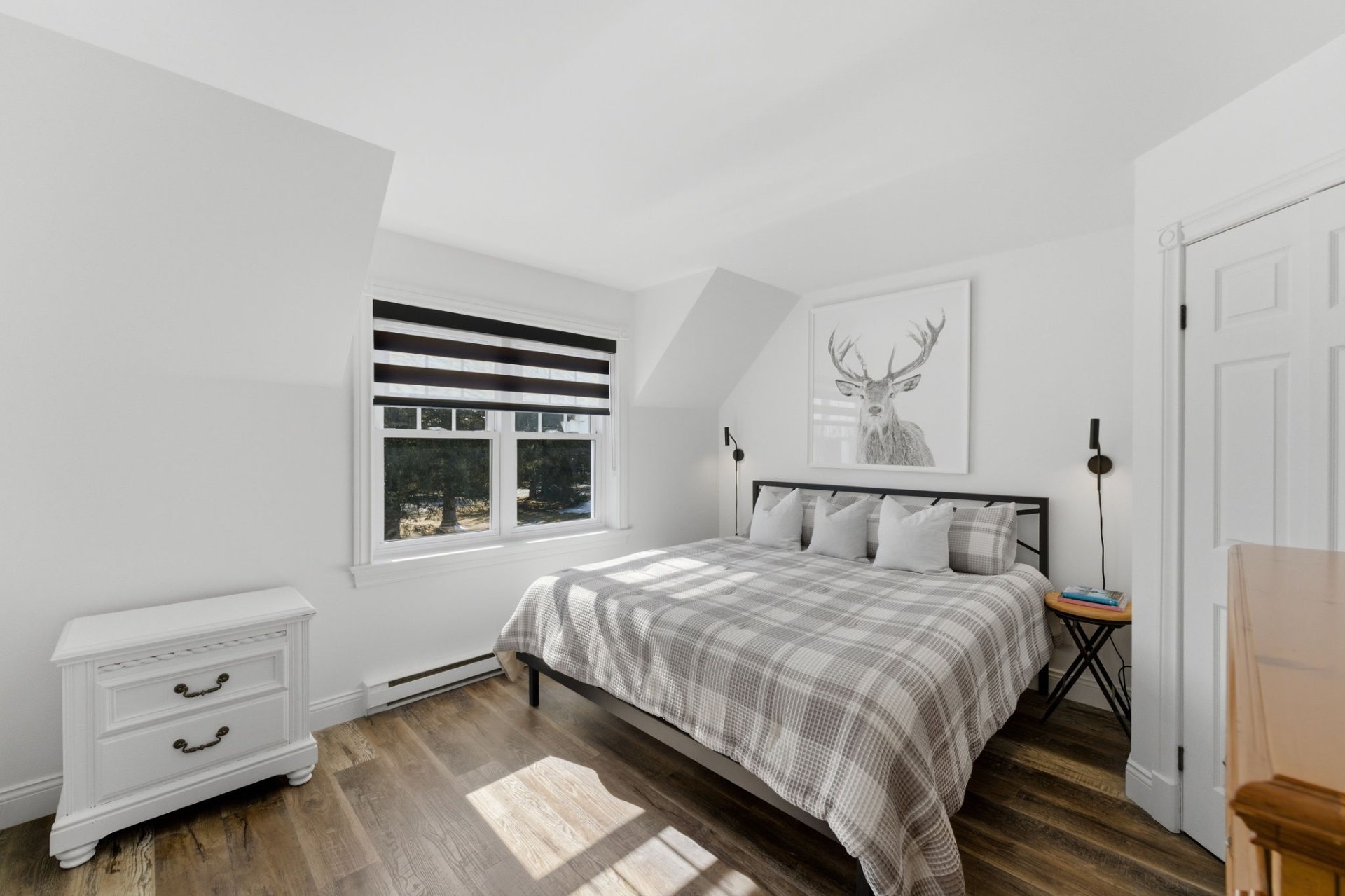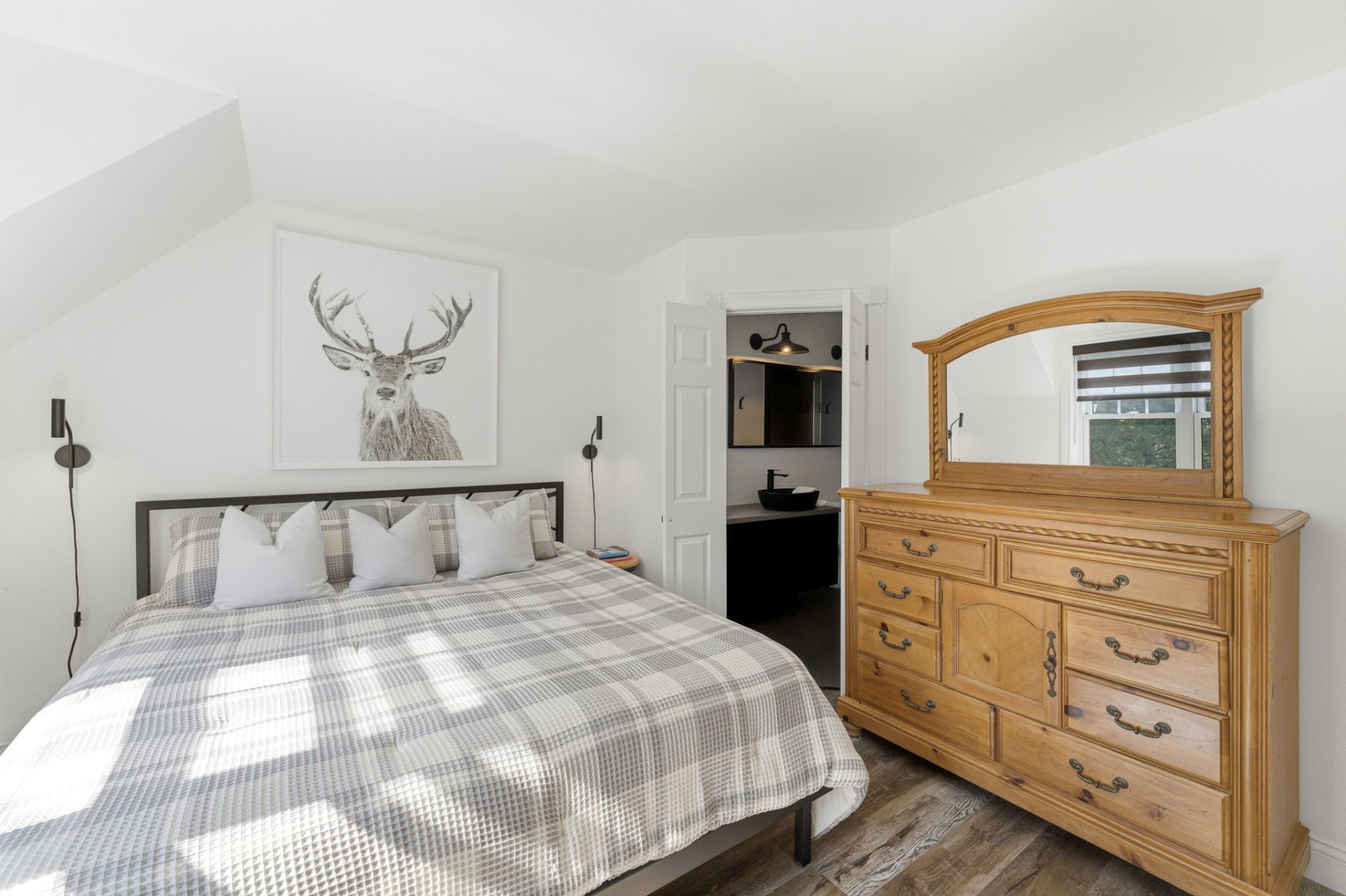 À l'étage, la chambre principale offre une vue sur le lac et une salle de bains attenante, accompagnée de deux autres chambres et d'une seconde salle de bains. Le niveau inférieur ajoute une chambre, une salle familiale et une salle de bains complète, assurant une flexibilité remarquable.