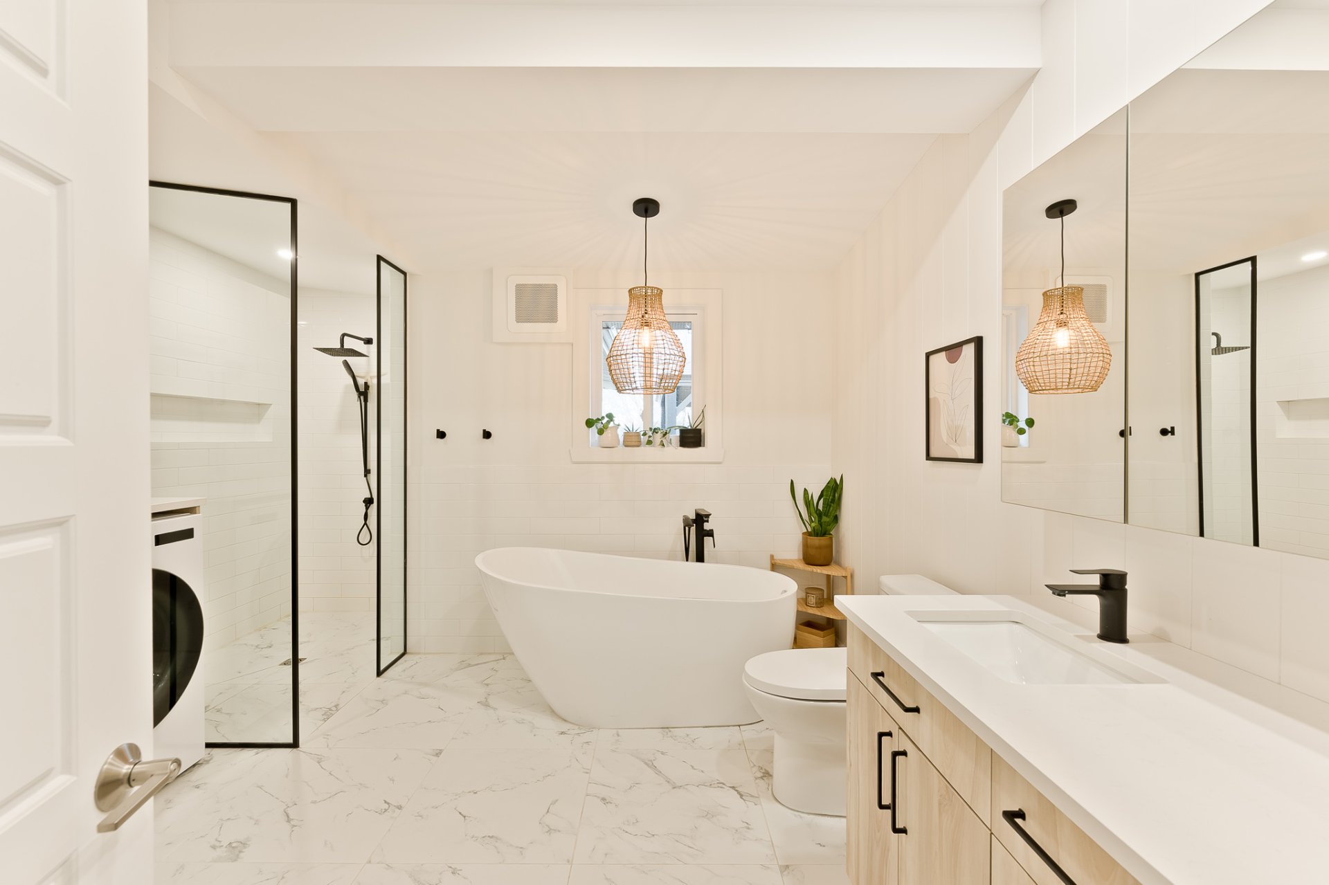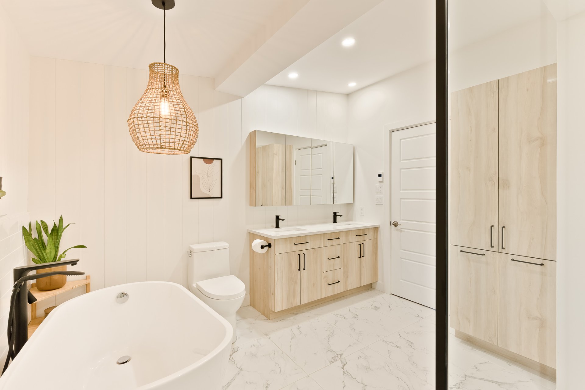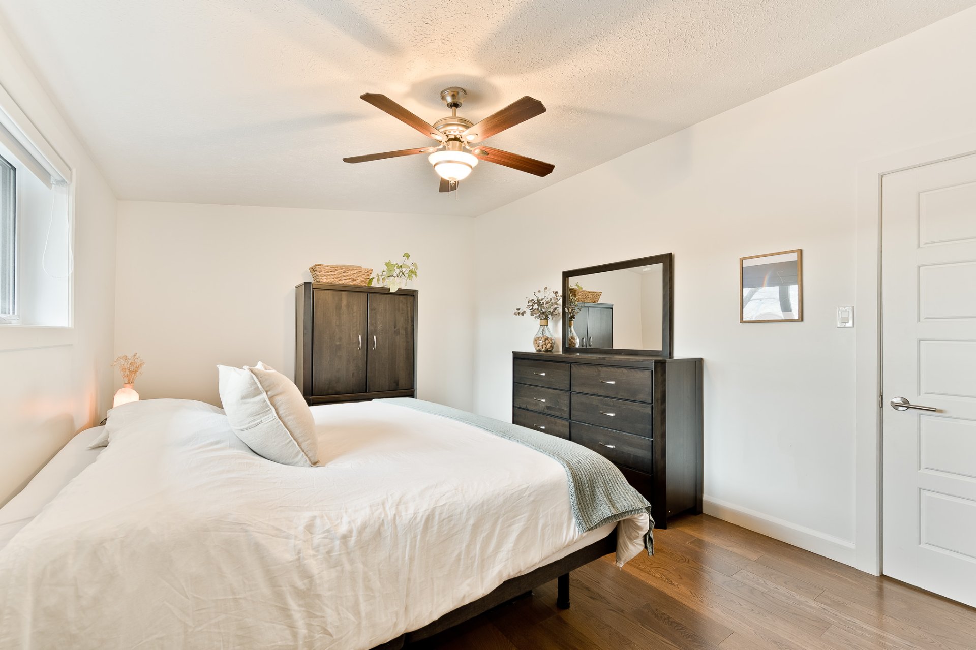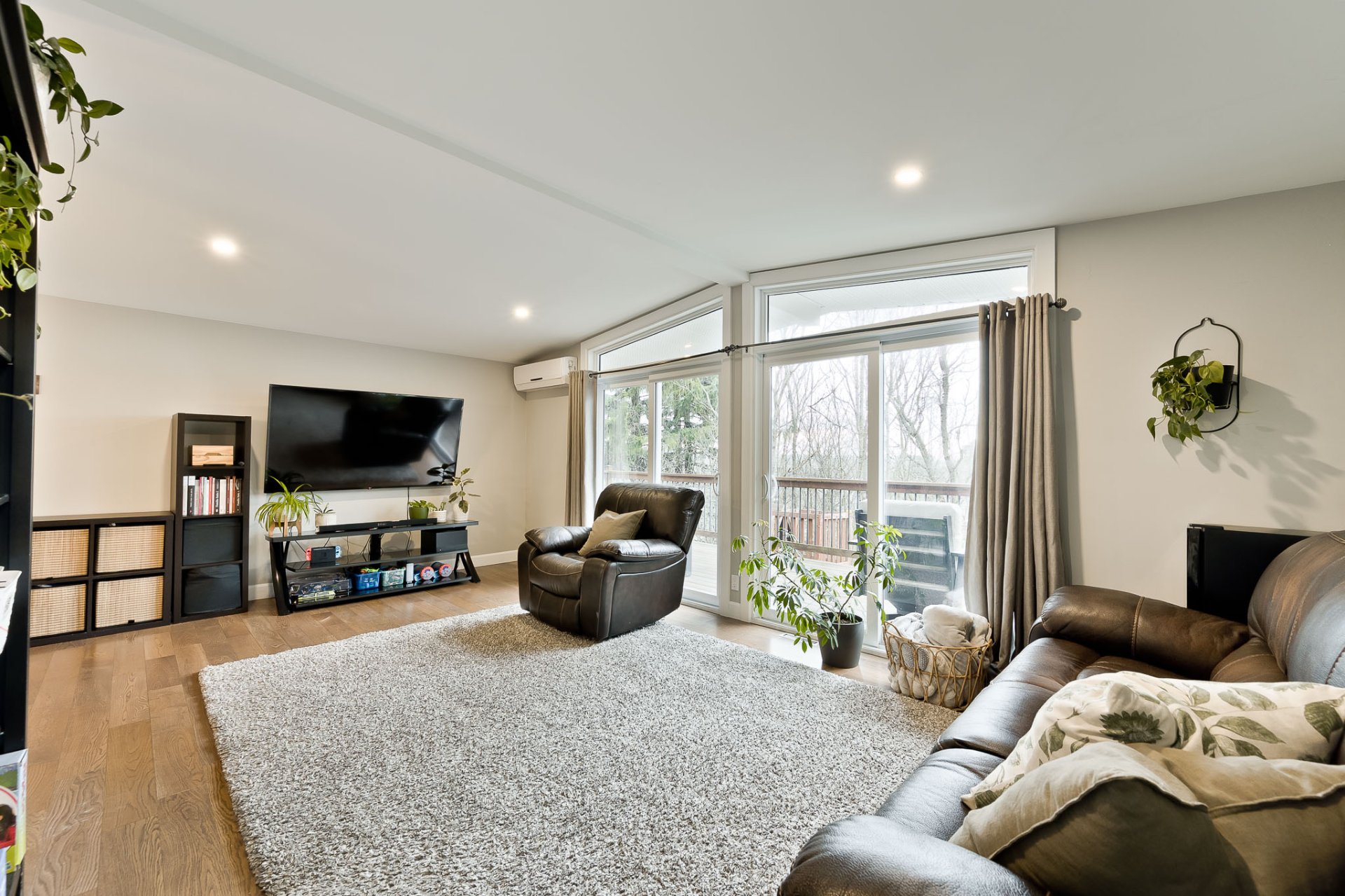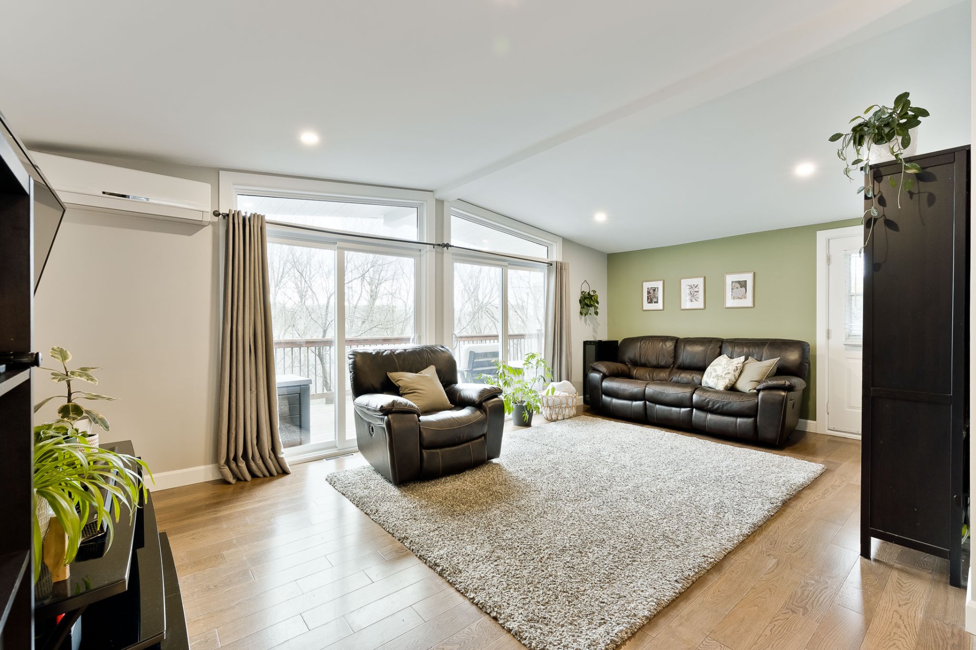 Le salon complète cette zone de vie et bénéficie d'un accès direct vers le grand patio arrière, prolongeant ainsi la maison vers l'extérieur et facilitant les rassemblements estivaux. Sur ce même niveau se trouvent trois chambres confortables offrant de multiples possibilités d'aménagement selon les besoins de votre famille. Une magnifique salle de bain complète avec douche vitrée, baignoire autoportante et entrée laveuse-sécheuse vient bonifier la fonctionnalité de l'étage et assure un confort appréciable au quotidien.