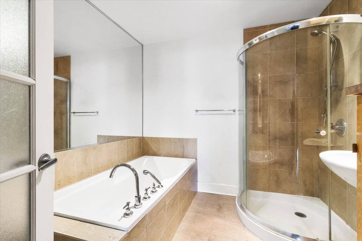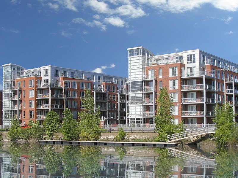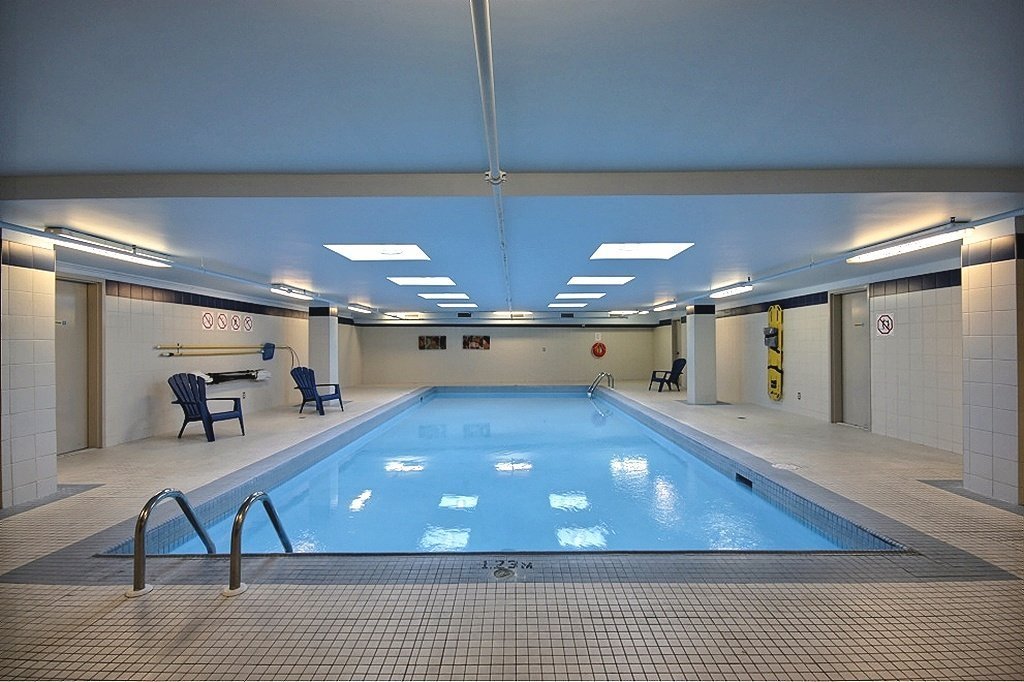 Immeuble avec piscine intérieure chauffée, sauna, salle d'exercice, cour intérieure et accès au quai.