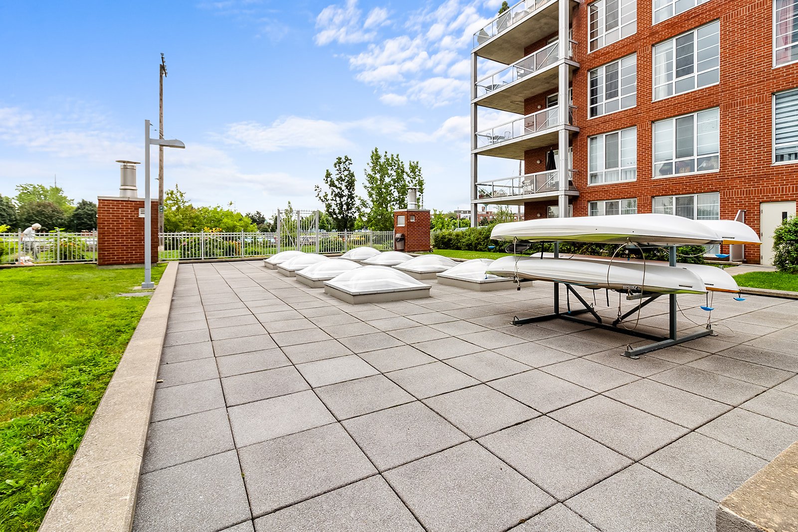 Grande terrasse privée de 735 pi2 avec vue sur le canal et le jardin