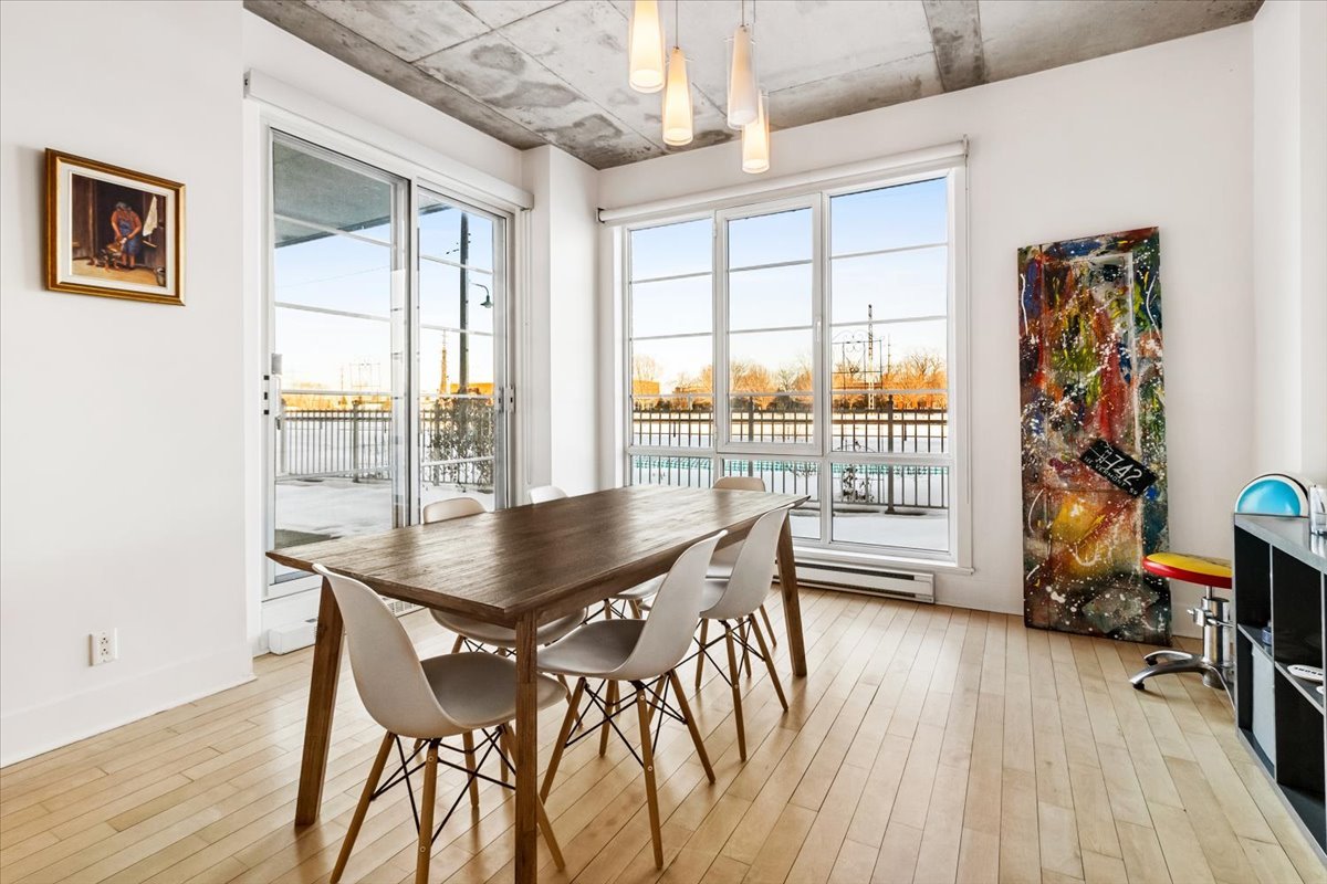Superbe unité de coin en bordure du canal Lachine, offrant une vue sur l'eau et une fenestration abondante.